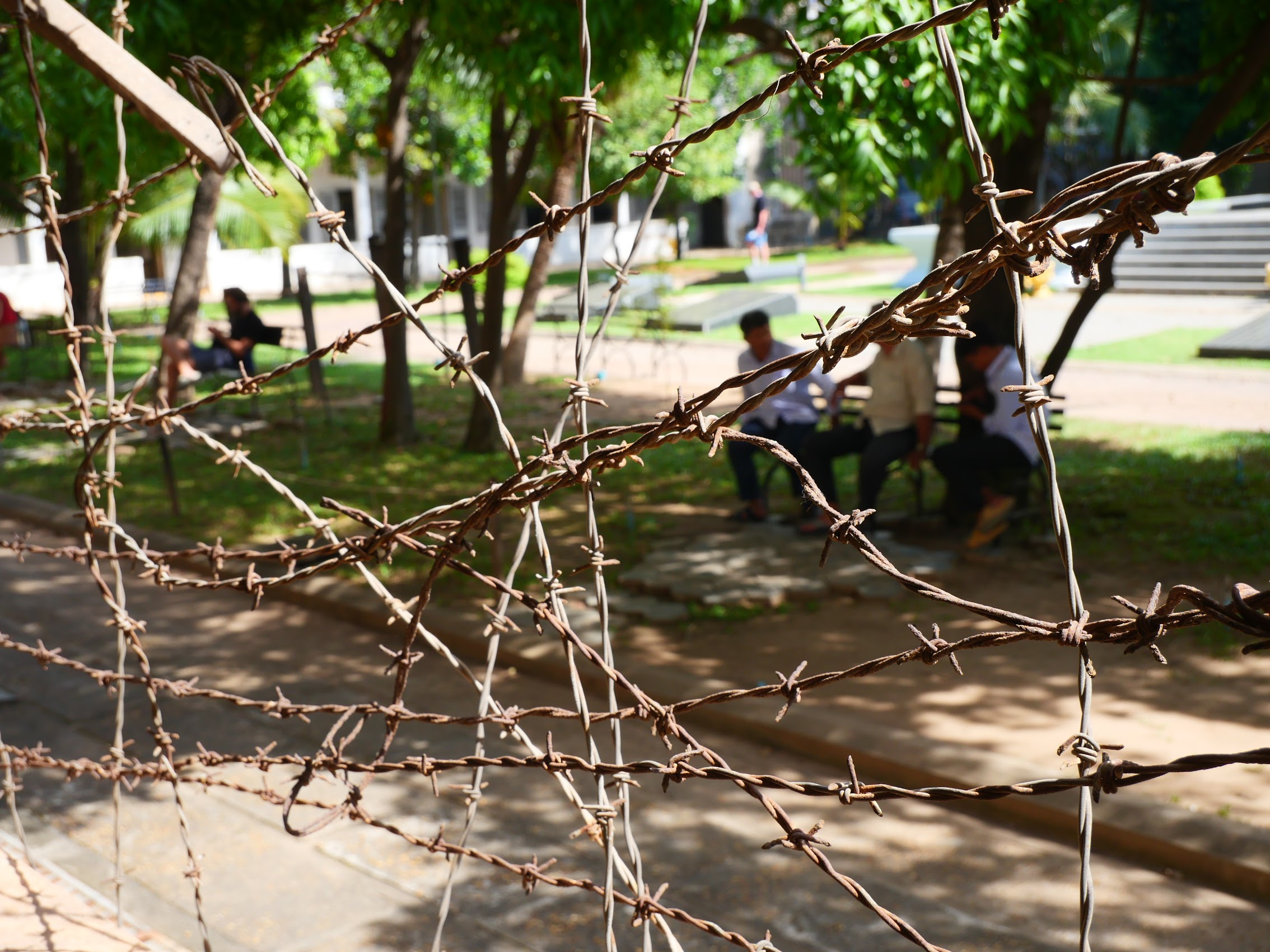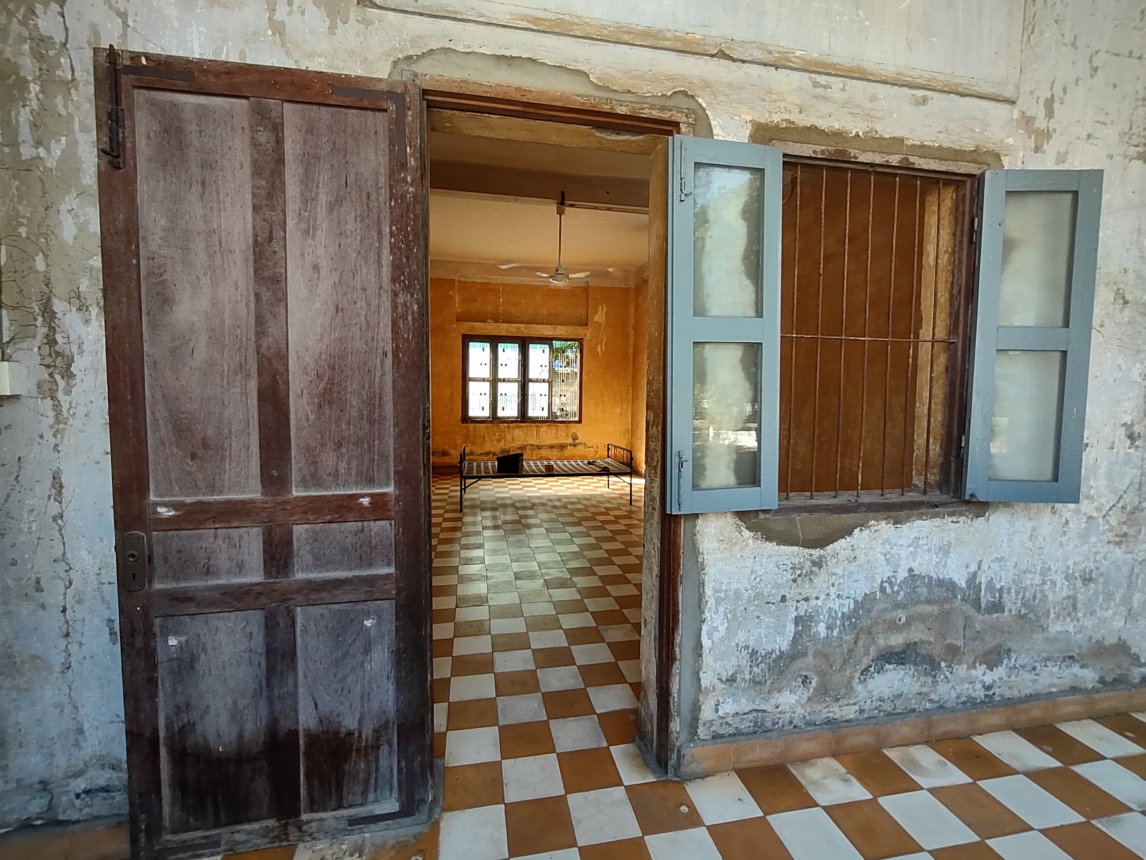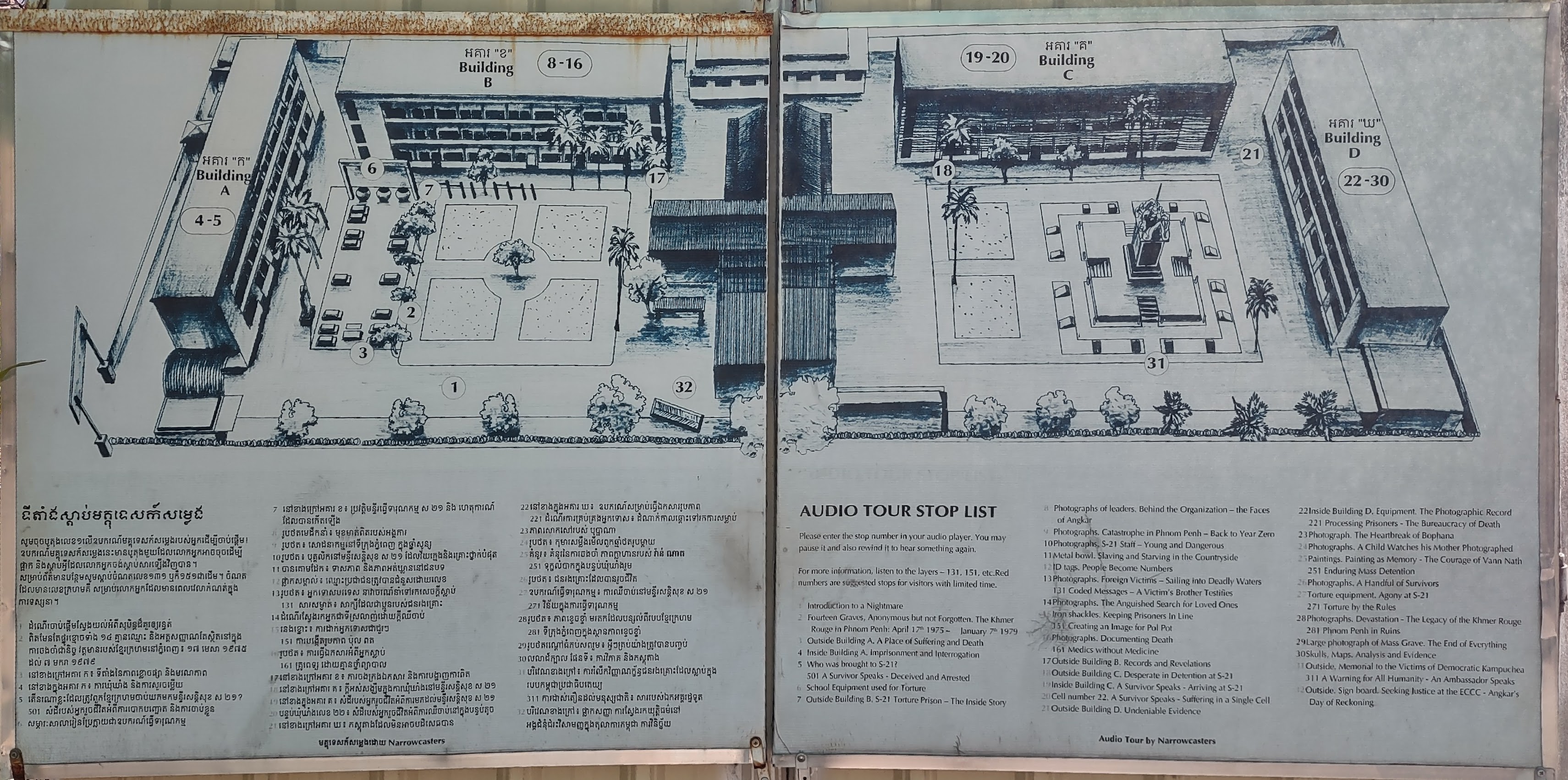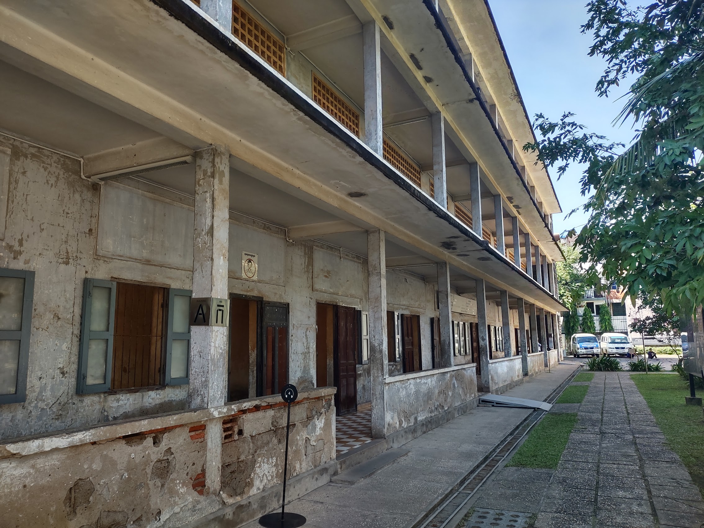 And so it was that at 9:30 the next morning we found ourselves in front of what was once the Tual Svay Prey High School, the Tuol Sleng Genocide Museum located about 3 kilometers south of our apartment. The school was converted to a prison and interrogation center (one of about 200 such facilities established by the Khmer Rouge) but this particular facility, known as S-21, had the particular responsibility for interrogating and punishing individuals deemed “guilty” of crimes against the state. Over 12,000 people were tortured and executed at S-21 and only 12 prisoners are believed to have survived.