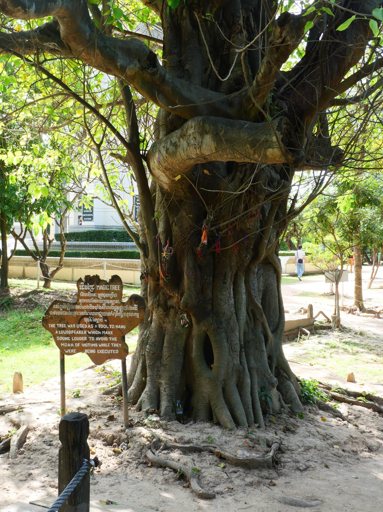 From the Genocide Museum we travelled about 10 kilometers south to the Choeung Ek Genocidal Center on the outskirts of Phnom Penh. Choeung Ek is one of about 300 sites known as killing fields, where the Khmer Rouge regime executed over one million people, including over 18,000 from the Tuol Sleng detention center who were killed at Choeung Ek. After the fall of the Khmer regime, almost 9,000 bodies were discovered at Choeung Ek but it was eventually decided to stop exhumations there and let the remaining dead, most of whom had no chance of identification, rest in peace.