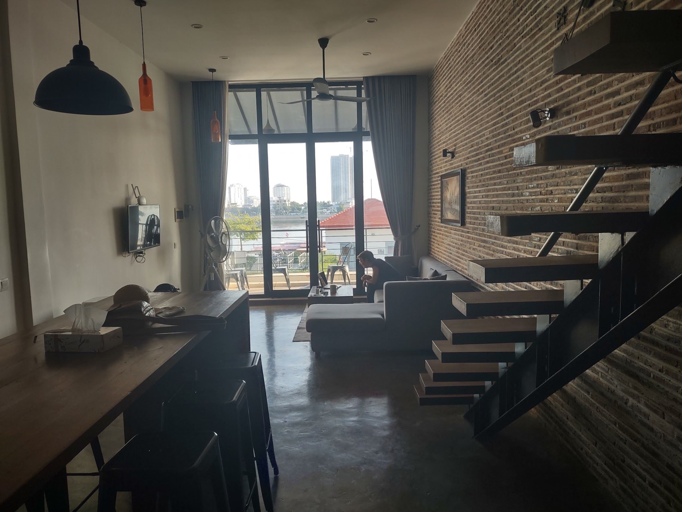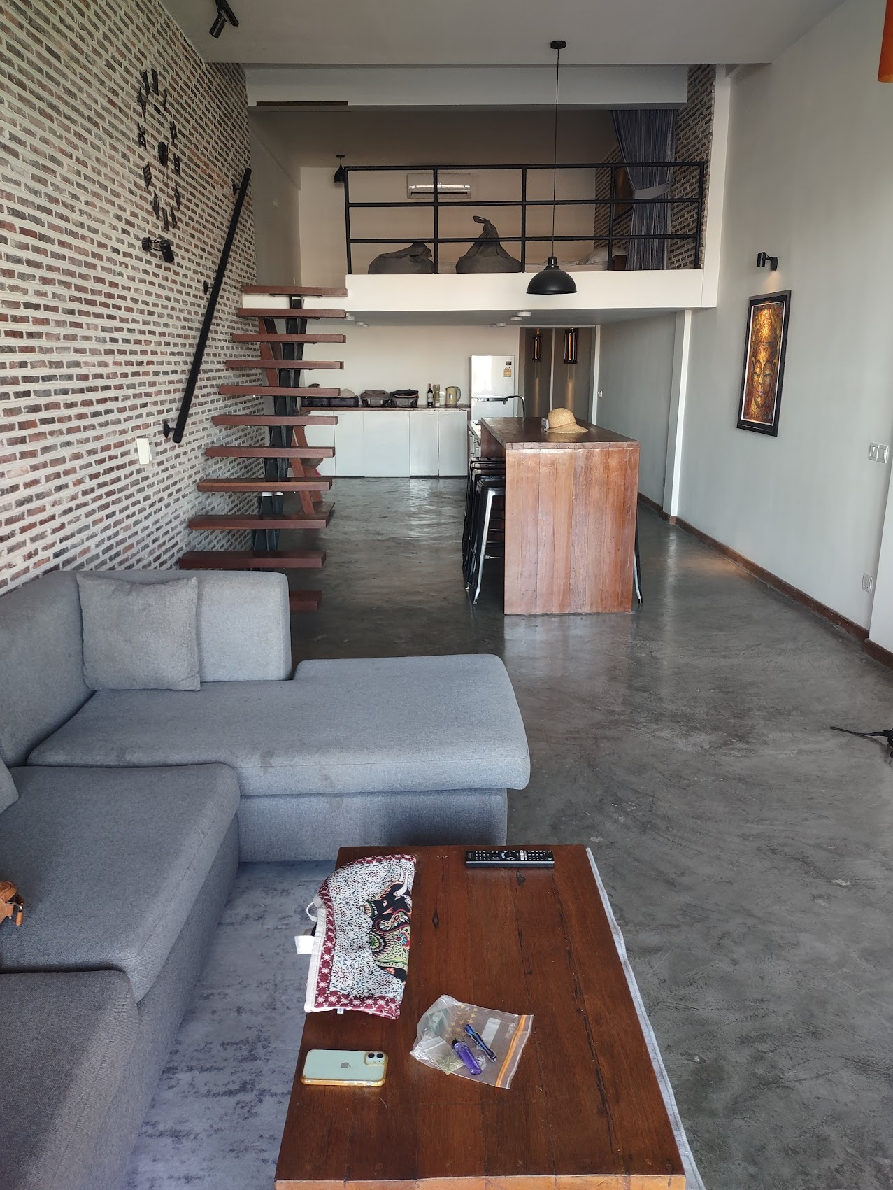 The apartment itself was actually pretty nice, with a high-ceiling living area with wall to wall and floor to ceiling glass facing the river, a nice sized balcony, and a loft bedroom with a large kitchen and dining area tucked beneath it. But although the kitchen included a cooktop, there were no pots and pans or cooking utensils to be found, nor, as we discovered, were there any cleaning products, personal hygiene products (other than a single bar of soap and a roll of toilet paper), not even the two complimentary bottles of water which are pretty standard items in this part of the world. When we contacted our host about this, he referred us back to the Airbnb listing noting that the apartment came with “no amenities”.