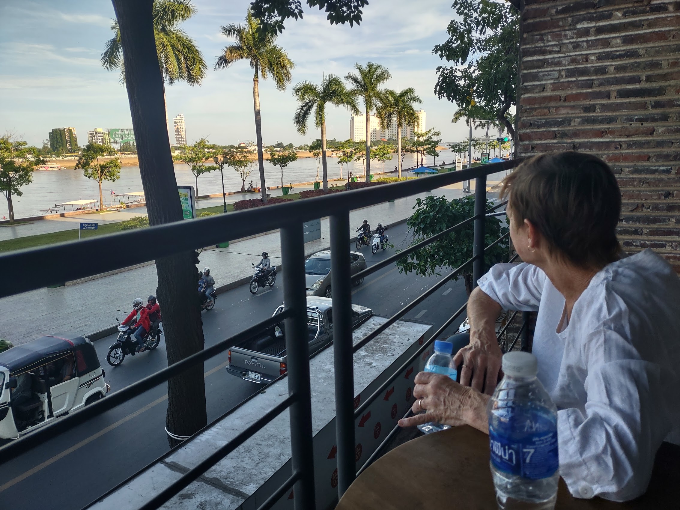 La Vue Riverside was, for a number of reasons, one of the more memorable places we have stayed in our travels. It was a second floor apartment located above a bank and, true to its name, it afforded a beautiful view across the Tonle Sap River to Silk Island. But, in order to reach the apartment, you had to pass through a dark passageway on the backside of the building which was reminiscent of some of the worst places we saw in Kolkatta. (On a trip out our first night, Colleen confirmed there were more than people living in the passageway which led to a lot of stomping, clapping, and singing or loud talking whenever we passed through it.)