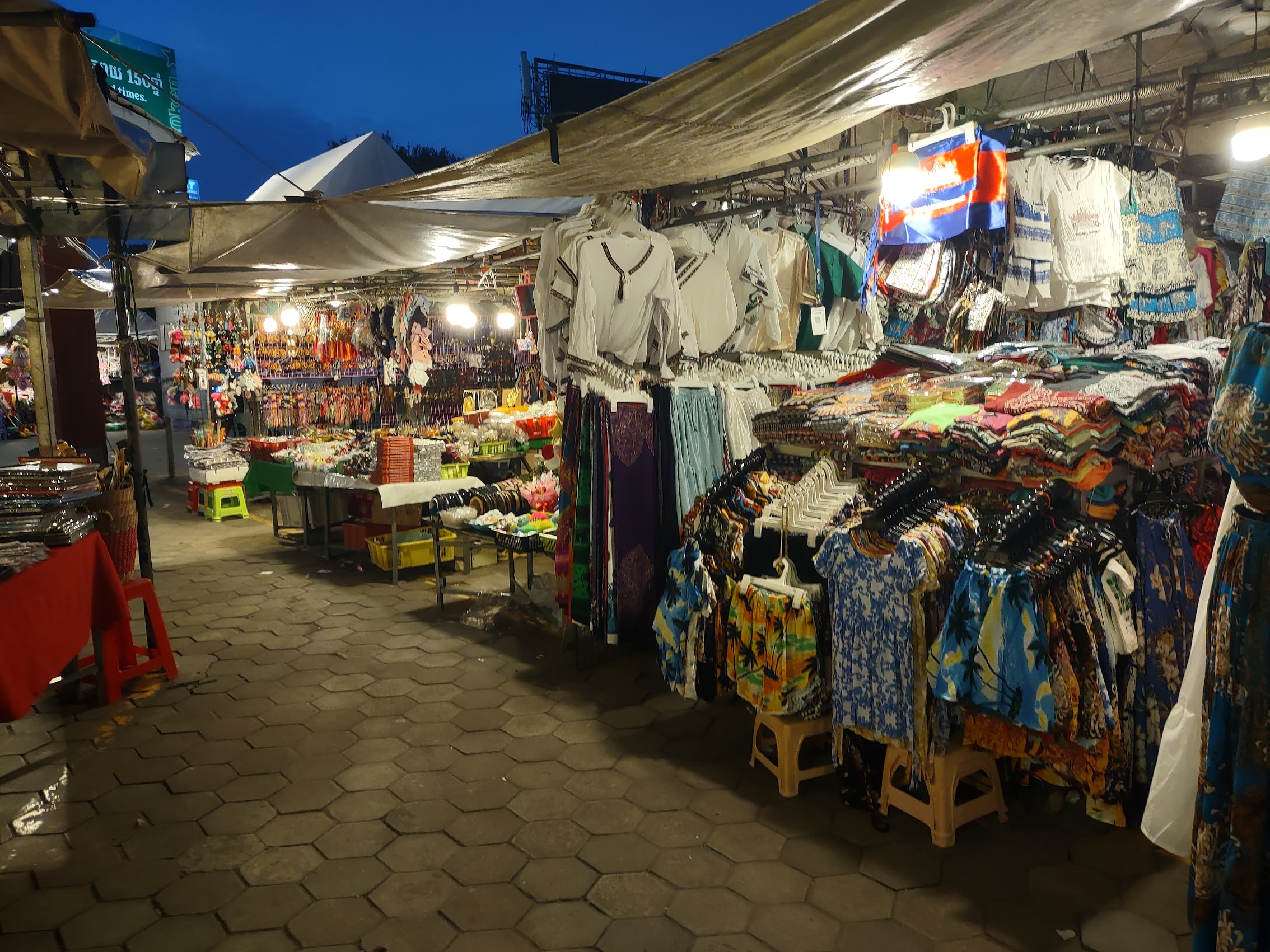 From there we found a convenience store (The Big C Mini) near our place and purchased a few necessities before proceeding to the Old Market, which was only a block west of our place. The Old Market was interesting, but more of a local place with mostly inexpensive clothing and household goods. From there we made our way to the Phnom Penh Night Market which was quite busy and interesting, but we didn’t see anything that really peaked our appetites (I think that Thailand may have turned us into Night Market Snobs.)