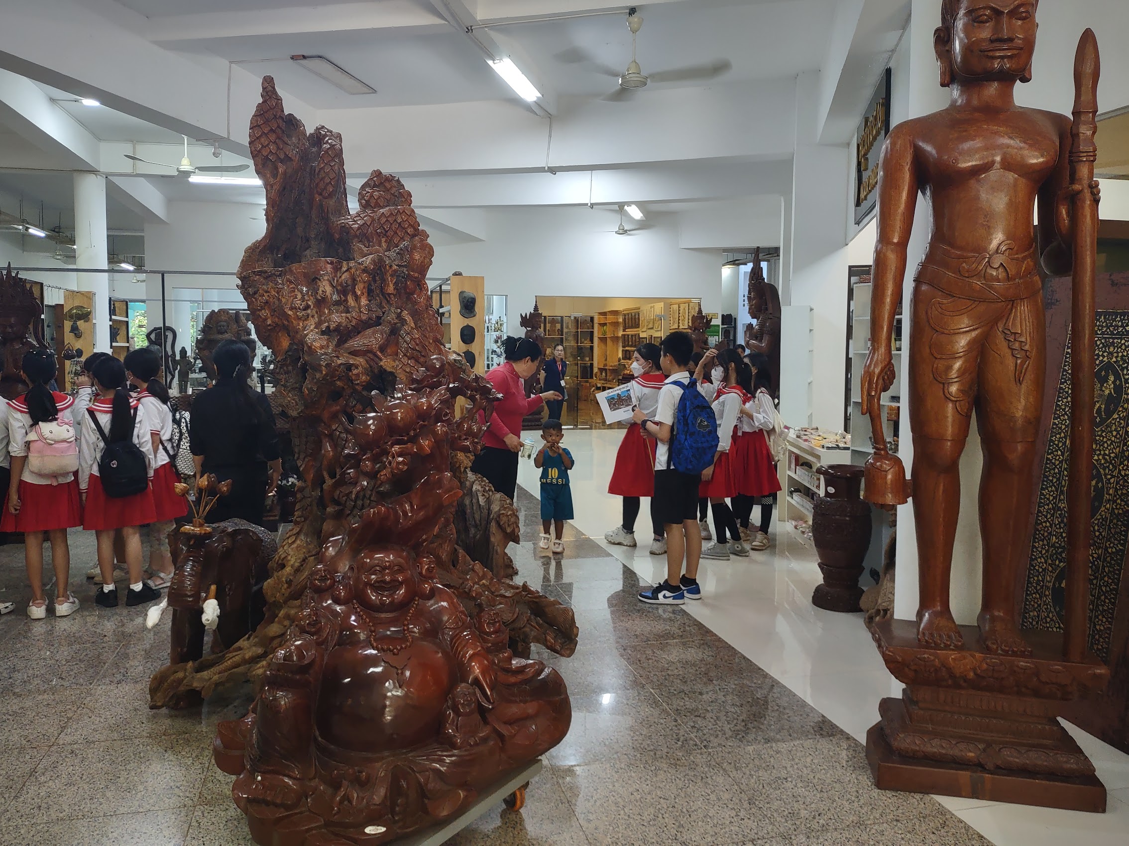 From the Central Market we headed back to Preah Norodom and continued north to our final stop for the day, Wat Phnom Dau Penh, that hill erected by Lady Penh back in 1372 which was where this city started. Today Phnom Dau Penh, which was larger than we had expected, houses a number of structures including a memorial to Lady Penh, a very large stupa, a beautiful Buddhist temple, and a visitors center with a gift shop which featured some of the most amazing art and handicrafts we had seen thus far in Phnom Penh.