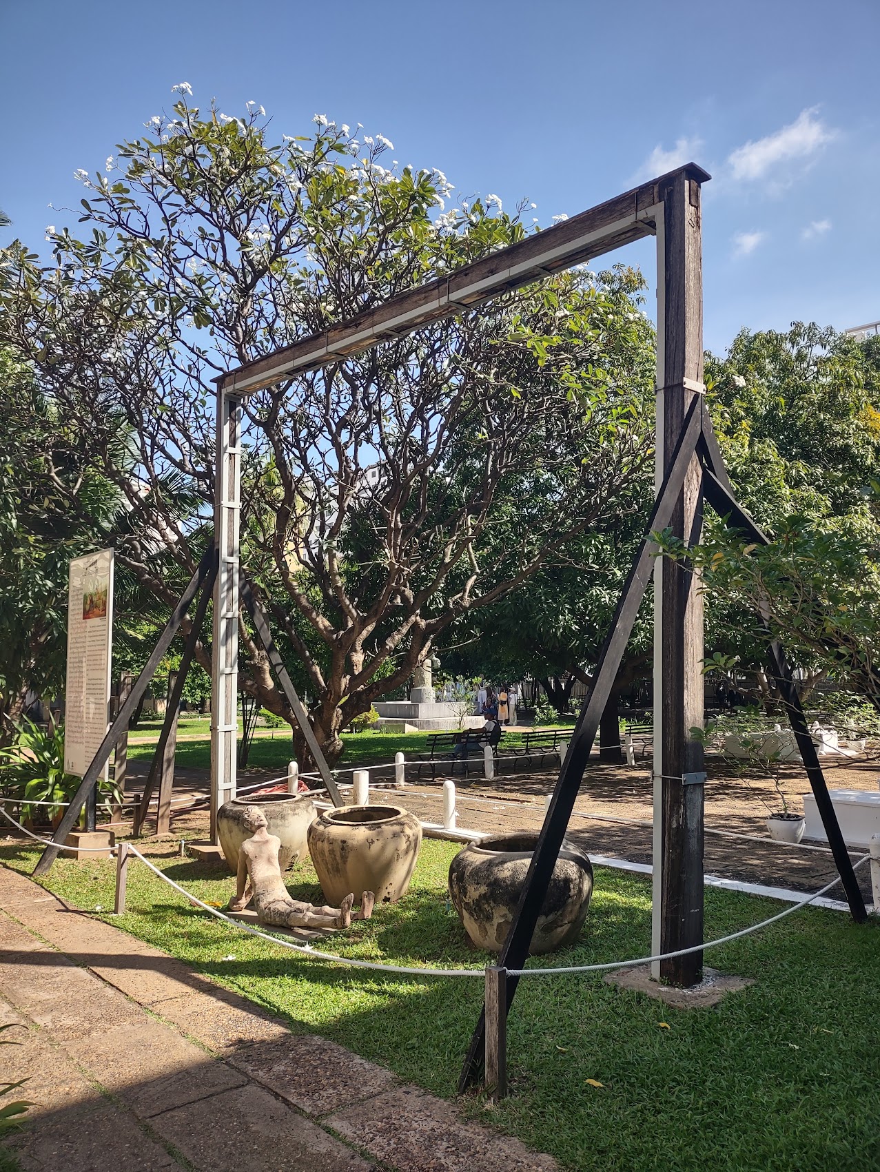 The two large courtyards between the school buildings was largely given over to various statues, plaques, and memorials, but the gallows which were used to publicly hang and torture prisoners remains.