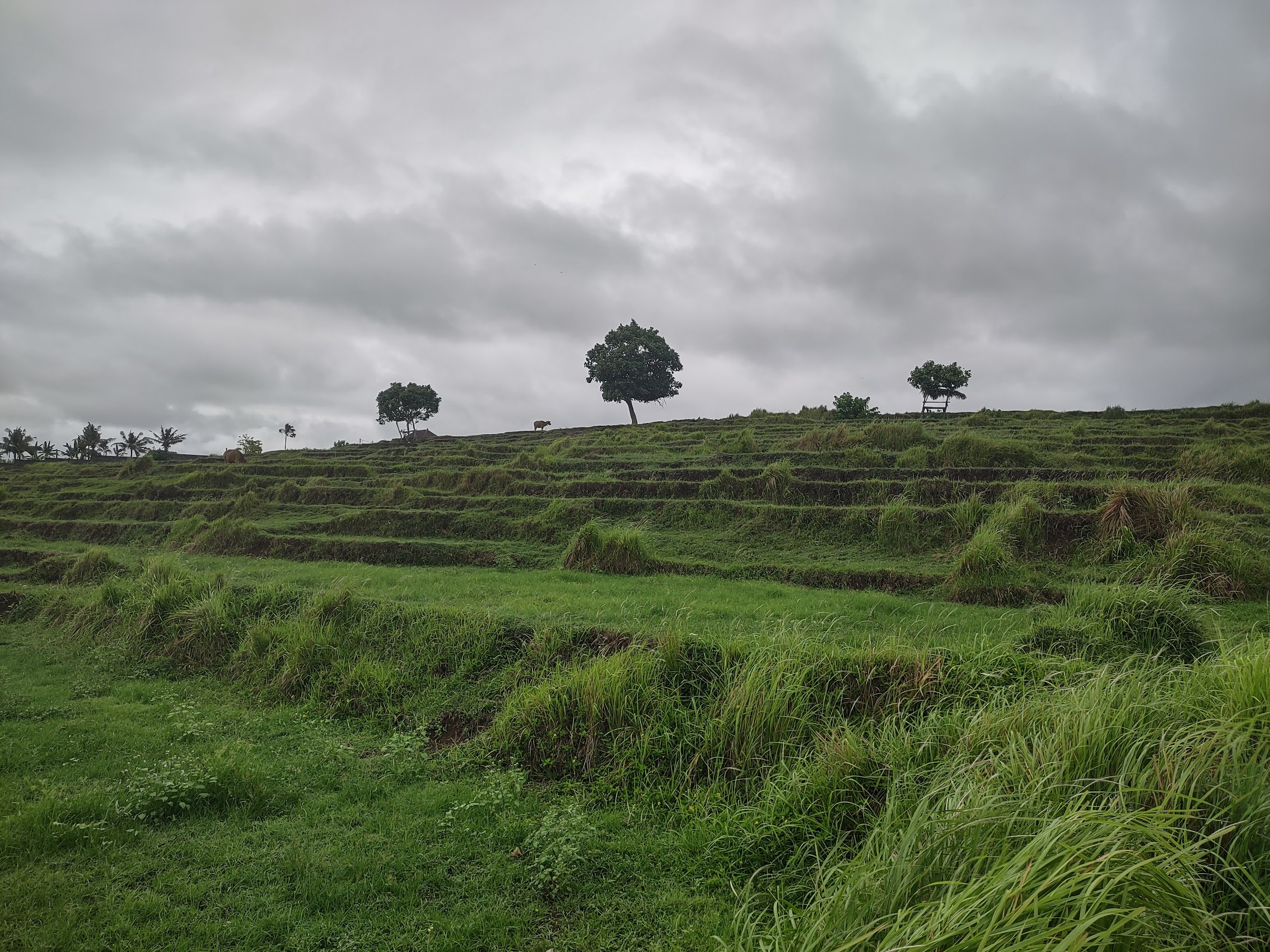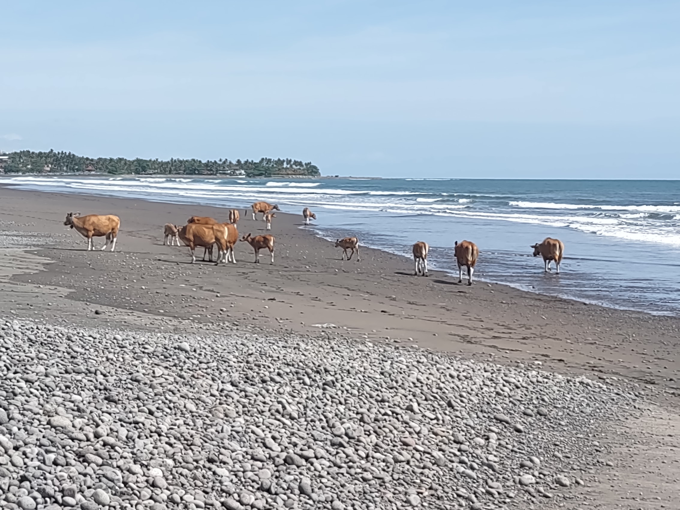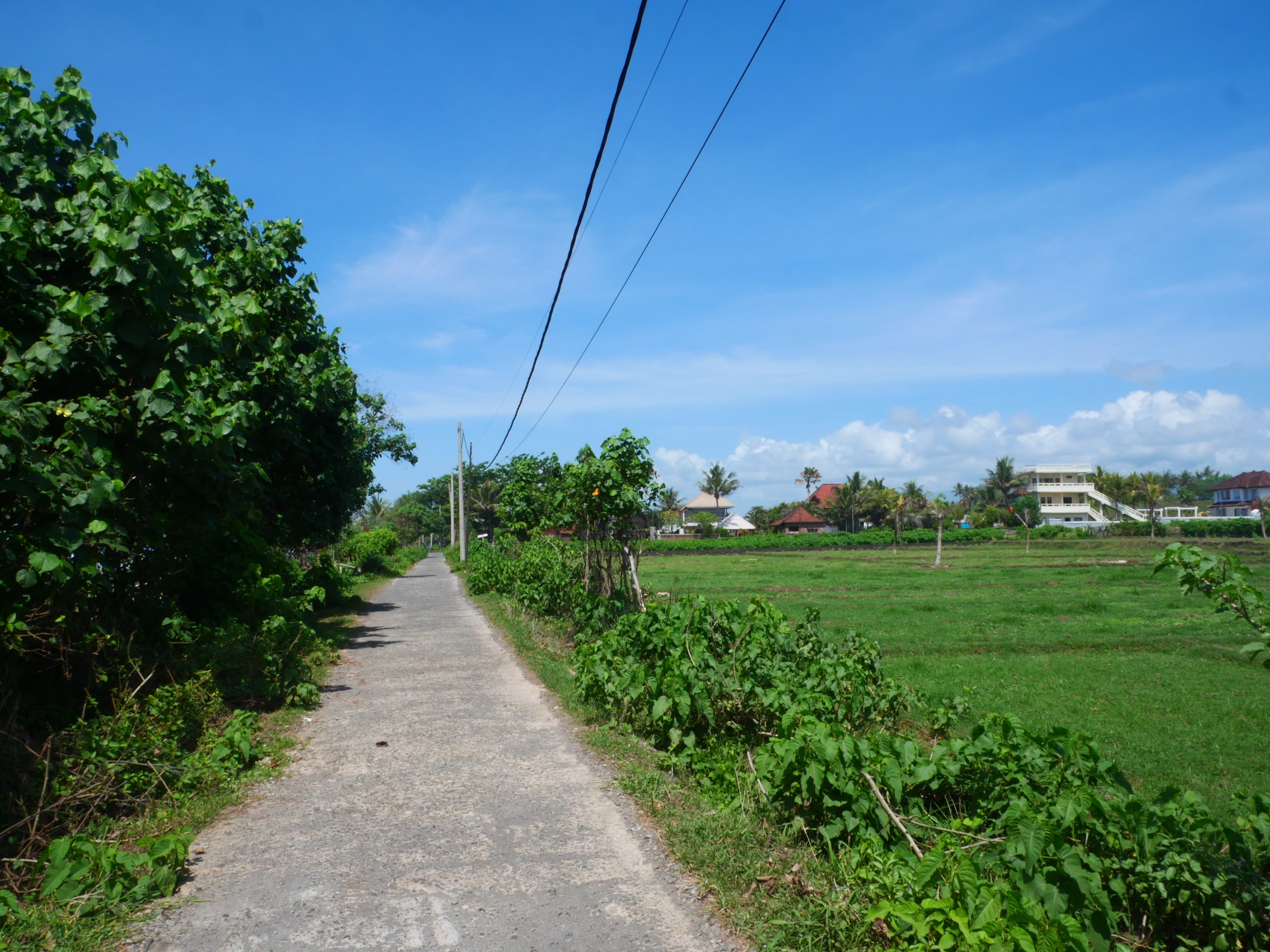 Our first stay in Bali was at a place called Sunsets on Sumbul. on Sumbul Beach, just a bit north of Medewi Beach a highly regarded but off-the-beaten-track surf spot famous for its very long left-hand break. Sunsets on Sumbul was located at the end of a narrow beach road with the ocean on one side and rice paddies rising up the hill with the mountains beyond on the other side. There were a few small resorts and restaurants down the beach road in the other direction and the nearby village of Pulukan was a medium length walk up the hill back to the main road.