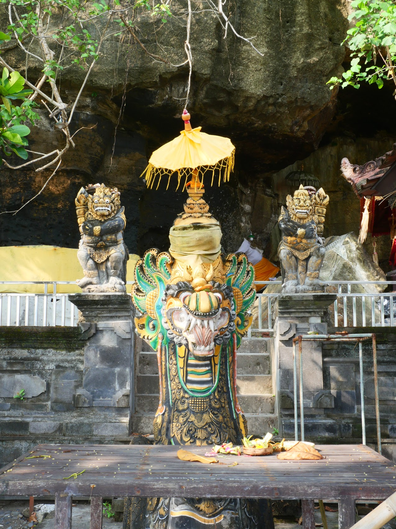 After touring the temple complex on the top of the hill, which is made up of numerous beautiful shrines, our guide sent us down a series of stairs which took us down to a small prayer grotto on the beach where there were more shrines and statues.