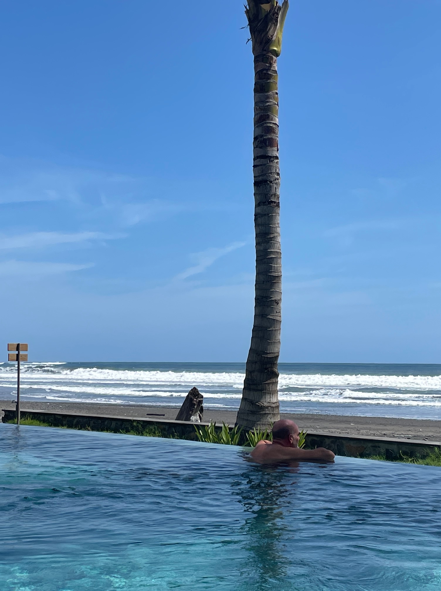 Our days were metered by the sun and the tides and the weather was consistently beautiful (with a couple of thunderstorms at night just to make Colleen happy). Temperatures were a bit on the high side (high 80’s to low 90’s during the day) but there was always a nice sea breeze blowing to keep things tolerable. Other than surfing, there really wasn’t much happening there (which suited us just fine) and so, for the most part, we just relaxed, walking the beach at sunrise and sunset, hanging at the pool and occasionally walking into town (not much happening there either).