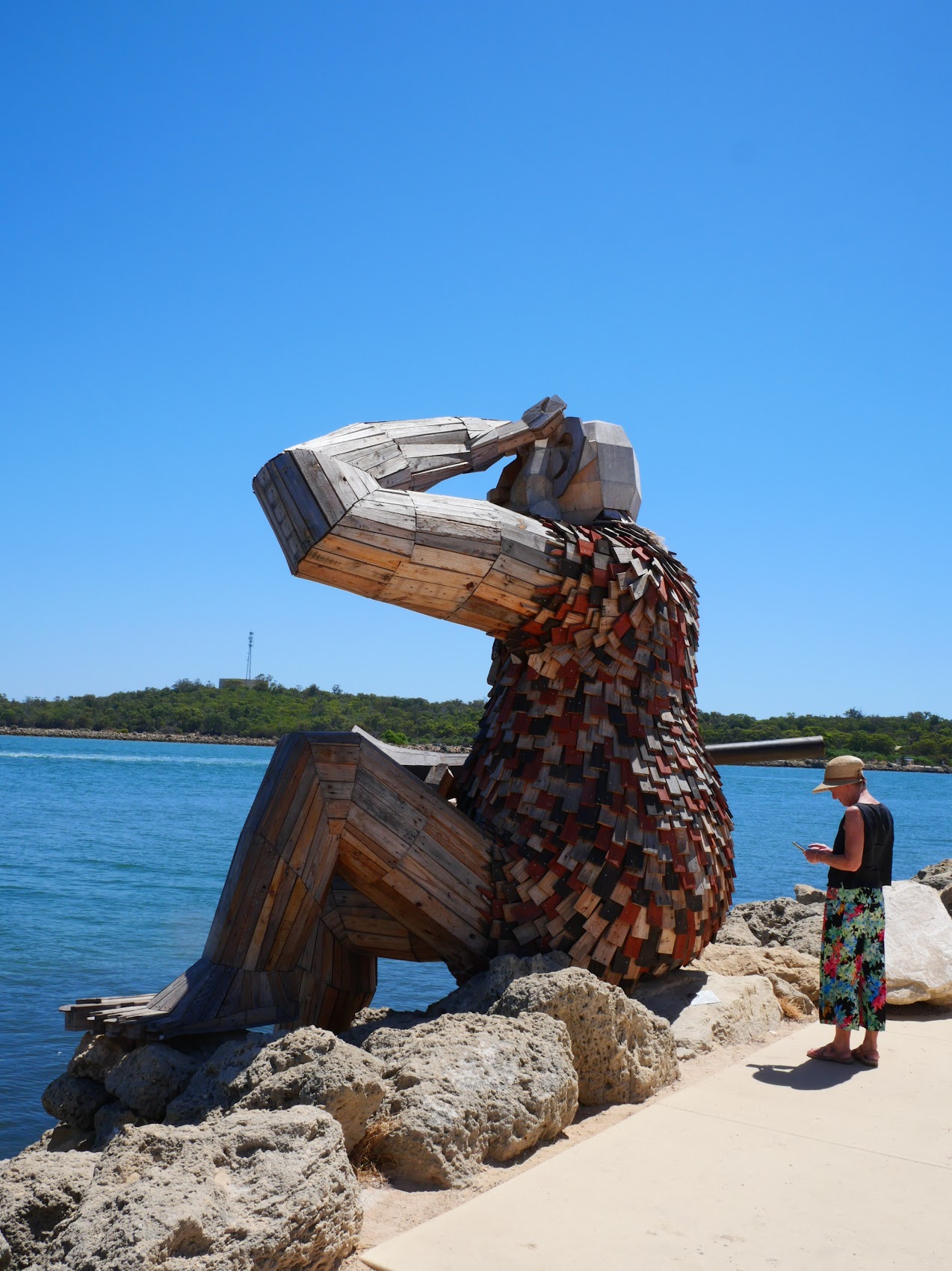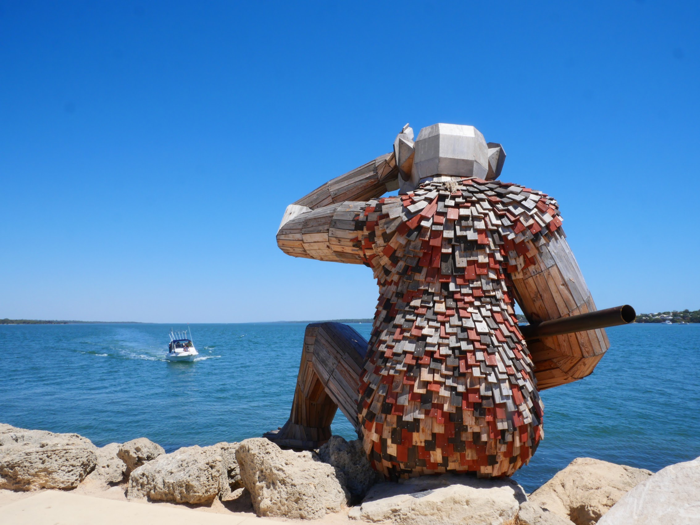 The sculptures, which were less than two years old when we saw them, were nicely weathered and fit well with the natural landscapes within which they were situated. Along the way we discovered that there is actually a lot to this installation beyond just the sculptures and it was easy to imagine how you could spend a pretty fun and entertaining day or two with kids finding each of the five Giants and collecting clues in order to find the sixth “secret” Giant. (See https://www.giantsofmandurah.com.au/)