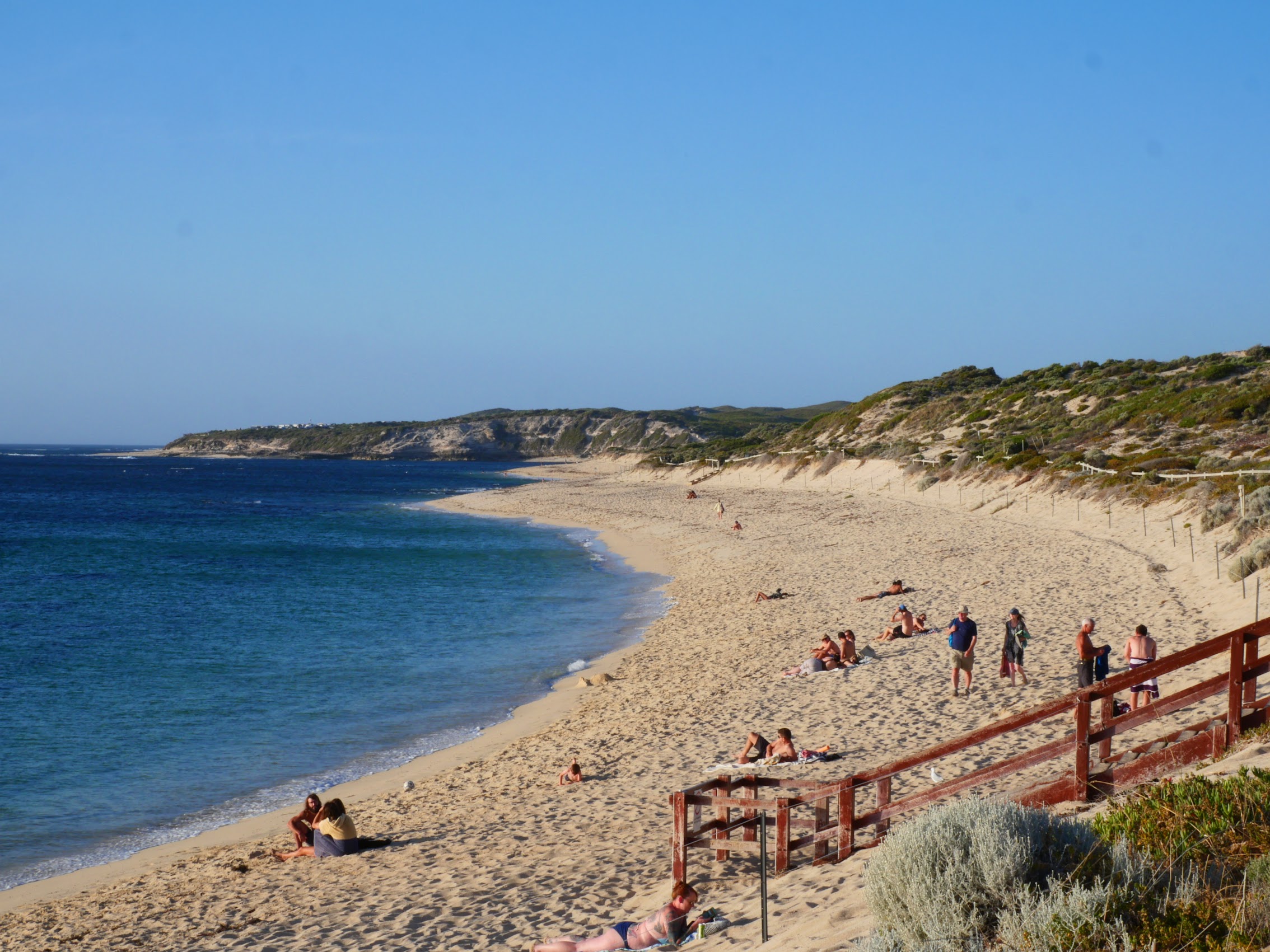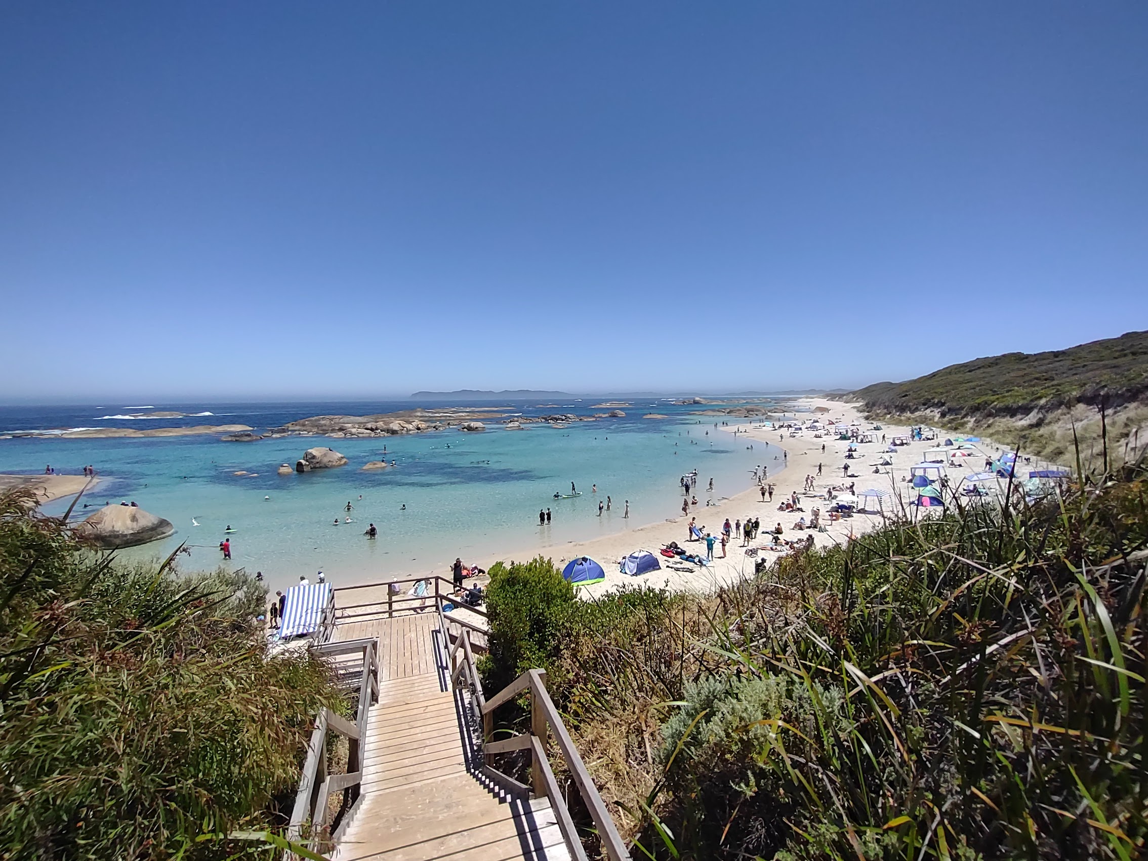 We eventually found our way out of the bush and followed a road up a hill which crested at the White Elephant Café and got our first look at Gnarabup Beach which seemed pretty uncrowded for a Friday afternoon. We found a nice spot on the beach and relaxed as the sun slowly descended on our first day in Gnarabup.