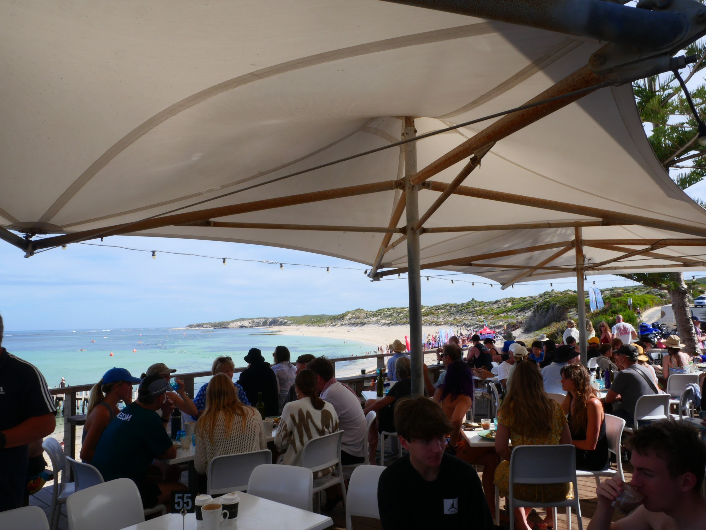 For our first (and last) full day in Gnarabup, we booked a Margaret River Valley winery tour. We were scheduled to be picked up at the White Elephant Café and left a little early to grab a coffee. When we got there, we were surprised to see what seemed like the entire town turned out for a big annual swimming event and we spent some time mingling with the crowd and watching some of the races.