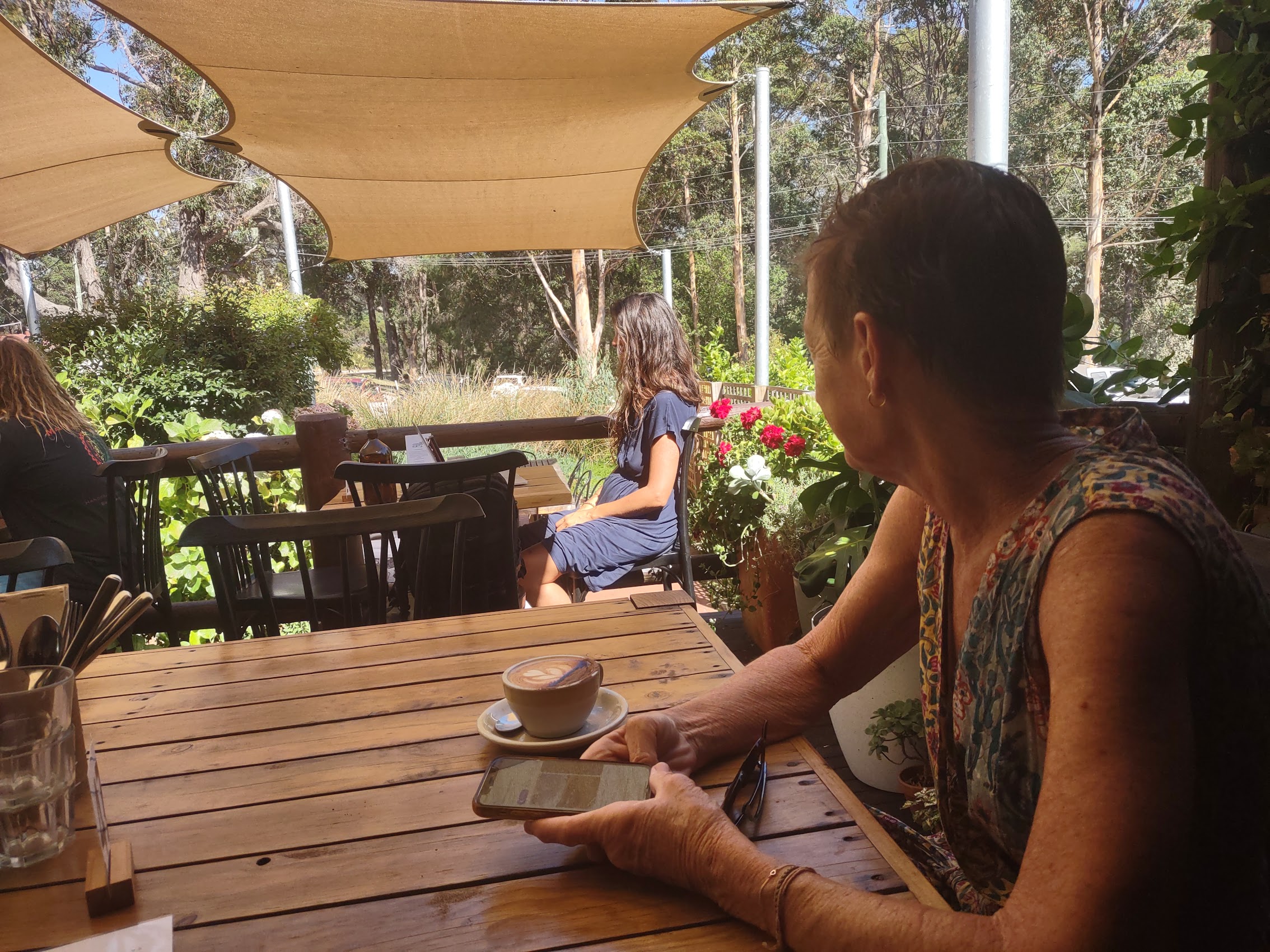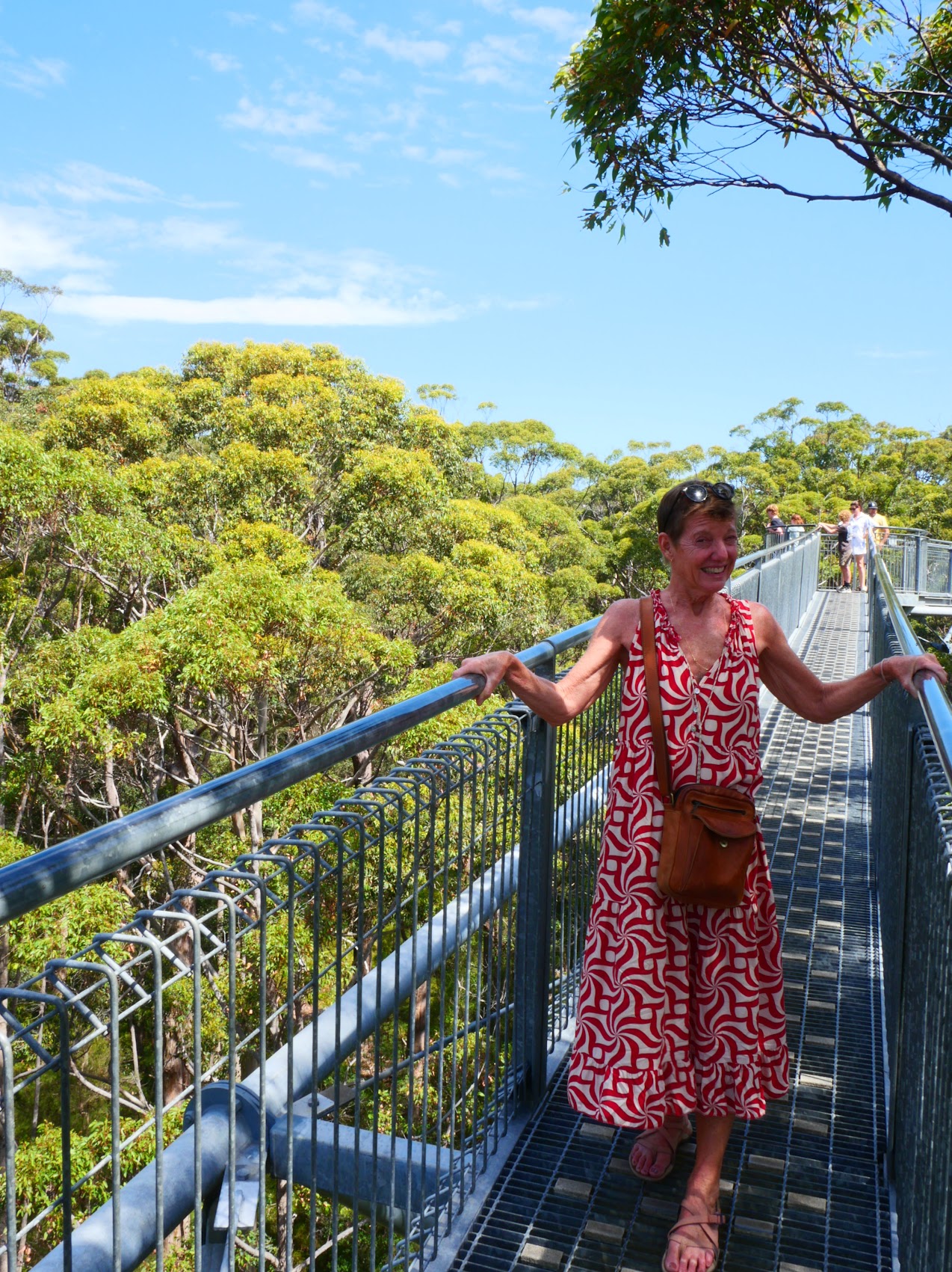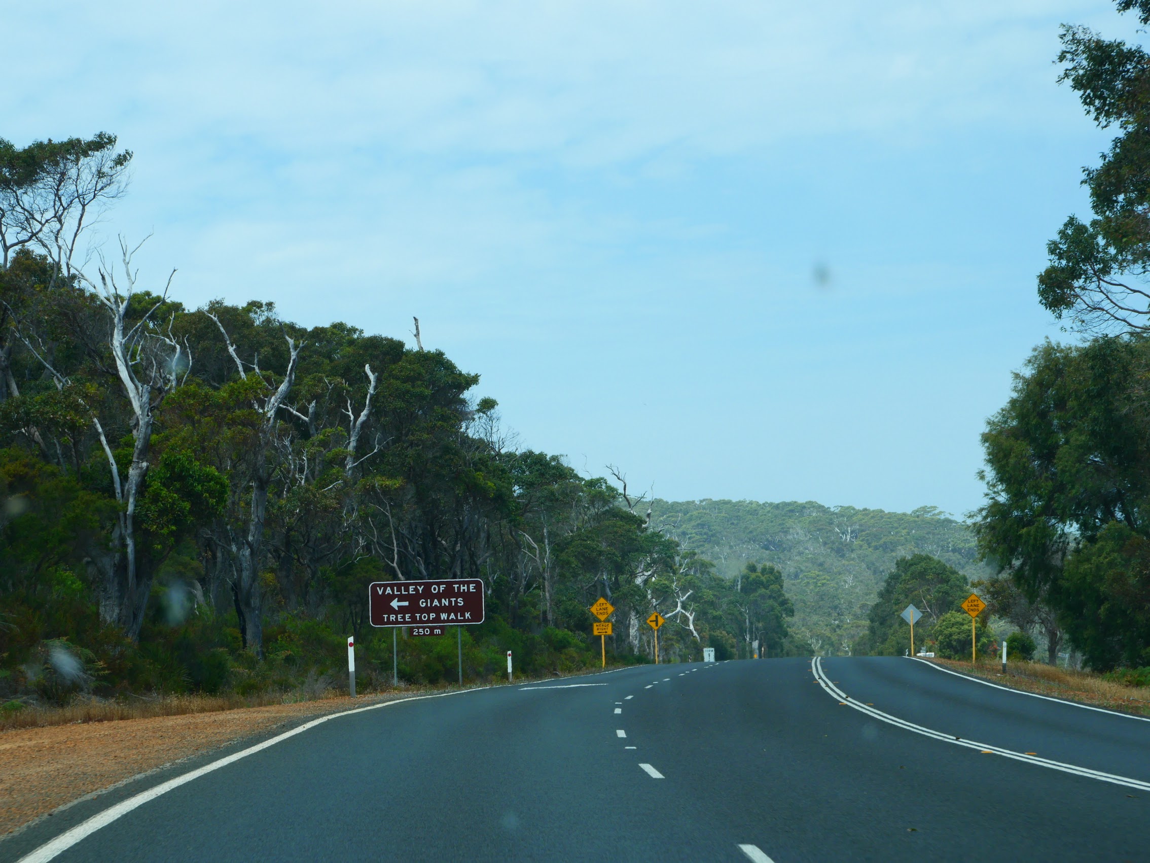 After yoga we loaded up and stopped at the White Elephant Café for a coffee and last glimpse of the beach before hitting the road for our next destination, the town of Denmark. There is not a coast road for much of the distance between Gnarabup and Denmark so we headed inland but chose what was, if not the fastest route, the one which seemed likely to be the most scenic and which took us past one of our planned stops, a place called the Valley of the Giants.