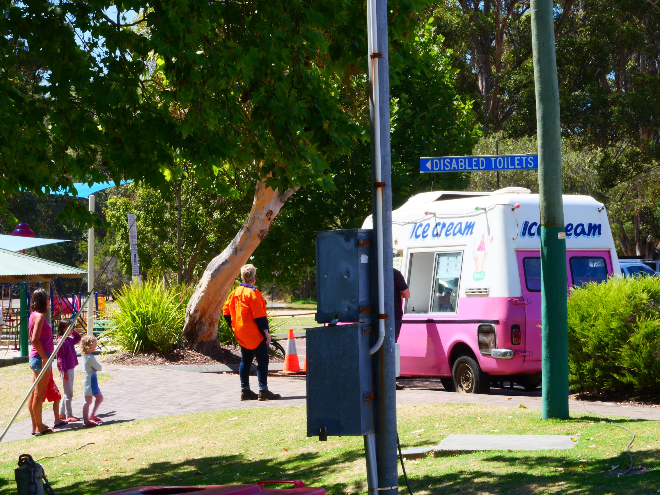 From there we wandered on into the town proper, which turned out to be small but interesting little place with a beautiful riverside park and some nice shops including the award-winning Denmark Bakery with an amazing assortment of both sweet and savory baked goods. (Over time we learned that good bakeries are a staple of all Australian towns.) On our way home we stopped at the local IGA, which we were happy to see on our way into town, to restock on groceries. (Again, nice to be in a place where there are real grocery stores!)