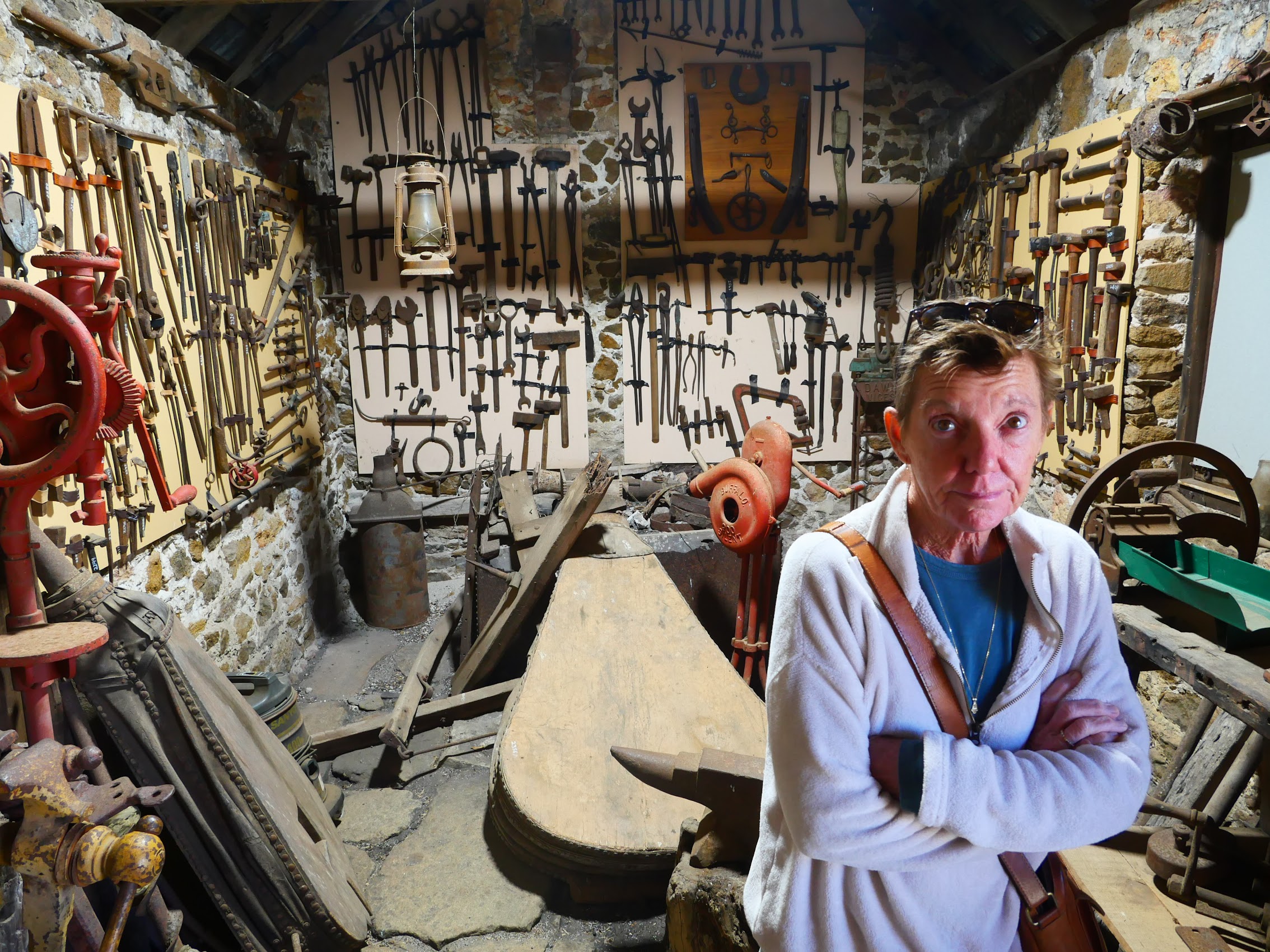 Our first response when we peeked into one of the “galleries” was “what a bunch of junk!” but, as we made our way through one barn after another, trash or treasure, you kind of had to be impressed with the sheer size of the collection, particularly the farm tools and implements (which Max appeared to have a particular thing for).