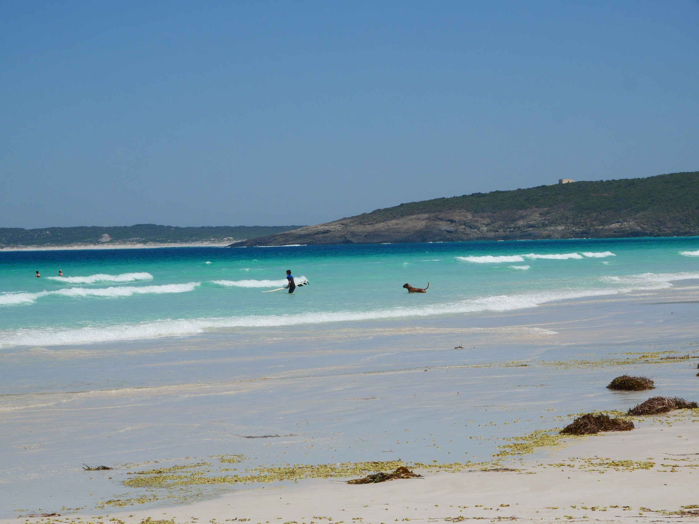 There are a number of nice beaches around Bremer Bay, but the one we decided to spend time on was Blossom Beach which, like all of the beaches in the area had fine white sand. Although Blossom Beach does have vehicular access (which we elected not to try), it is very long and so wide that it seemed uncrowded despite the number of families and groups with vehicles. We were particularly intrigued with one surfer whose dog would follow him into the waves then cheer him on from a distance.