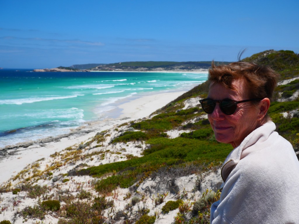 On our first full day in Esperance we headed south out of town to take what is known as the Great Ocean Drive, a 42 kilometer route which turns west along the Southern Ocean then loops back east to a place called Pink Lake then back to the northern end of town. The drive west along the coast was spectacular, with one beautiful beach after another and observation points in between. We stopped at several spots along the way, none of which were particularly crowded, but held out thinking the maybe the next beach might be even better. (We sometimes have a problem making commitments to a beach until we have seen all the options…)