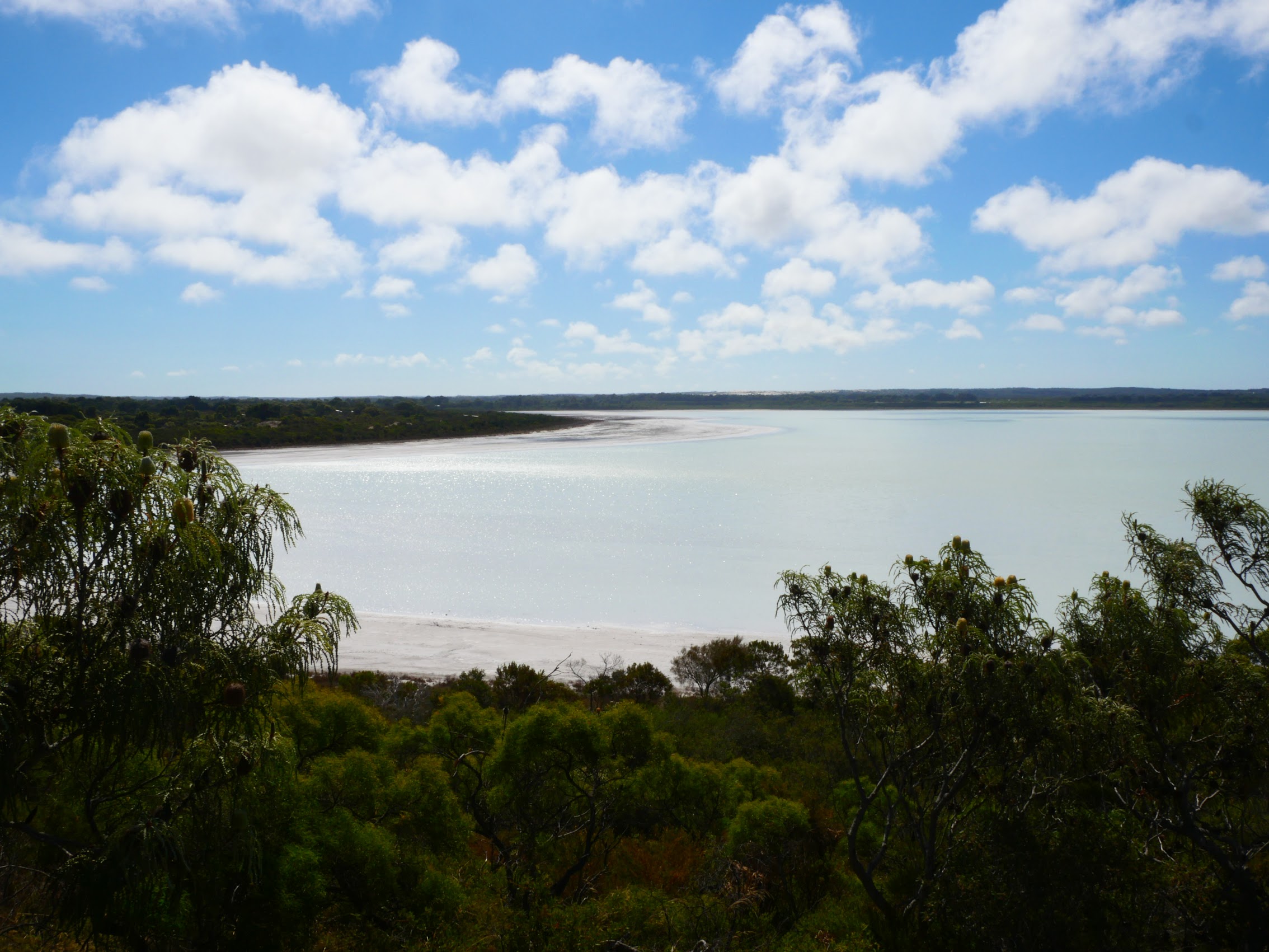 After spending a couple of wonderful hours on the beach without another human being in sight, we packed up our stuff and followed Great Ocea Drive back inland past a famous local landmark the (not!) Pink Lake. While we had seen photos of this lake when it was pink (algae) we were aware that this was no longer the case (at least it hadn’t been for awhile). Pink or not, it was a beautiful spot with lovely views of the lake surrounded by lush foliage, including some beautiful Banksia, an indigenous flowering plant which is unique to Australia and unlike anything we had seen before.