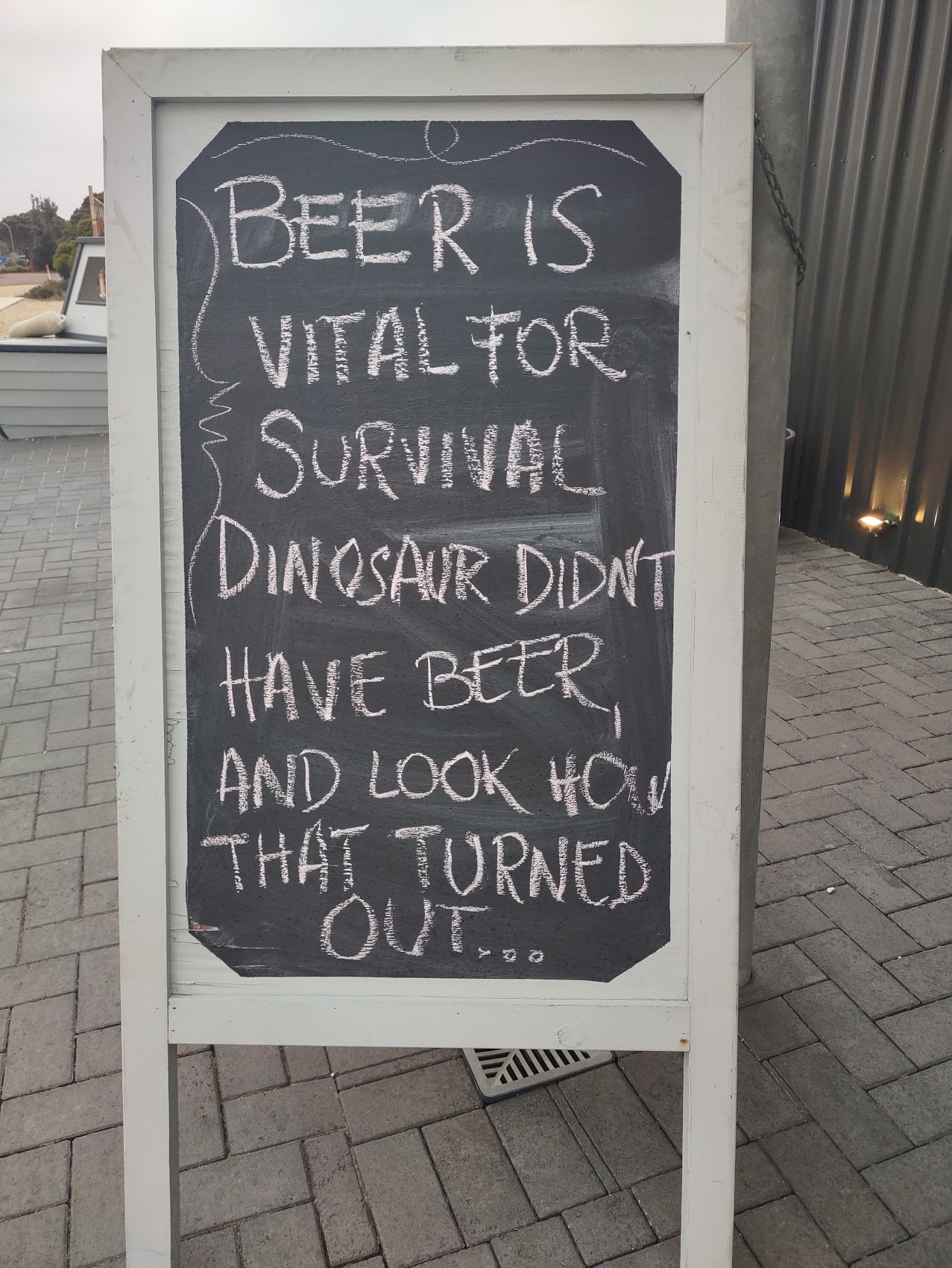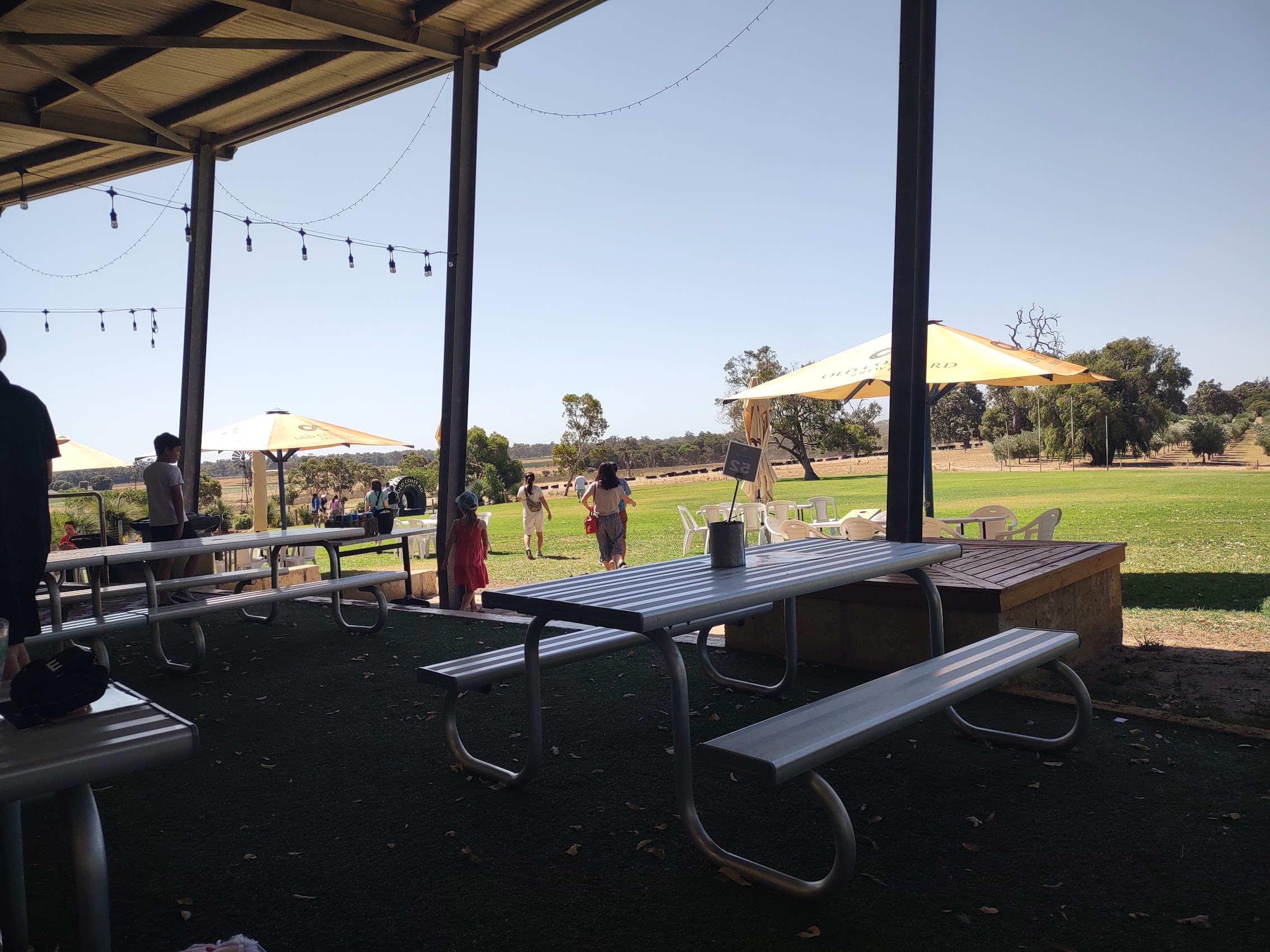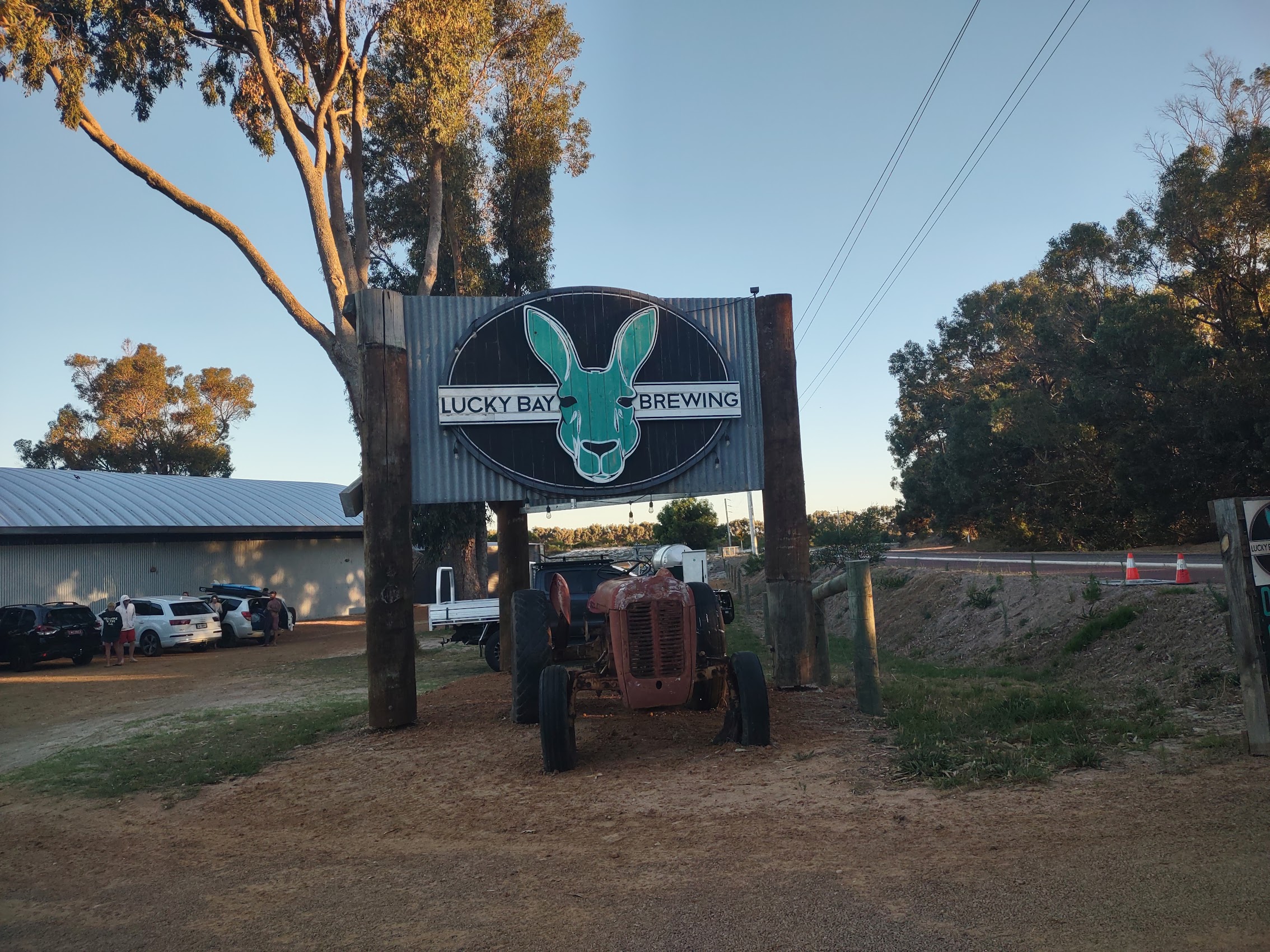 We continued south along the coast down old Highway 1 which pretty quickly became nothing but trees and tarmac and, after about 45 minutes of driving, we saw a sign for the Old Coast Road Brewery. Although it wasn’t on my beer radar, by this time we were feeling a bit hungry and uncertain regarding what or when other eating options might present themselves, so we decided to give it a shot. What we discovered was what would be the first of many extremely family and pet friendly Western Australian beer gardens which we would enjoy. This one was nothing particularly fancy, with a shop and restaurant and a large shaded seating area and tables, umbrellas, and games scattered around a large lawn area surrounded by farm fields.