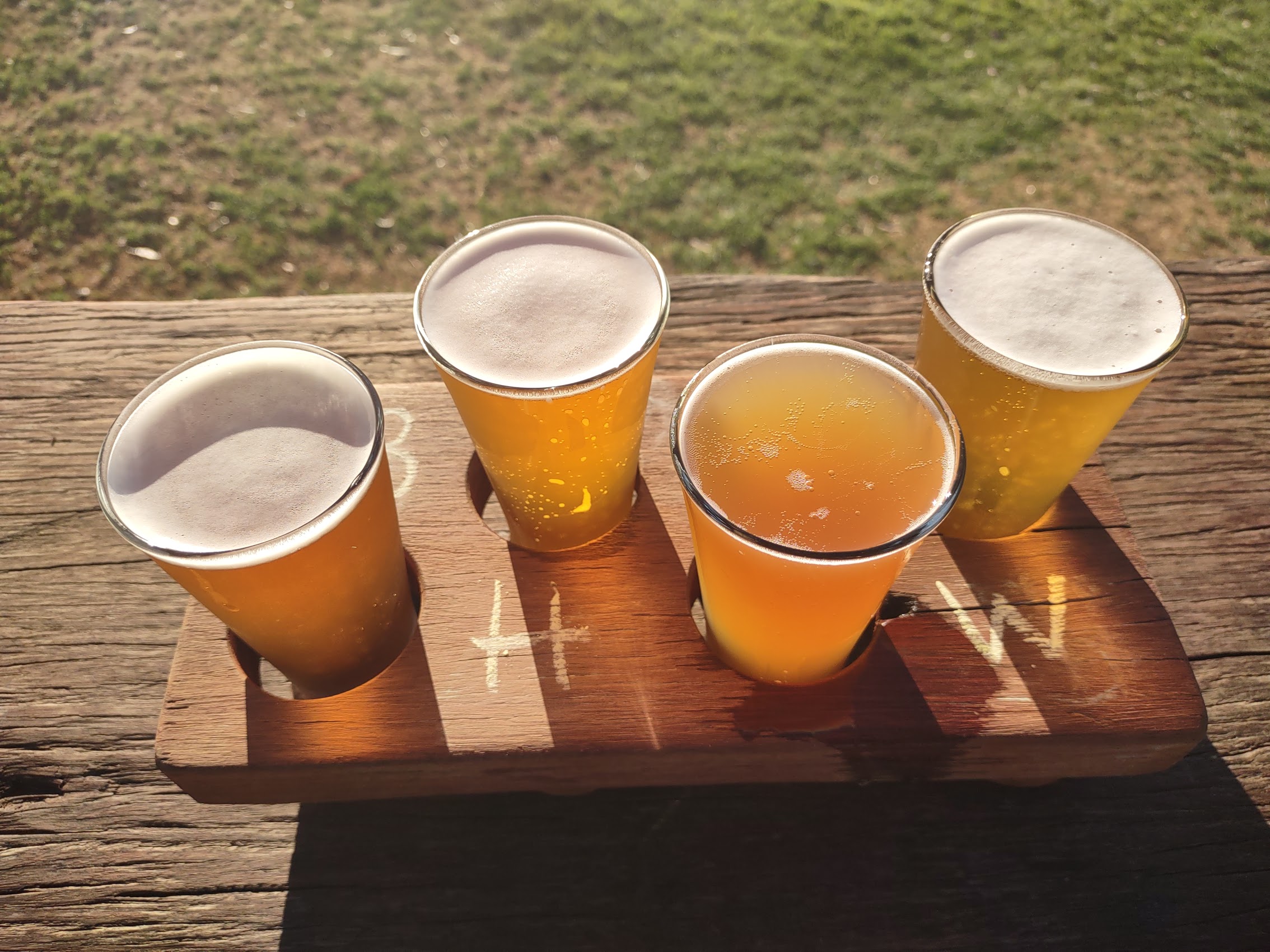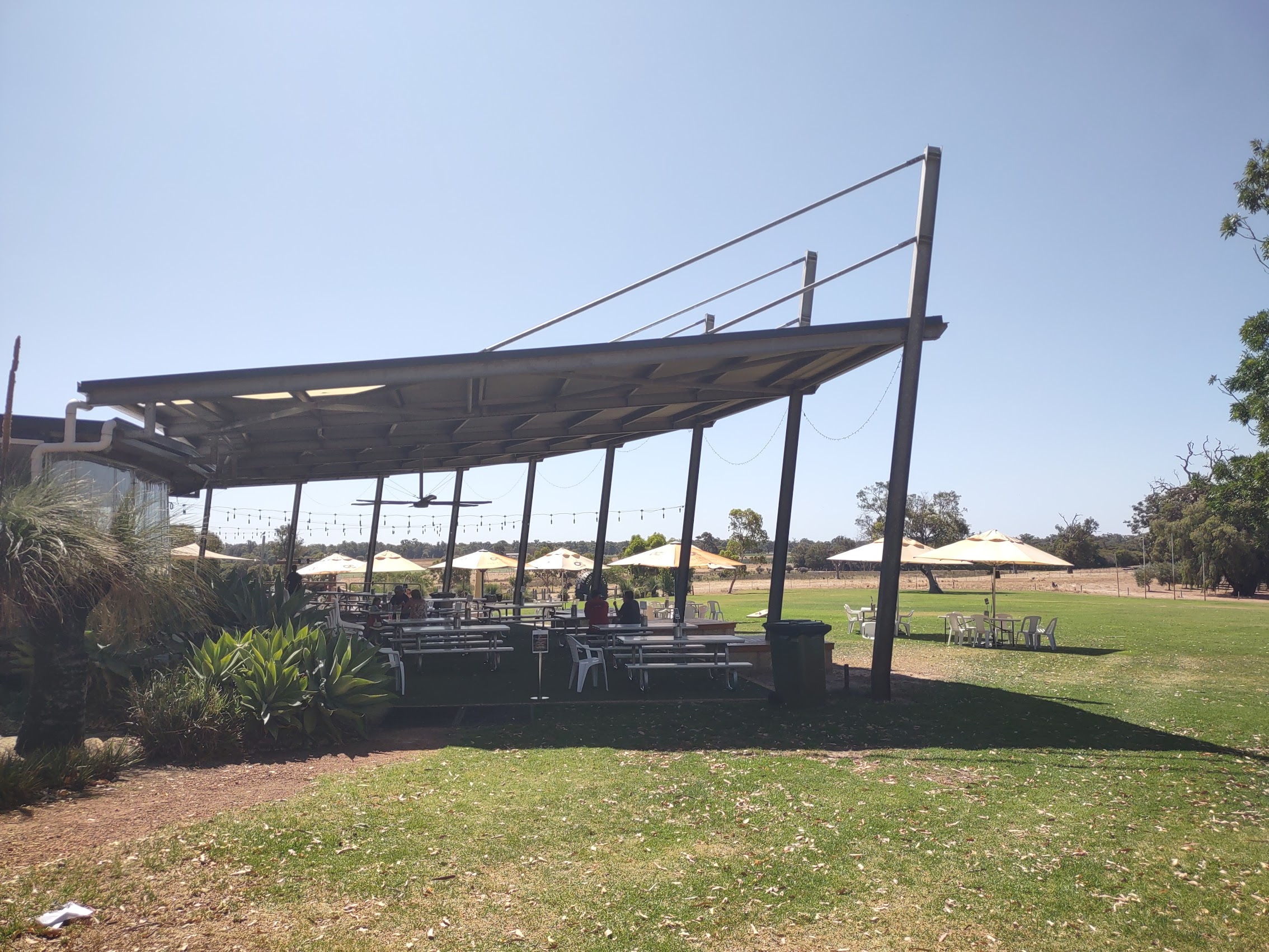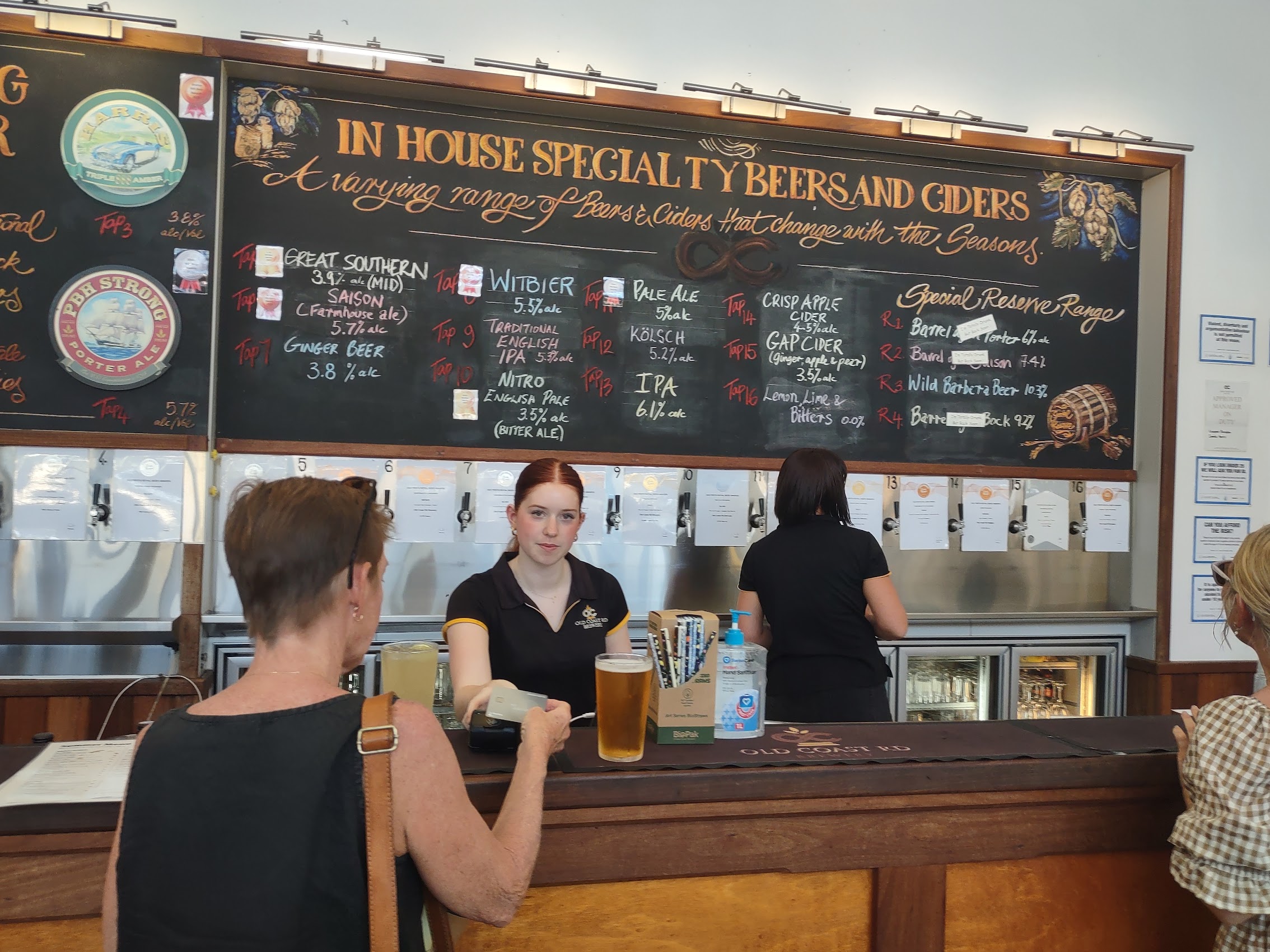 We continued south along the coast down old Highway 1 which pretty quickly became nothing but trees and tarmac and, after about 45 minutes of driving, we saw a sign for the Old Coast Road Brewery. Although it wasn’t on my beer radar, by this time we were feeling a bit hungry and uncertain regarding what or when other eating options might present themselves, so we decided to give it a shot. What we discovered was what would be the first of many extremely family and pet friendly Western Australian beer gardens which we would enjoy. This one was nothing particularly fancy, with a shop and restaurant and a large shaded seating area and tables, umbrellas, and games scattered around a large lawn area surrounded by farm fields.