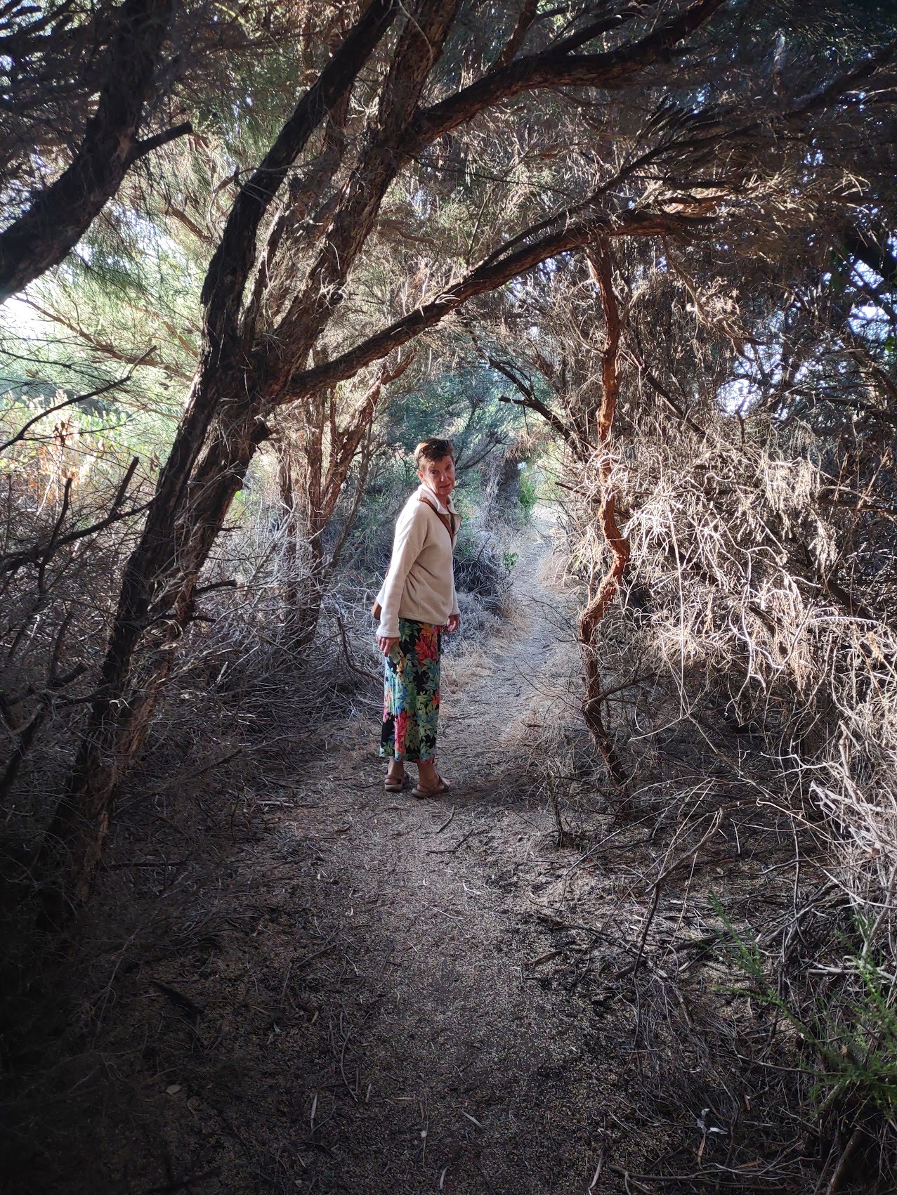 From Santi Ikto, we drove about 10 kilometers south to the parking area for another Giant, Seba’s Song, which we discovered after another about 1 km hike. Seba’s Song gazes across Collins Pool, the large bay below Mandurah, with a horn under one arm. The absence of a beard suggested that Seba might be female (but I’m no expert on the gender of giants).