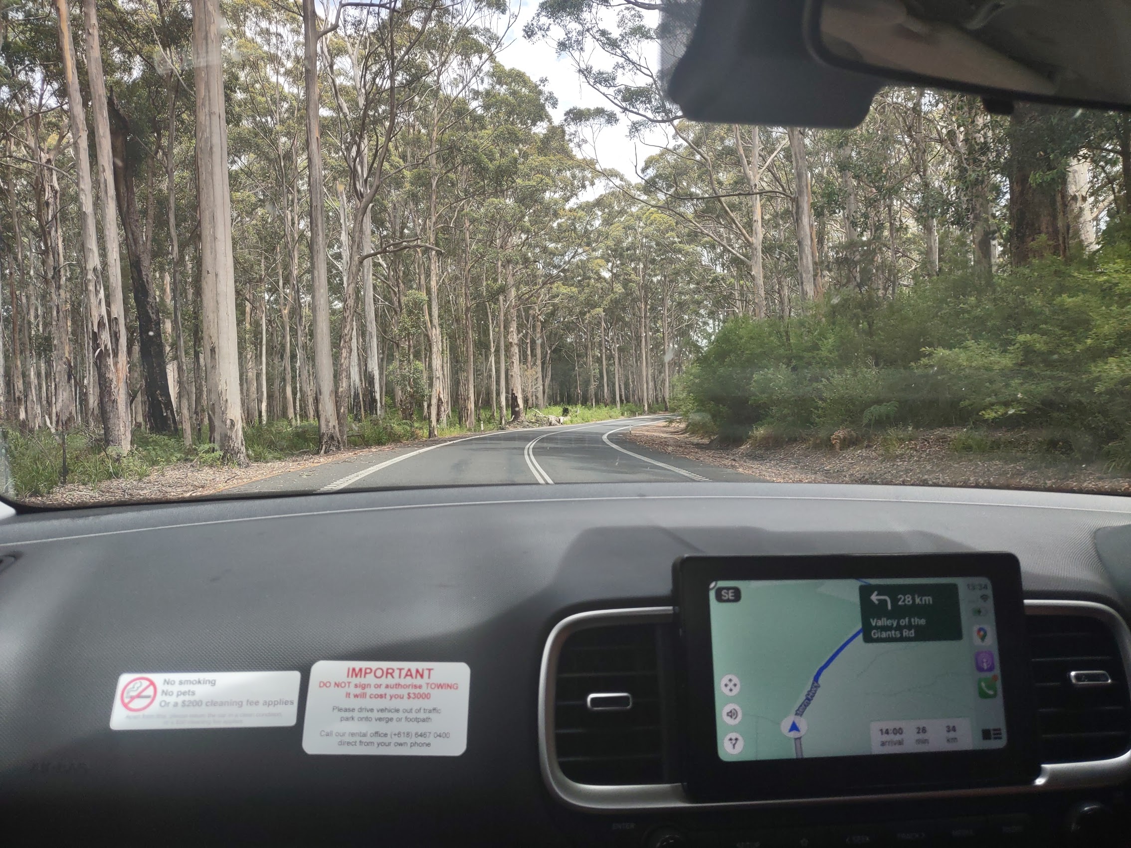 We initially looked at the option of travelling by bus on this leg, but found it to be pretty challenging logistically and surprisingly expensive and, perhaps most importantly, it would have greatly reduced our ability to be spontaneous and make stops where our fancy took us – something which seemed important on this leg of the trip. So, we did something which we haven’t done much on this trip – we decided to travel via rental car. From our bus stop in Perth, we headed to an Australian rental car place called “No Birds” (no idea!) where Colleen had gotten us a sweet deal on a Kia Sportage (less than $200 for 11 days!).