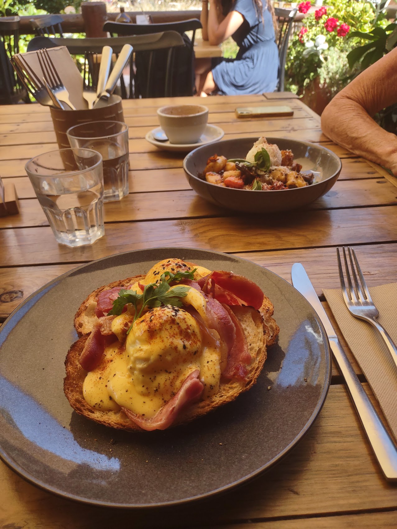 We got going early the next morning after yoga (see below) to explore town which was just a short walk away. We stopped in at a place just a block down the street from our place called Mrs. Jones Café for breakfast before exploring the local artists gallery next door to it.