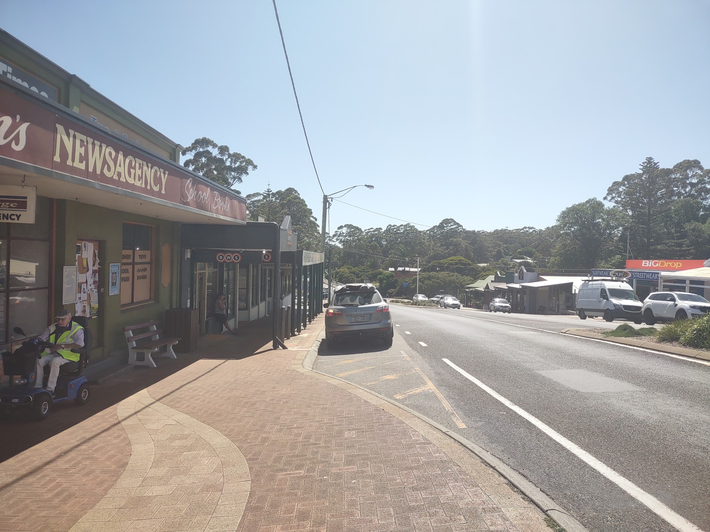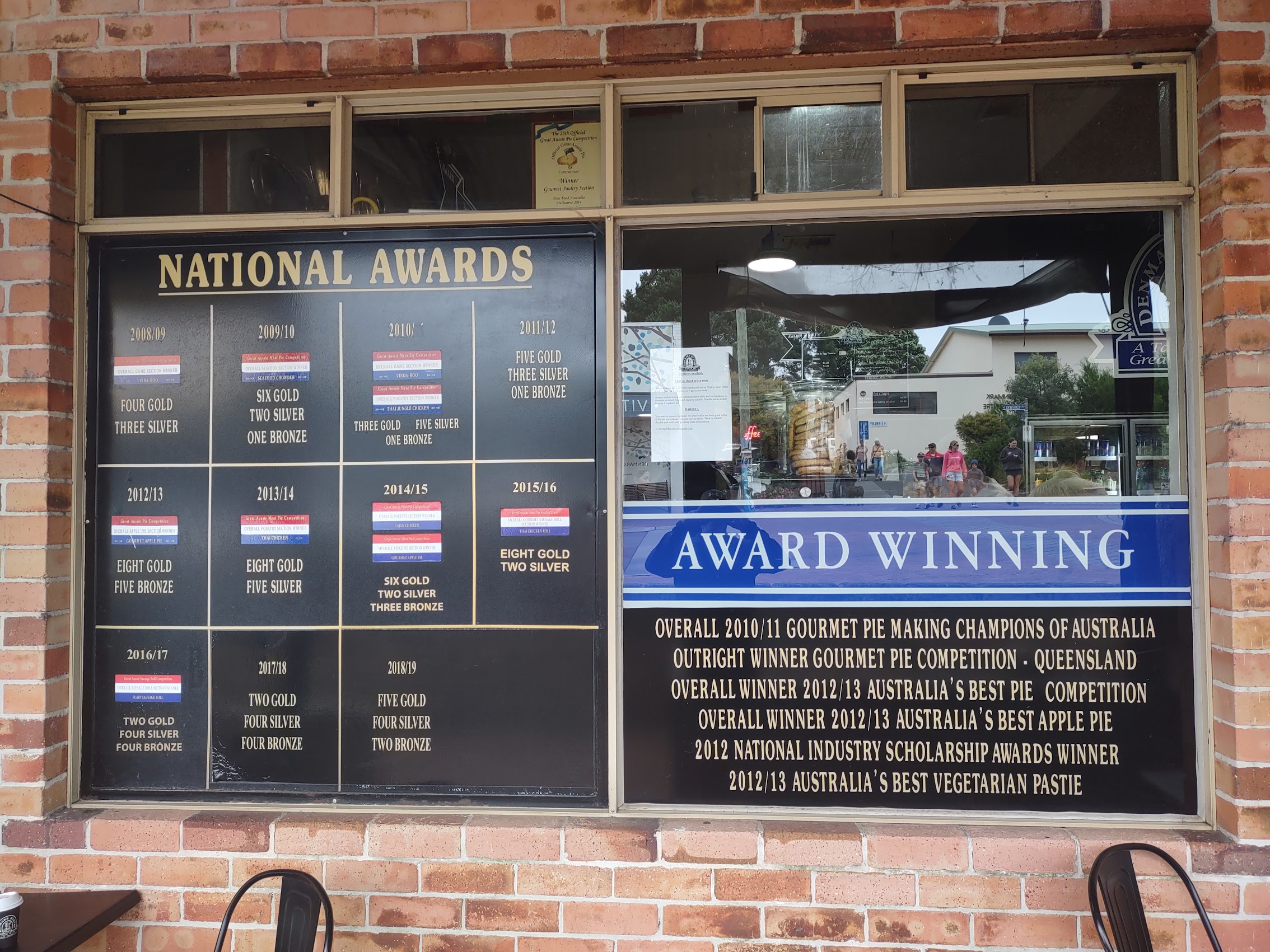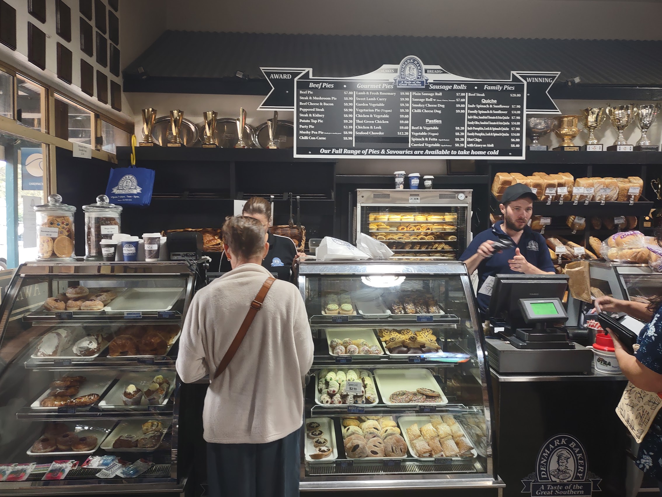Denmark Yoga Centre listed a yoga/pilates class that fit in with our travel schedule, so I headed into the town seeing vivid green parrots along the way. There were three other participants in various stages of getting settled in when I arrived. I enjoyed listening to the banter with that strong Australian accent as the locals shared aspects of their daily lives, not too dissimilar to ours back home. The studio was very sunny and cheerfully decorated. Our instructor was Carol who offered an interesting mix of yoga and what I presume to be pilates-like. Immediately following class, we found the Denmark Bakery completing our civic duty before heading out.
