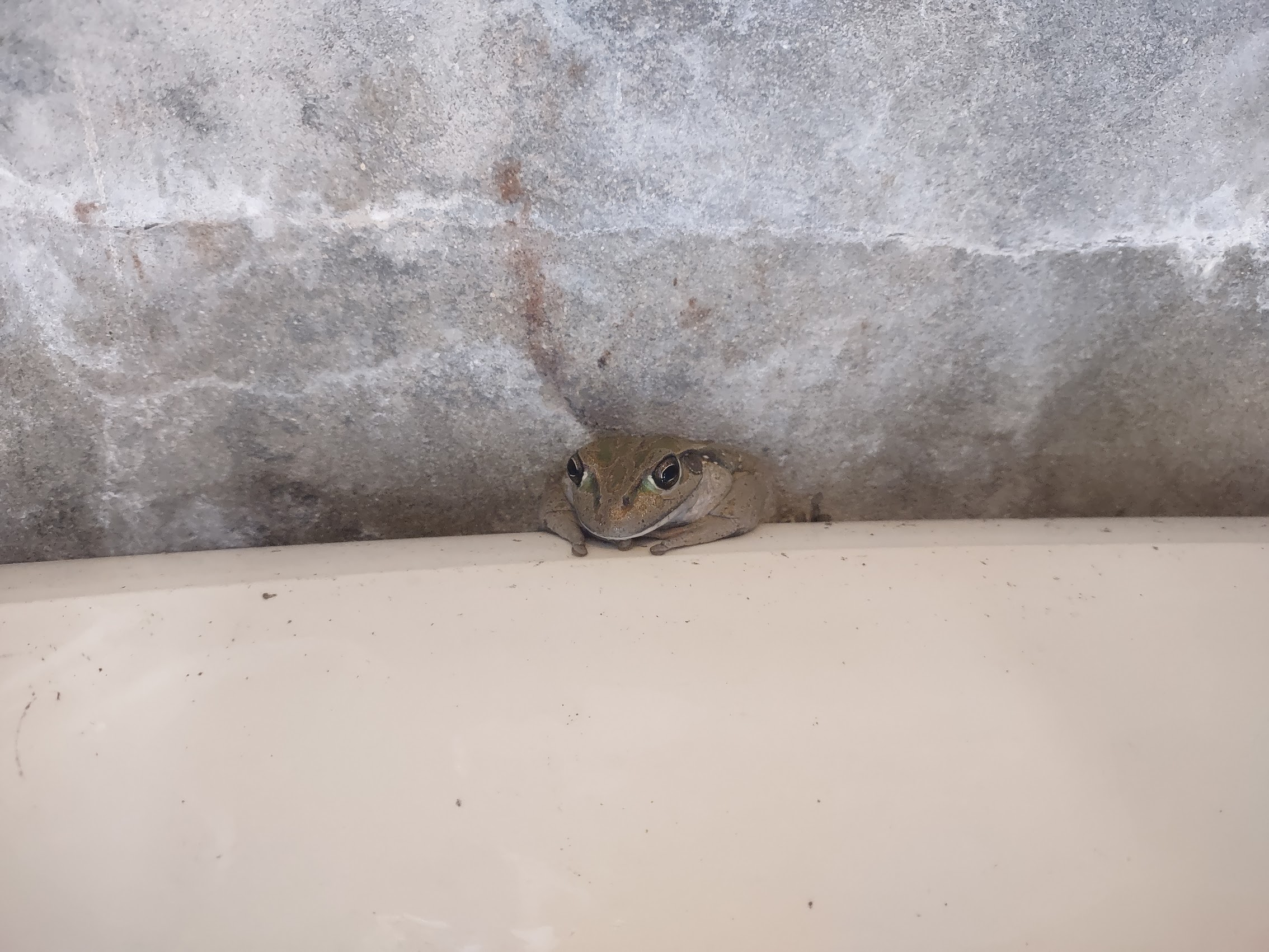 It had a living and dining area with kitchen and a separate bedroom and a bathroom with a sink, shower, and clothes washer, but, somewhat to our surprise (you really have to go over the listings closely!), the toilet was in a separate shed (really an outhouse) located a few steps above the cottage in the garden. We quickly learned that it was important to securely close the outhouse door securely at night, both to keep the weather out and the frogs who liked to hang out in there!