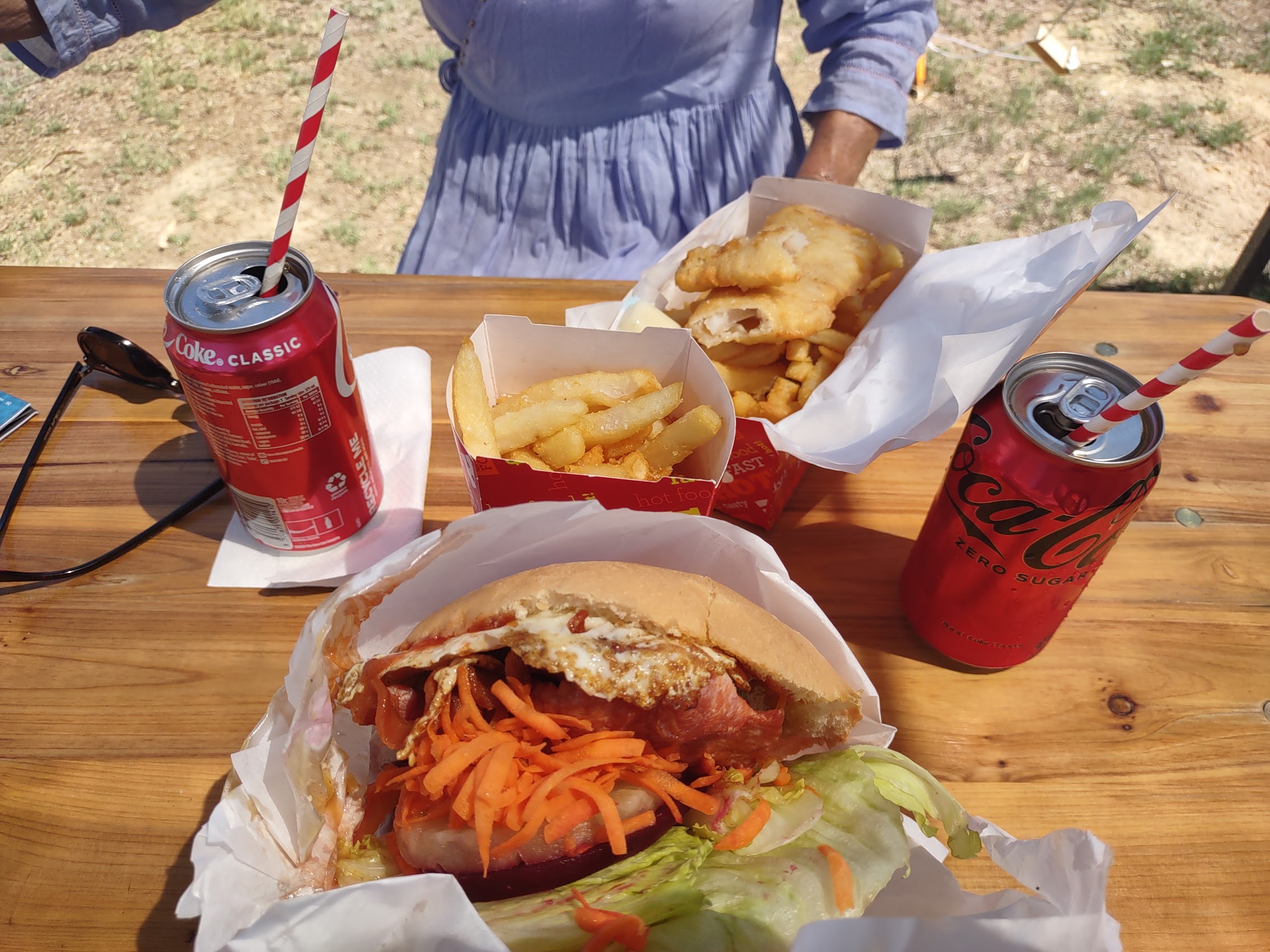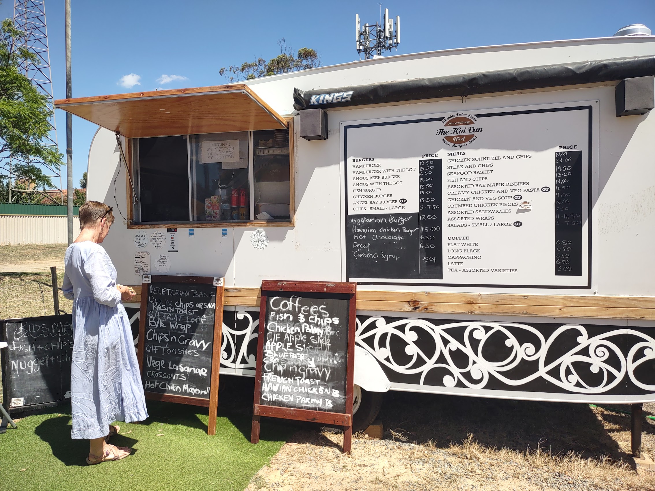 We elected to pass on the food counter at the BP and instead decided to dine al fresco at a place called the Kai Van, which was literally a small mobile home which had been converted to a food truck. Colleen ordered the fish and chips and I ordered the “hamburger with the lot” (like “the kitchen sink”, “the lot” is basically anything they have behind the counter which can be put on a burger). The food, which was relatively inexpensive (by Australian standards) was actually quite tasty and got us back on the road to Esperance fairly quickly.