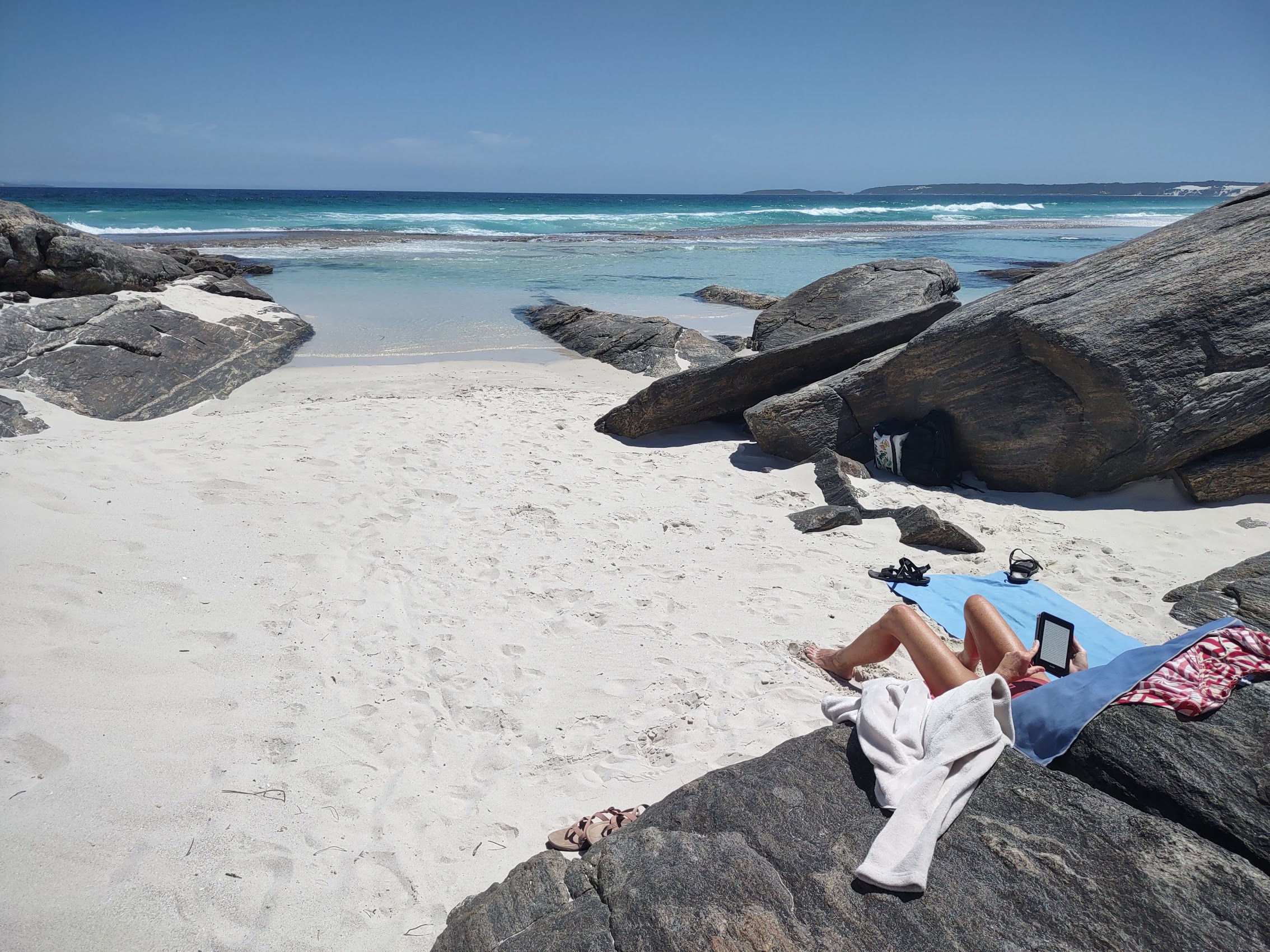 On our next to last day in Esperance, Colleen tried to start her day with yoga which, alas, was not to be as the yoga shala she went to did not appear to actually exist. For consolation, she spent most of the day back at the beach while I (unfortunately) spent it working on the blog.
