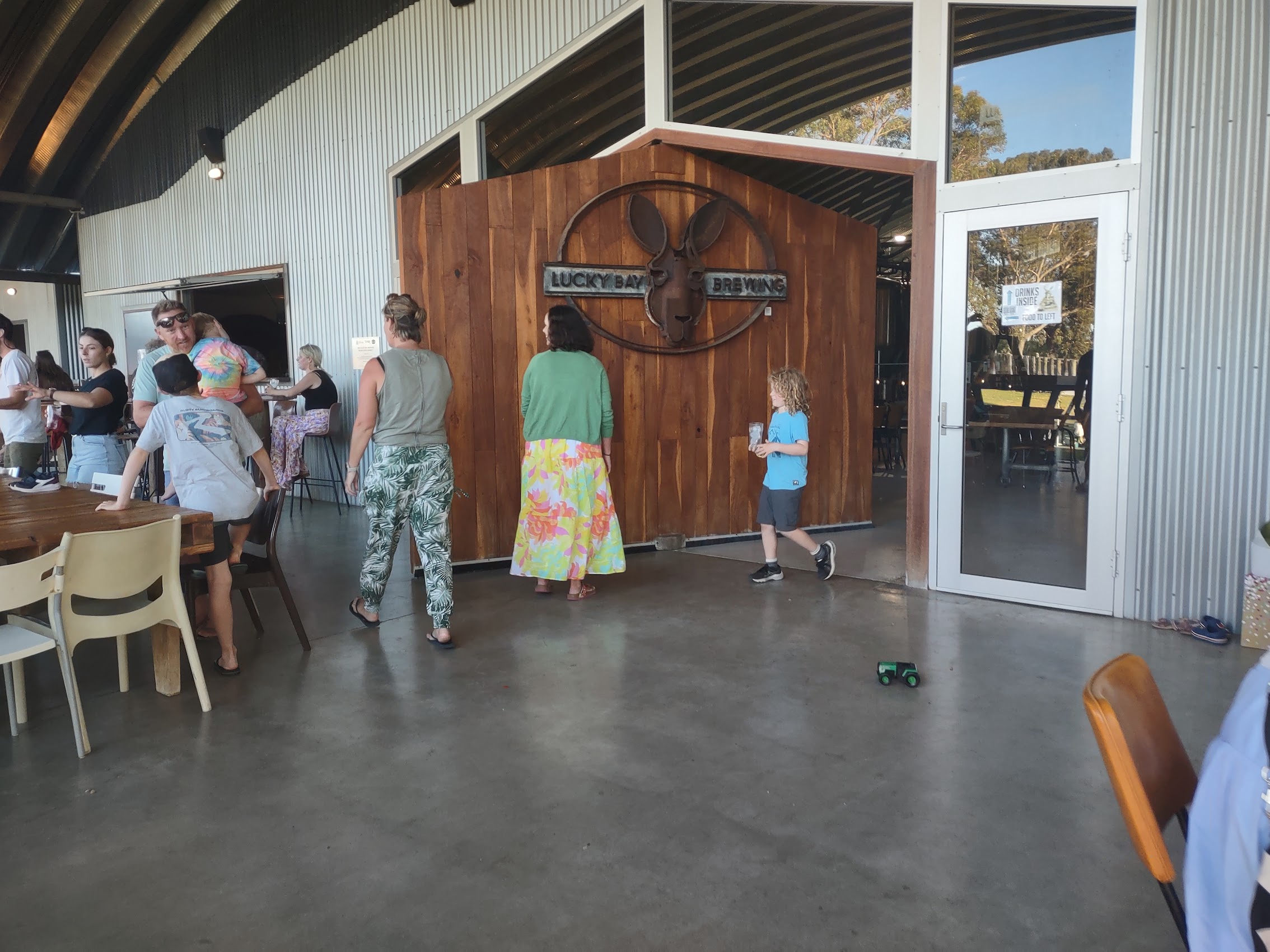 By midafternoon both of us had worked up a thirst so we decided to pay a visit to the Lucky Bay Brewing Company, just a short ten minute drive from our place. Lucky Bay Brewing was what we were quickly growing to expect in an Australian brew pub/garden: an informal family-friendly place with a casual laid-back vibe and excellent beer. I enjoyed a flight of IPAs while Colleen savored a mulberry sour.