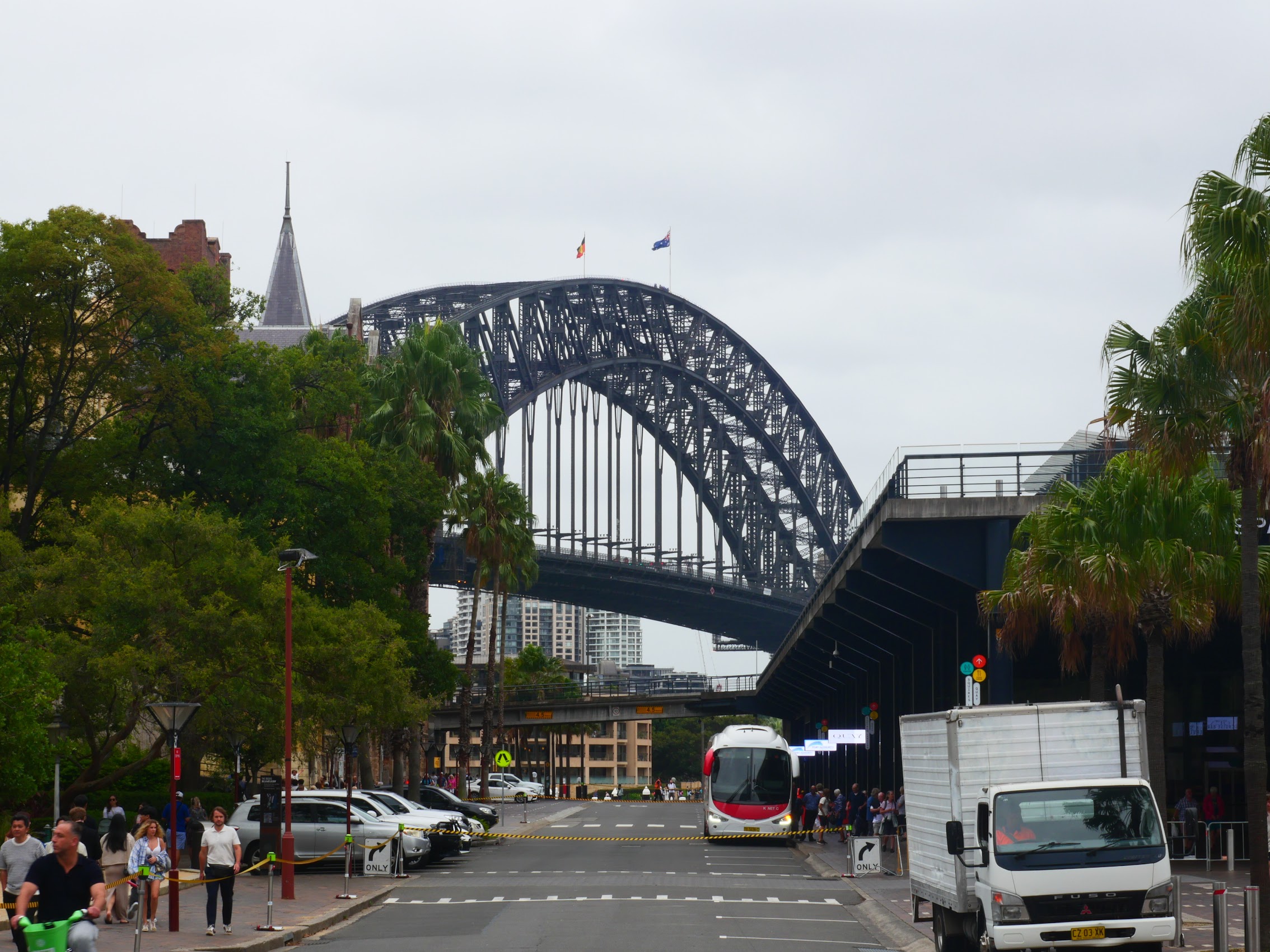 As we wandered the Rocks neighborhood, we caught glimpses of the Harbour Bridge which at one point was a bit reminiscent (for me at least) of the iconic view of the Manhattan Bridge in New York which you see in so many movies and television shows.