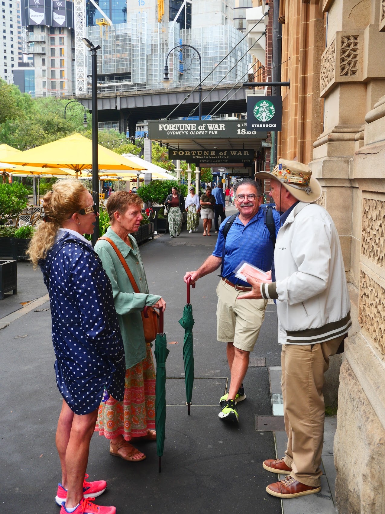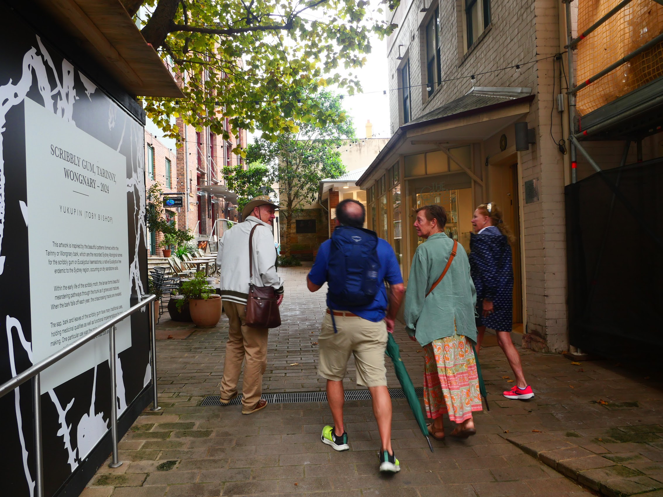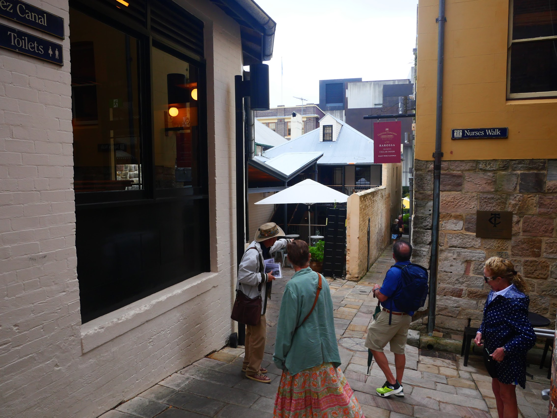 After a great breakfast, we made our way down to Circular Quay on the south side of the Harbor to meet our guide for the first activity of the day: a walking tour of The Rocks, Sydney’s oldest and most historic neighborhood, which rose from the east side of the harbor up to the south landing of the Harbor Bridge. Our tour guide, Andrew, was incredibly knowledgeable and, as he led us through the back alleys of the Rocks, he regaled us with one story after another about the history of Sydney and The Rocks neighborhood which was at one time a bit of a slum and a very dangerous place to be indeed!