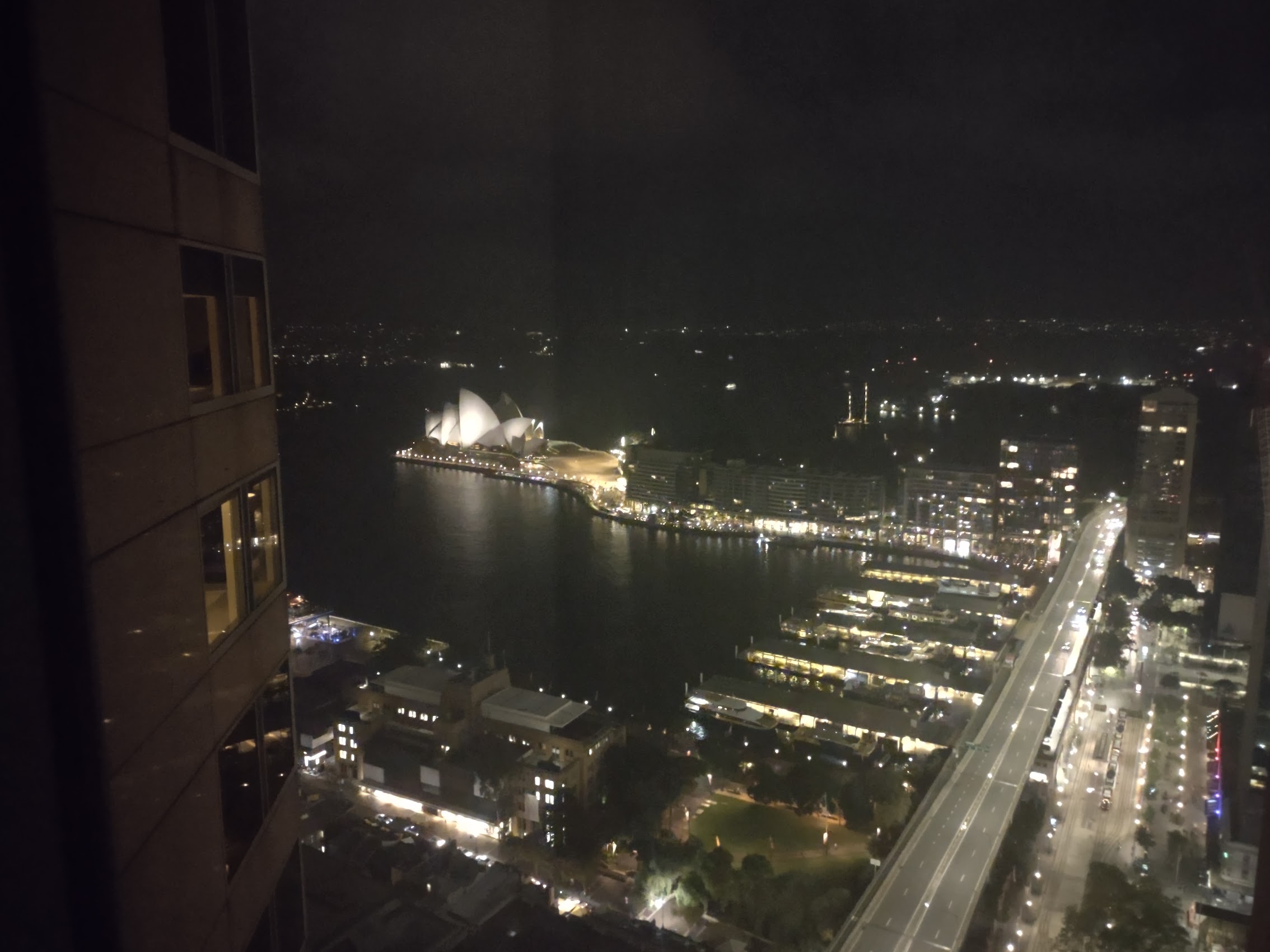 And so it was that we now found ourselves arriving at the Shangri-La Sydney, a luxurious five-star hotel located just steps away from Circular Quay and Sydney Harbor, where (yes) the hotel lobby was crawling with Swifties and their parents (as would be the case for the duration of our stay). The room Denny and Wendy had booked for us was on the 25th floor with an incredible view of Circular Quay, Sydney Harbor, and the Opera House.