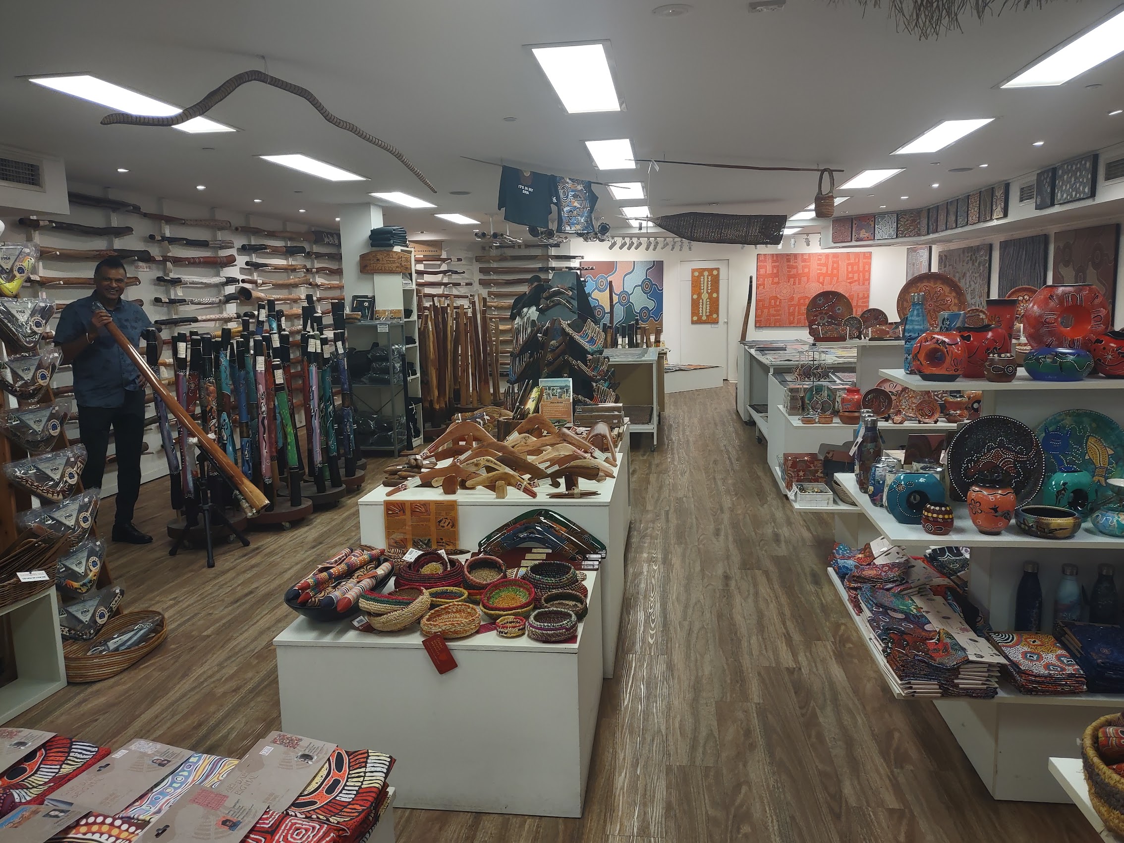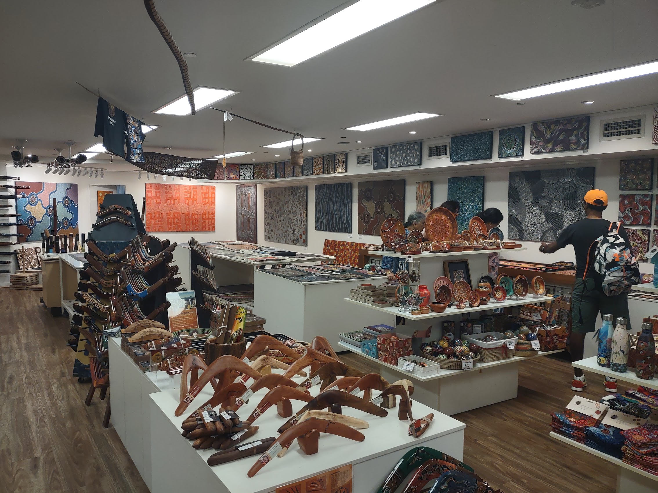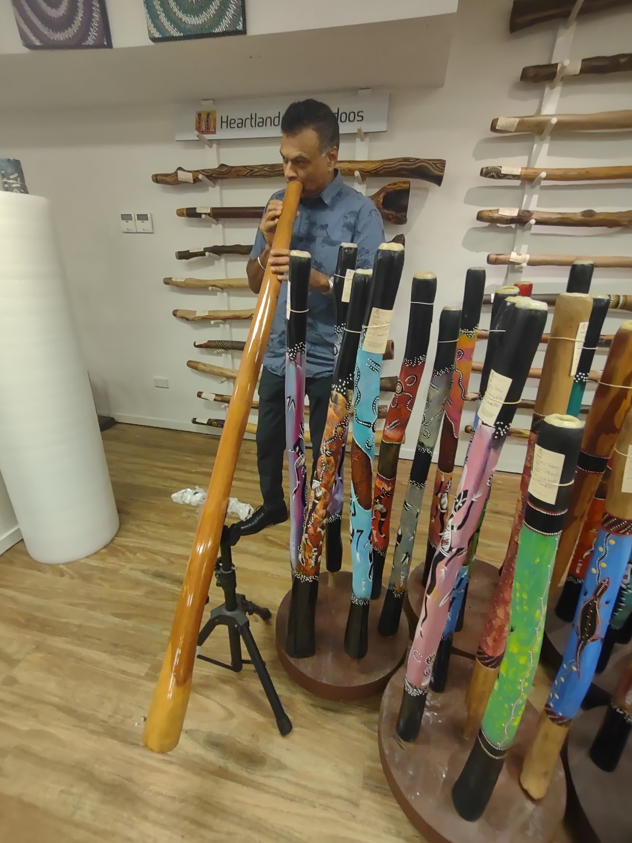 Our best find in the rocks was a place called Spirt Gallery – Aboriginal Art and Didgeridoos, where we finally found the kind of Aboriginal Art and handicrafts for which we had been searching since arriving in Australia. The Spirit Gallery is a Co-op of sorts which features work by many First Nations artists executed with traditional materials and techniques. After looking at almost everything in the store, I purchased three beautiful Dreamtime paintings (which came complete with information on their artists and descriptions of what they depicted) and Denny bought a (yes!) didgeridoo!