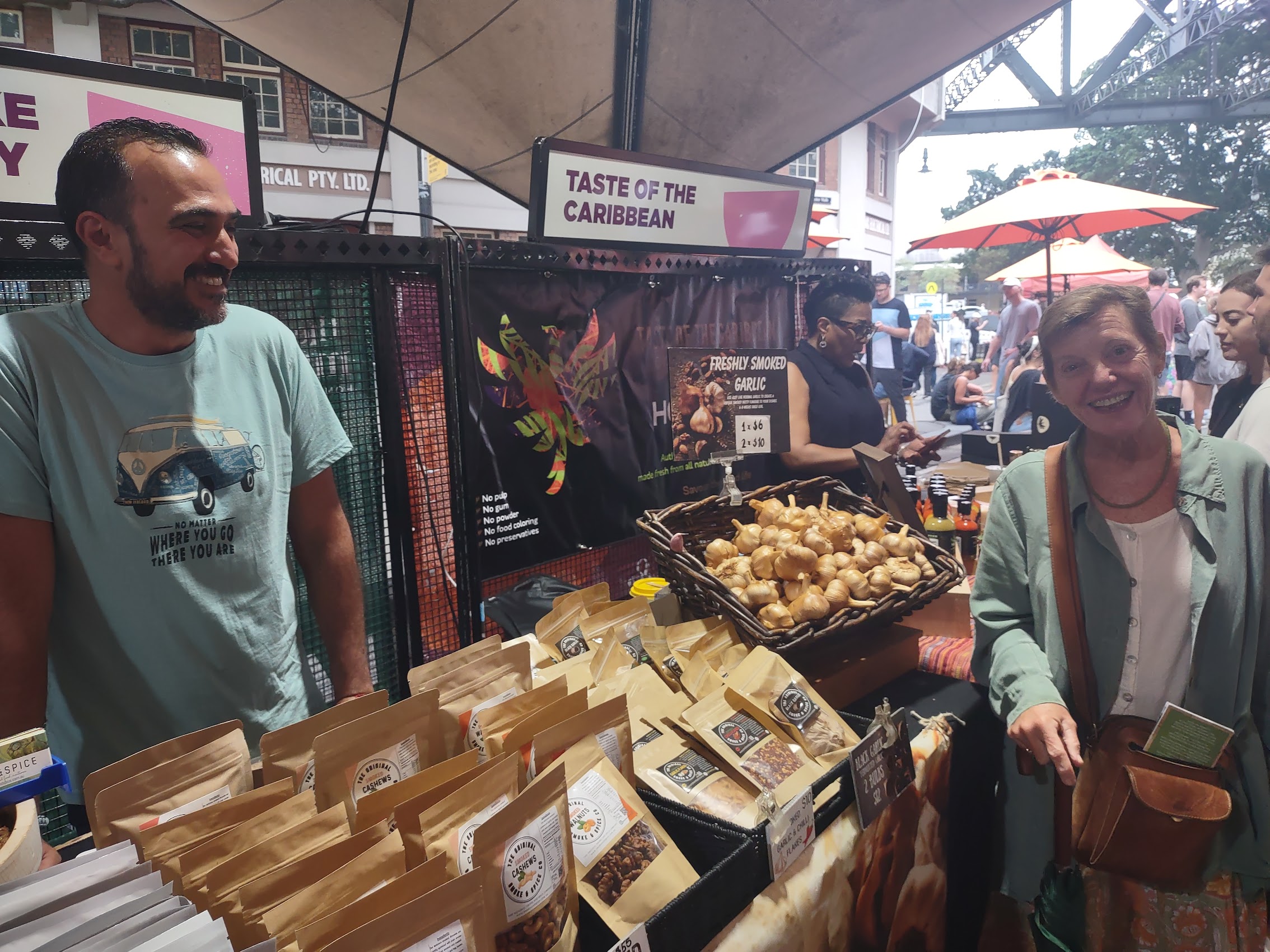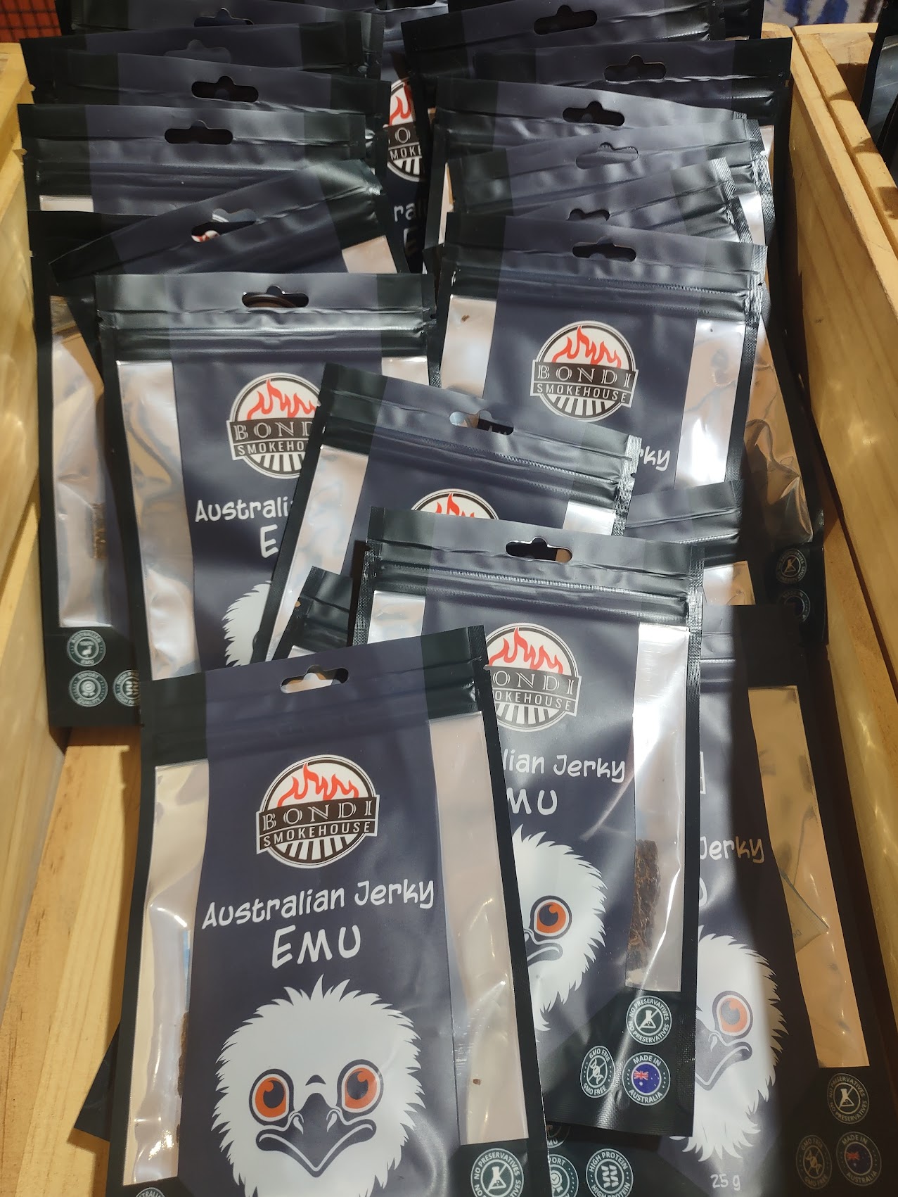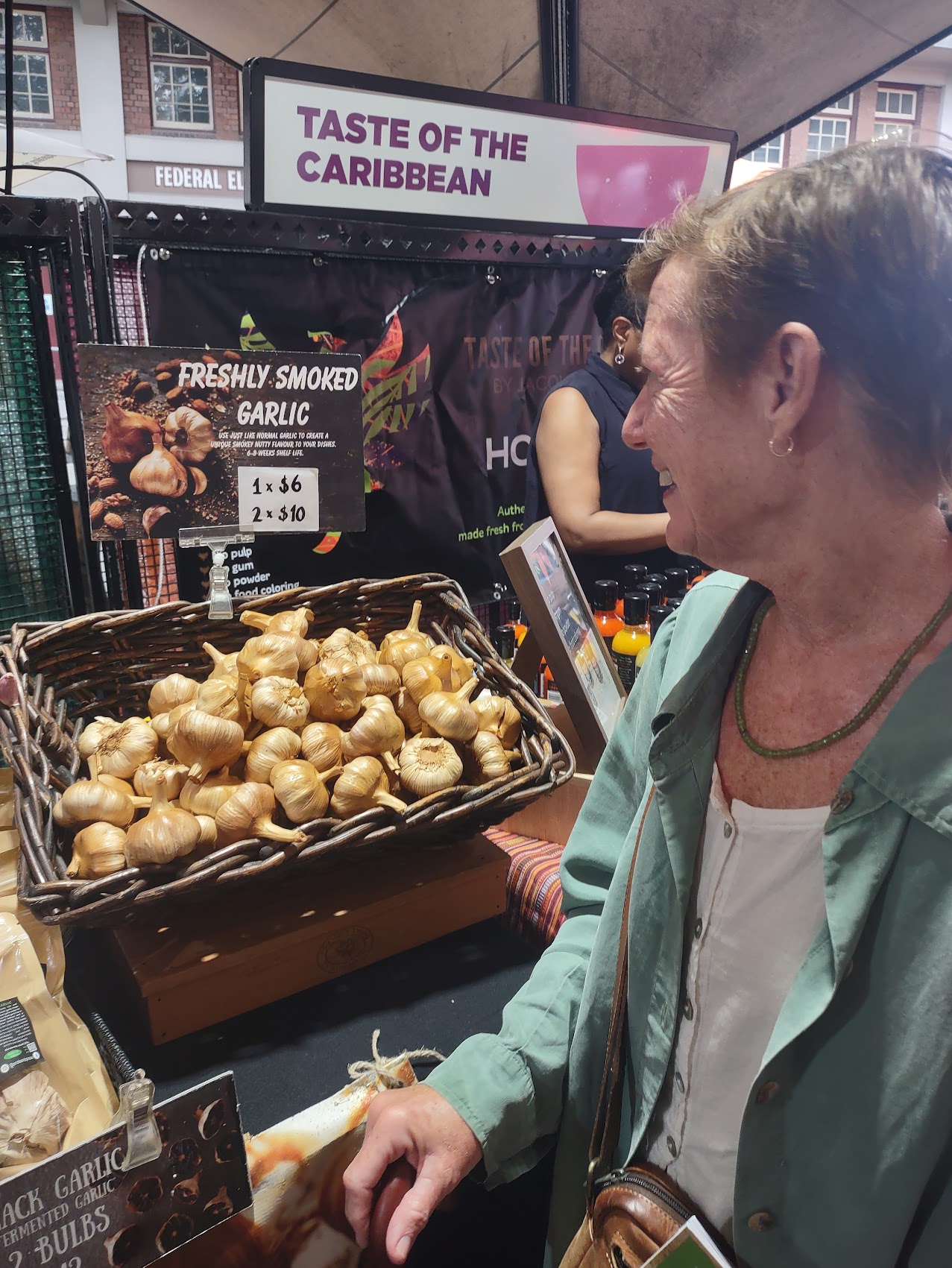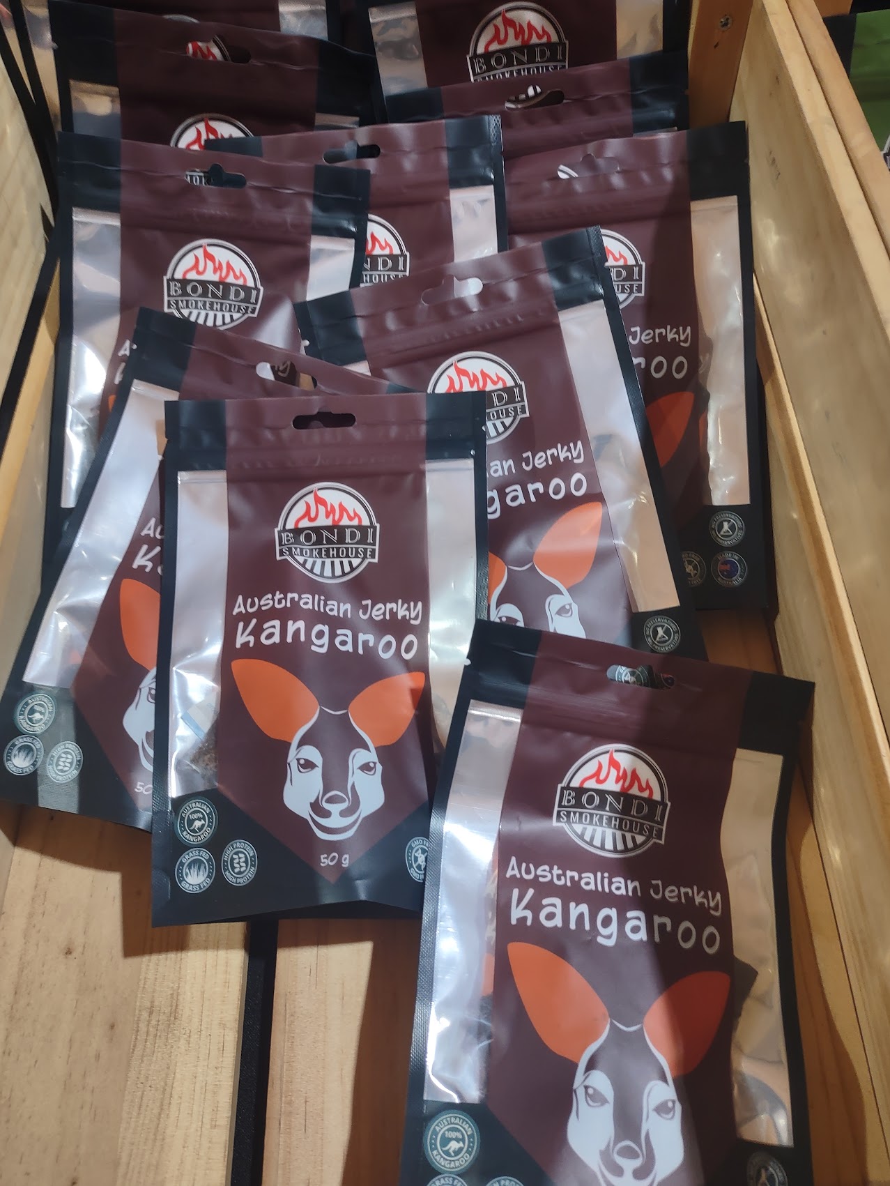 Back in the Rocks we stopped for a lovely lunch at Caminetto Italian Restaurant to fortify ourselves (the food was gone before I had a chance to photograph it!) before proceeding with some serious shopping. There are an amazing number of shops and markets in The Rocks selling a wide variety of interesting items. At an open-air market we checked at some unusual varieties of jerkey and Colleen purchased some “smoked” garlic (which we had never seen before – pretty good!).