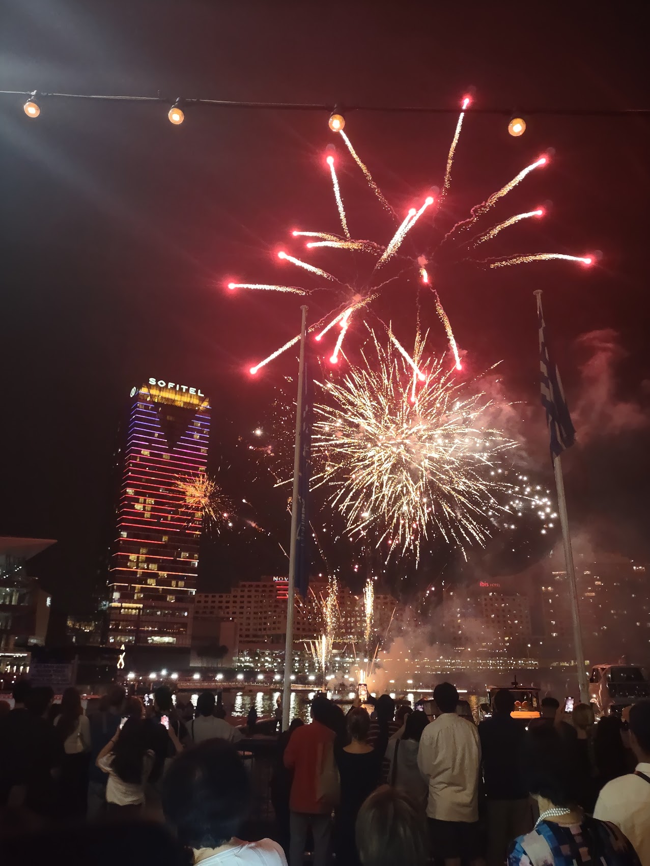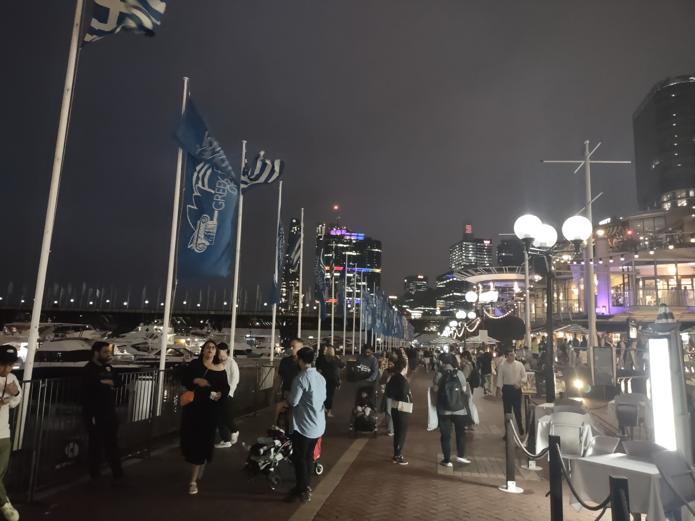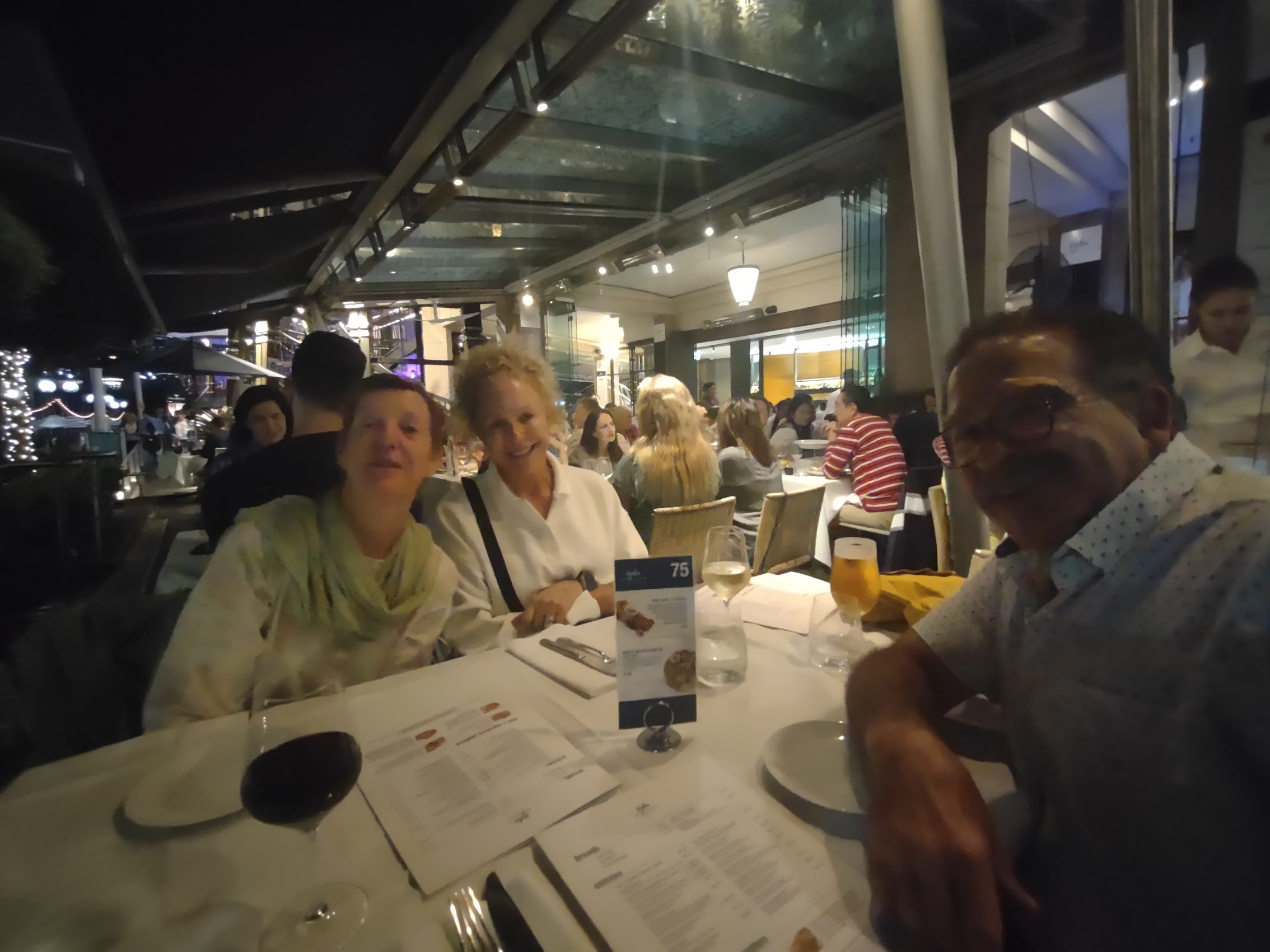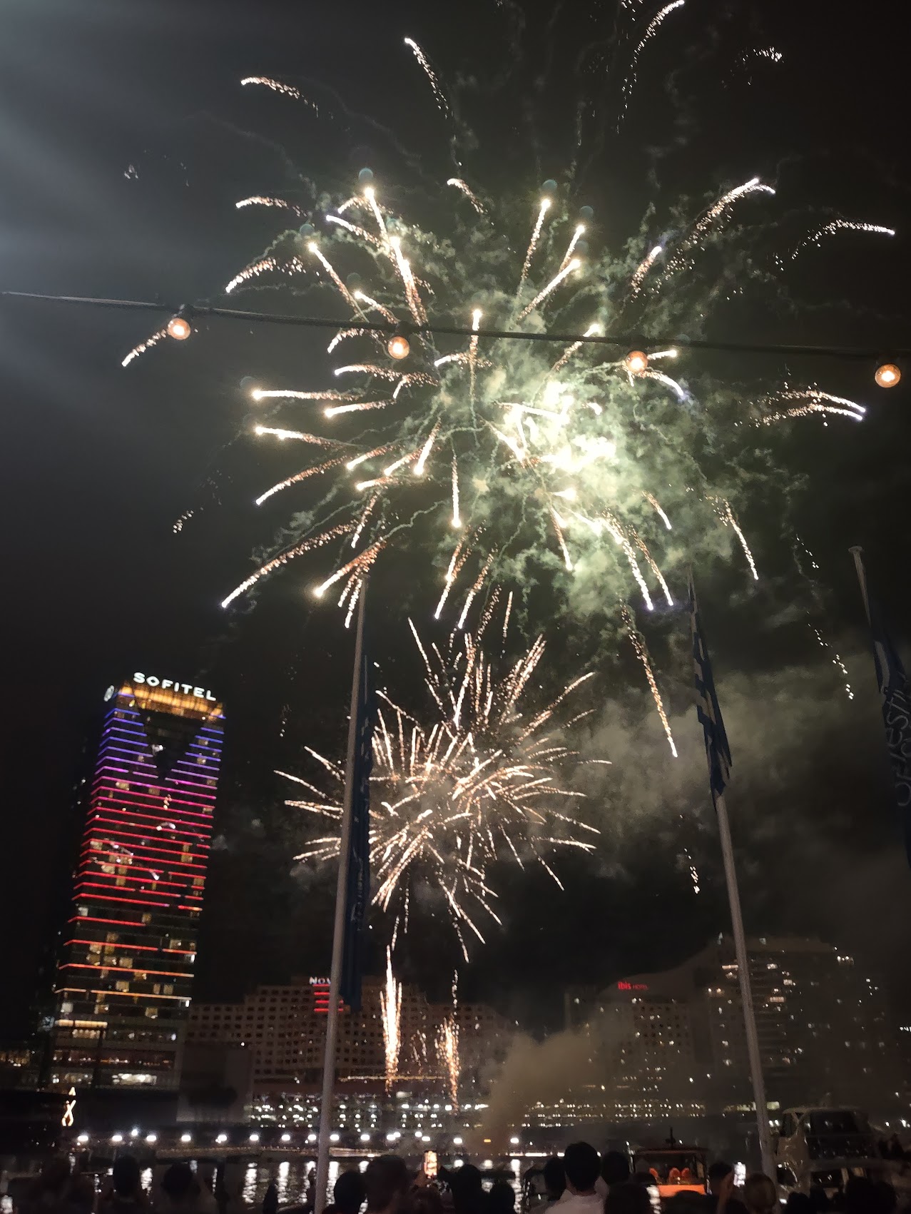 After a few cocktails and a bit of rest, we finished the day with a walk across the peninsula to an area known as Darling Harbor where we were told there were nightly fireworks. Darling Harbor was very crowded (definitely the most crowded place we had been in quite some time). We had made a reservation at a place called Nick’s Seafood which was supposed to have incredible seafood and which seemed likely to be in a good location to view the fireworks. It was fortunate that we had decided to make reservations (thanks Wendy!) because as we waited for our table we saw more people turned away than being seated.