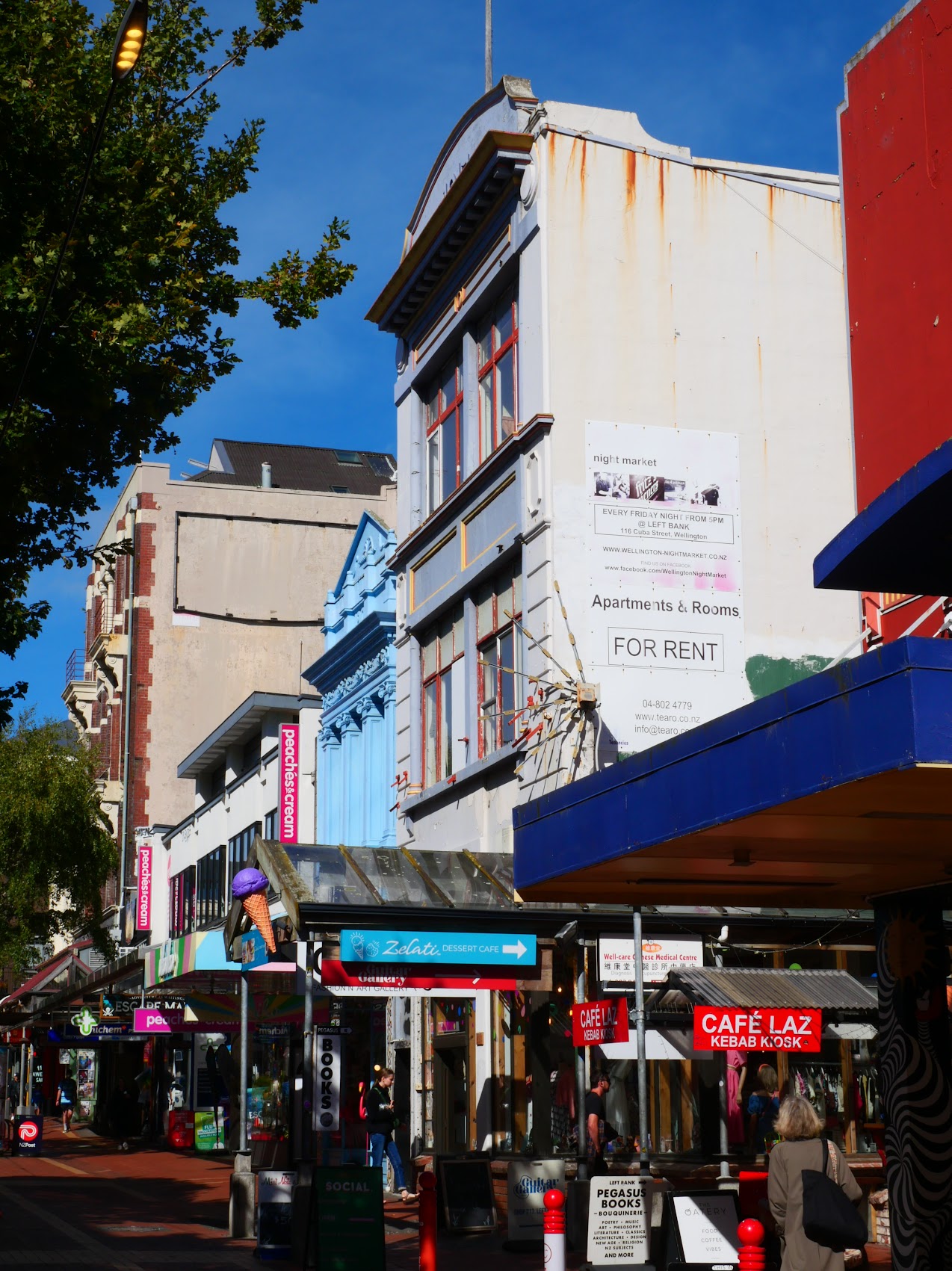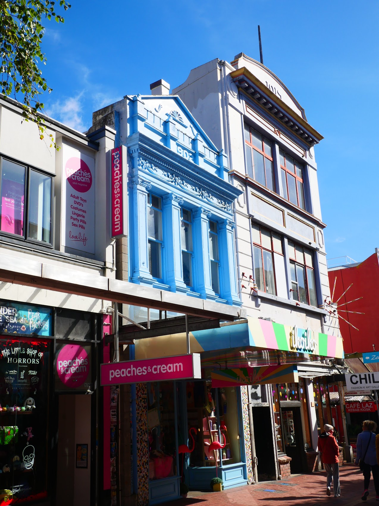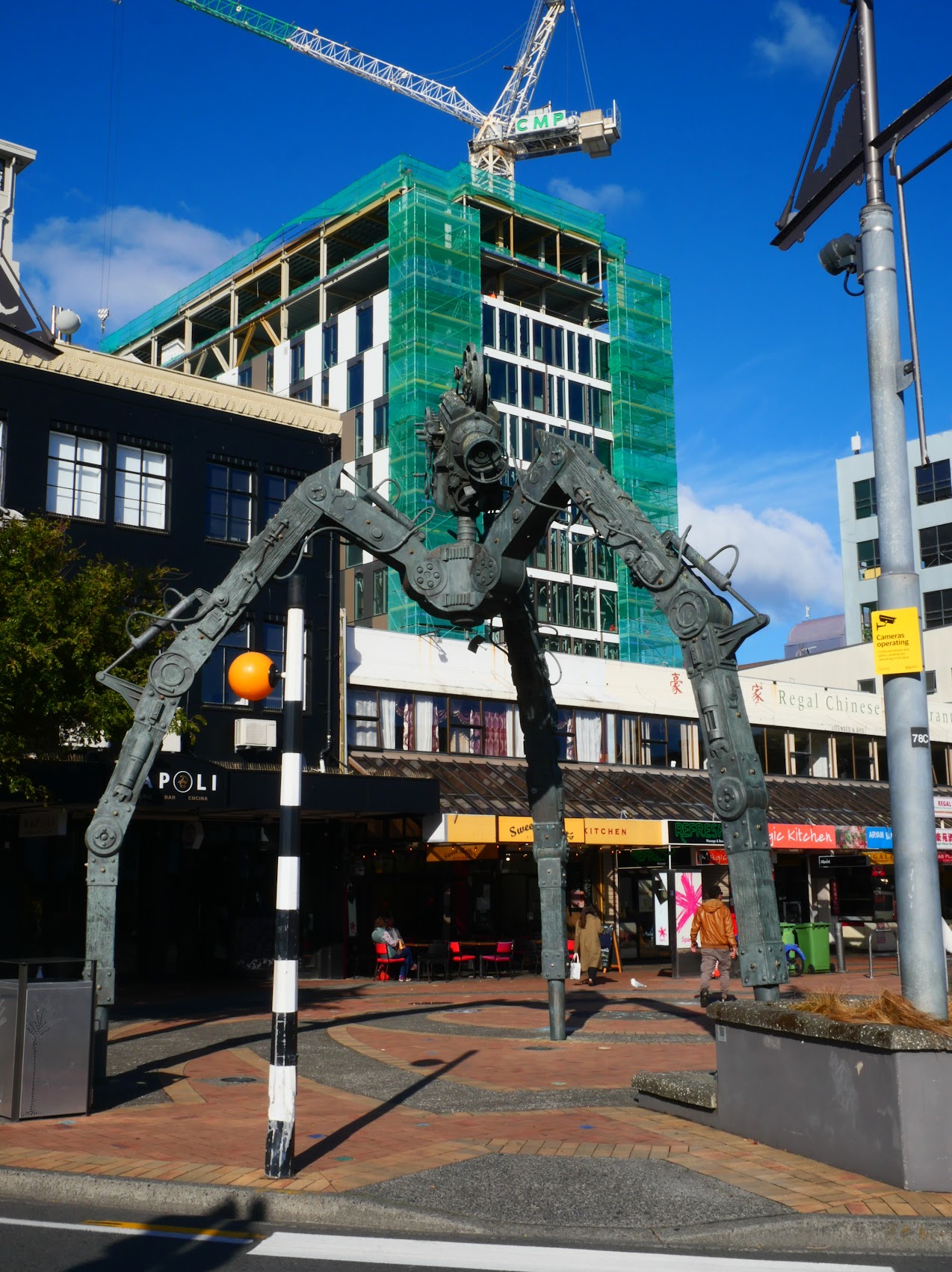 From there we proceeded to Cuba Street, Wellington’s de facto Arts district, known for its bohemian nature, scores of cafés, restaurants, music venues, record shops, book stores, heritage architecture of various styles, and a general “quirkiness” that has made it one of the city’s most popular tourist destinations. At this hour and day (10:30 AM on a Wednesday), there were not many other people about, but most of the shops were open and we took our time, taking it all in, as we gradually made our way down to the Wellington waterfront.