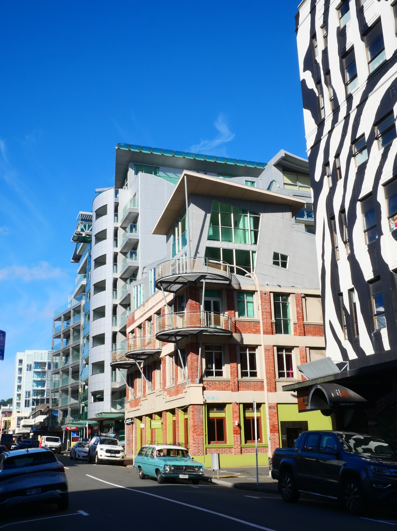 Beyond our Mount Victoria neighborhood, we found an interesting mix of older nineteenth-century and twentieth century art deco buildings along with some nice newer ones. The scale of this area was low – mostly two- and three-story buildings and very much had the feel of some of the cool little towns we had visited on the South Islands with wide sidewalks, interesting paving, street furniture, and sculptures.