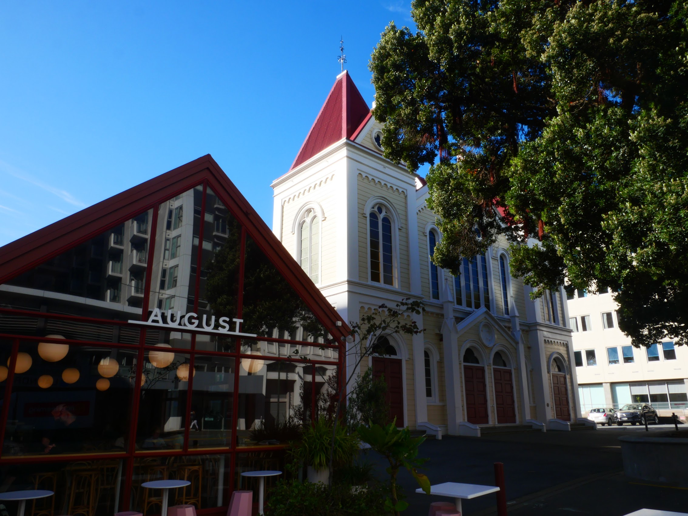 Looking for a place to have some breakfast, we turned south away from the waterfront. After a bit of wandering, we stopped at the August Eatery located next to the beautiful historic Wesley Methodist Church. This part of the town center had more mid-rise buildings which were, again, a mix of old and new.