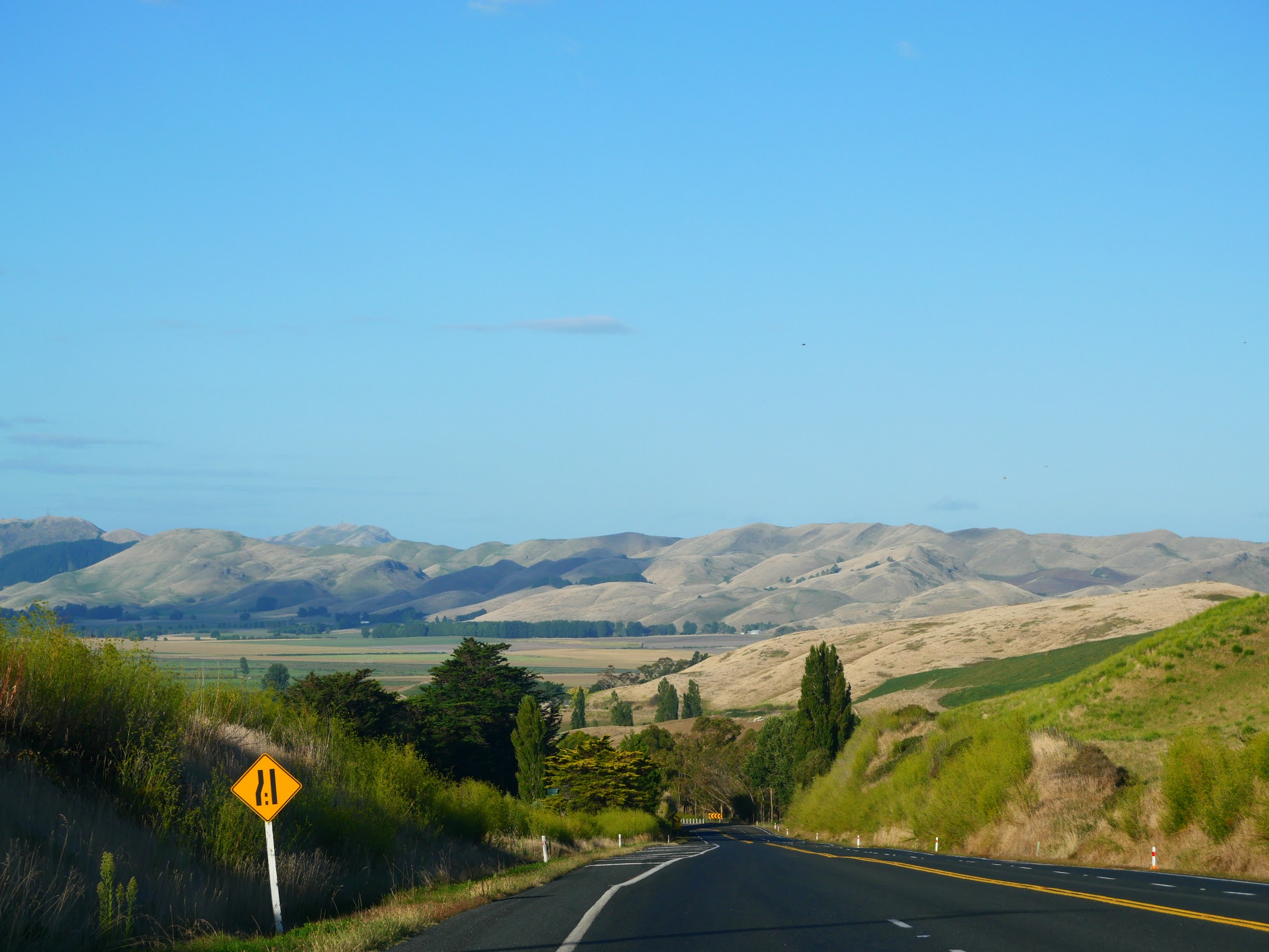 Our drive from Wellington to Napier started up the west coast of the North Island on Highway 1 (which was a real four-lane divided highway) but after about an hour we were back on the two- (sometimes three-) lane highways we had grown accustomed to. The road wound through wide valleys with farms stretching off into the distance between foothills and higher ridges (some capped with wind turbines), and, every now and then, we passed through another small town.