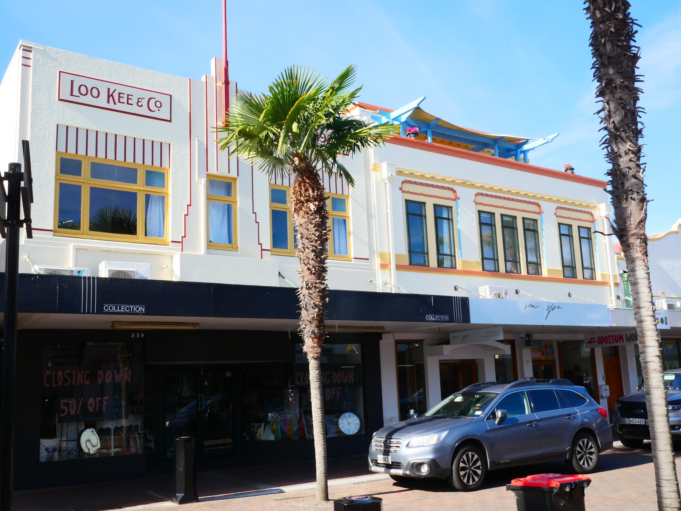 Reinforced concrete construction not only proved to be economical (this was all going on during the Great Depression) but was also well suited to the angular, streamlined look of the Art Deco style which was all the rage at that time. The façades were decorated with Art Deco’s signature geometric designs and intricate patterns — including some that mimicked Māori motifs. According to the Napier city website, “Art Deco expressed all the vigor and optimism of the roaring twenties, and the idealism and escapism of the grim thirties.”
