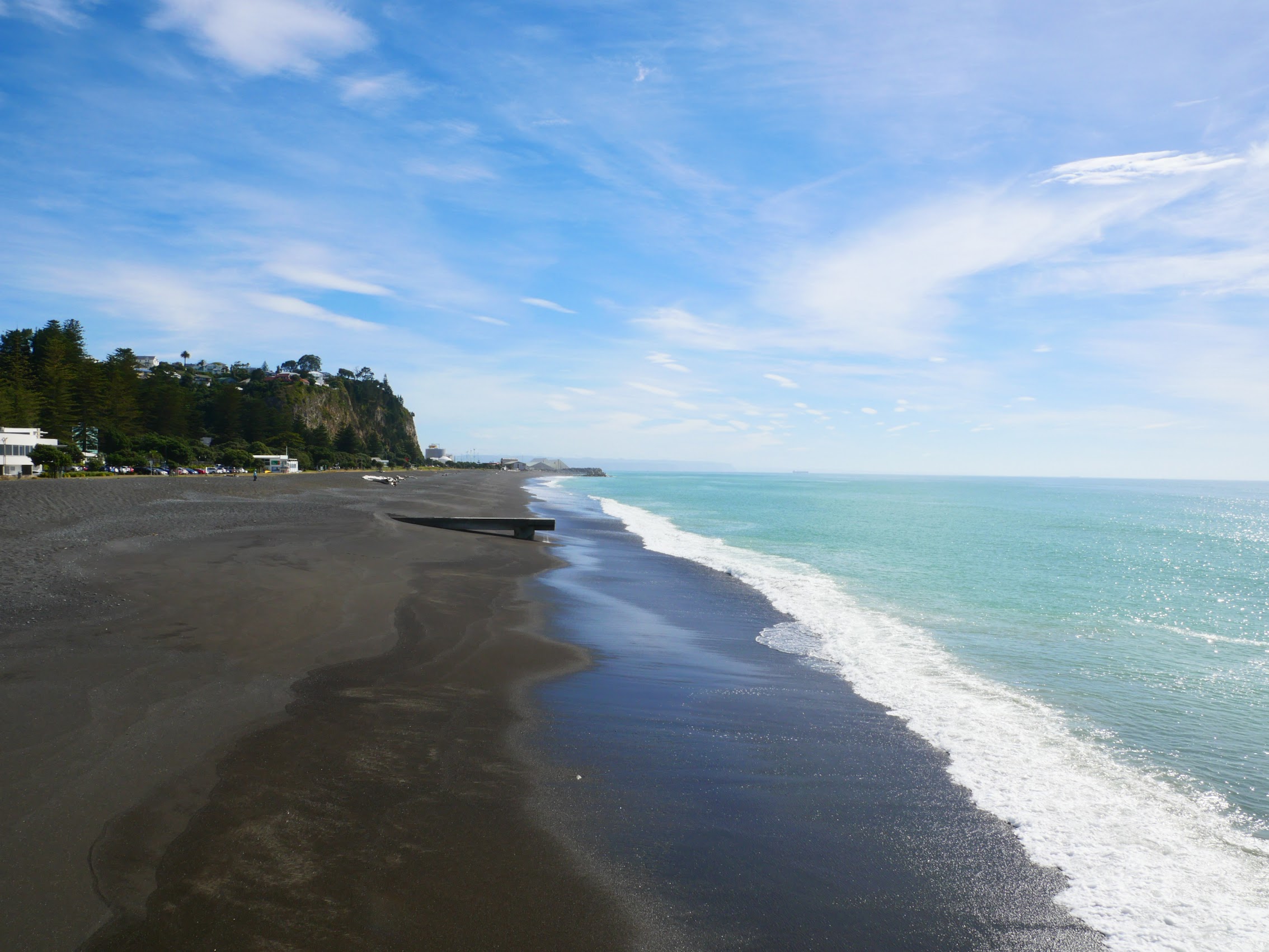 The Beachfront Villa was located directly on Hawkes Bay (only 100 feet away!) on Hardinge Beach on the north side of the Napier peninsula. It was a nice quiet neighborhood, only two blocks deep, which ran from the current port of Napier to the old port which is full of funky old industrial buildings, many of which have been transformed into condos or restaurants, and which is becoming a destination in its own right. Our neighborhood was separated from the town center by a hilly promontory called Bluff Hill but (as I confirmed the next morning) it was only about a 30-minute walk into town.