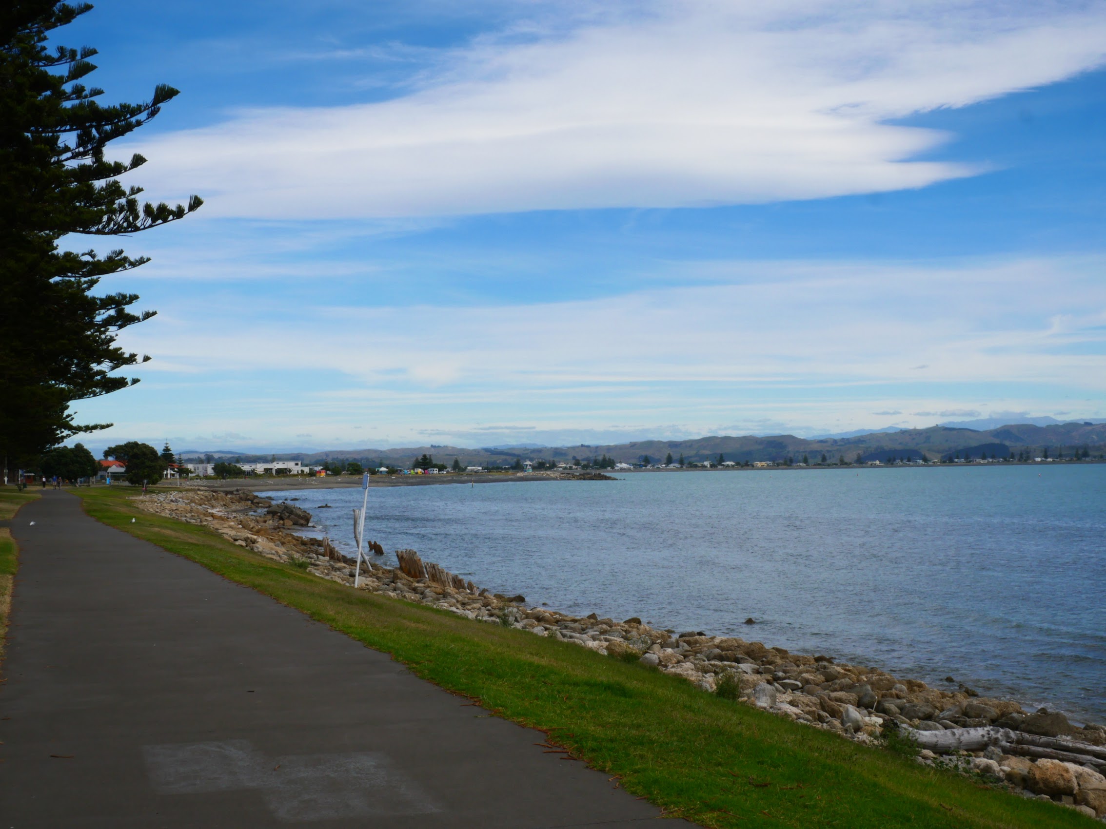After spending a couple of hours in downtown Napier, it was time for me to decide on a route home. Rather than take the shorter (but much steeper) route over Bluff Hill, I elected to take the longer (but flatter) walk around the Bluff. And so, I proceeded out of town up Marine Parade along the oceanside foreshore.
