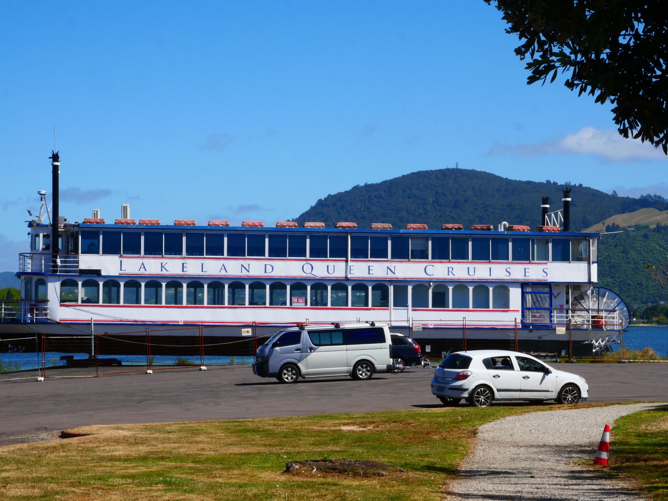 Happy with our purchases (pretty sure that there were others which I don’t recall) we walked back to the car where we rejoined Denny and Wendy. Together again, we compared purchases as we drove to the northern edge of town to get a closer look at Lake Rotorua.