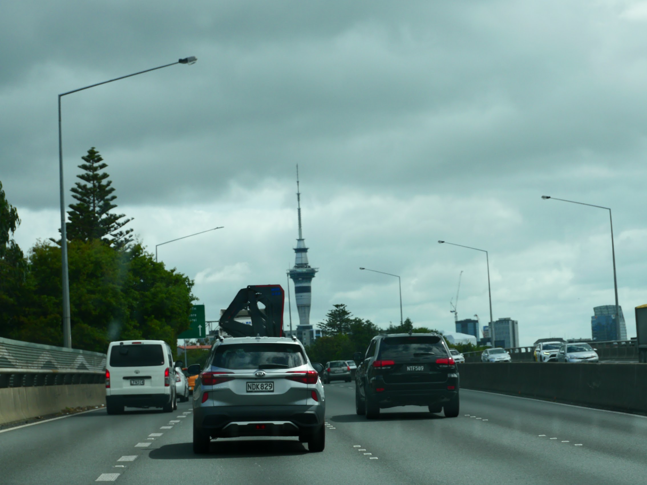 The trip there was short (only about two hours) and fairly uneventful with some last looks at the beautiful scenery as we crossed back over the Coromandel Peninsula and through the farmlands south of Auckland. As we neared the city, the roads became highways, and we were reintroduced to traffic.