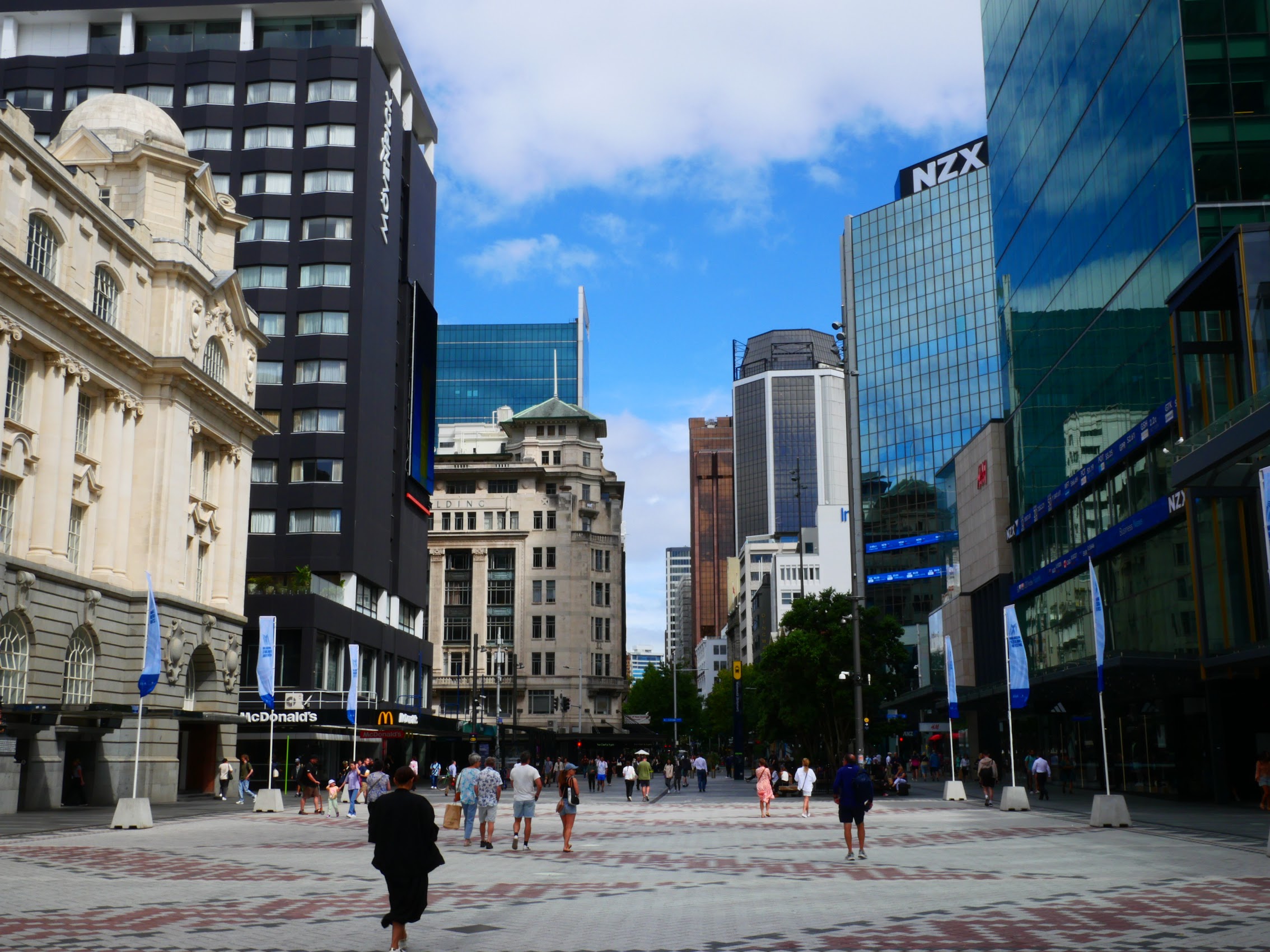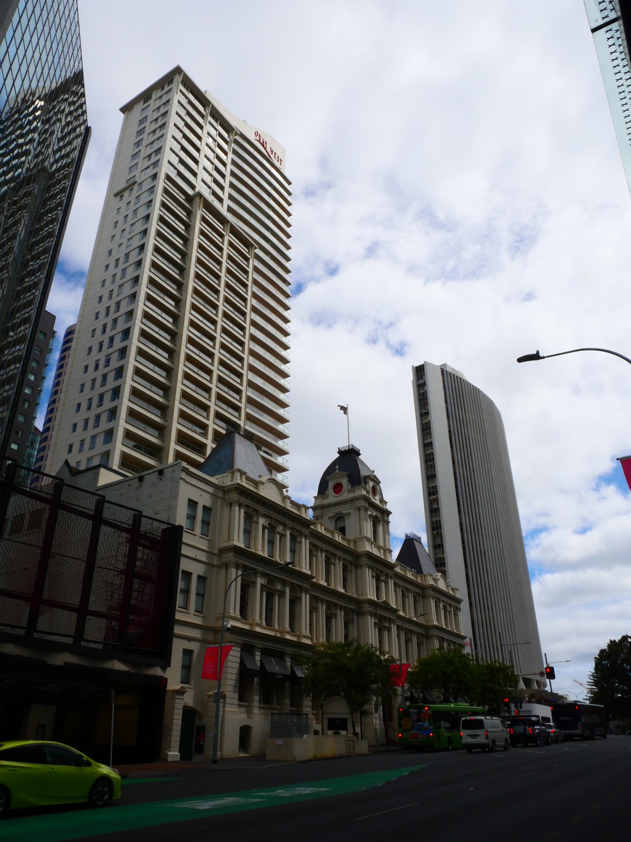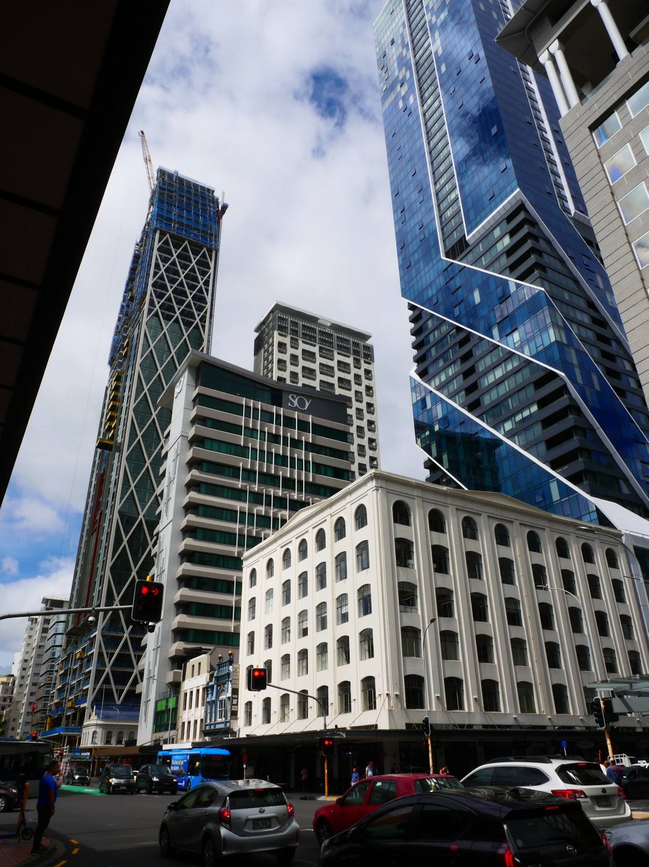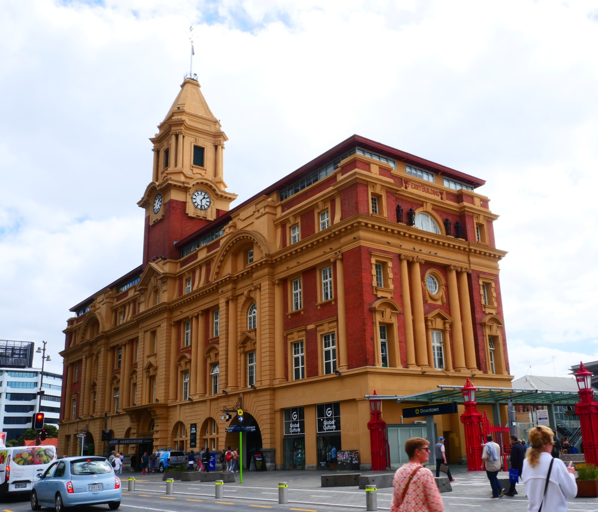 Once on the street, our first order of business was to find a local post office which Colleen had located on Google Maps as she had a backlog of postcards to mail. From our stay we headed east on Customs Street and got a good look at Auckland’s central business district as we passed Queen Street, the major commercial throughfare in the city. Interestingly, along the way we passed Aukland’s original post office building, the Auckland Chief Post Office, an Edwardian Neo-Baroque style building constructed in 1912 and converted to a train station in 2004, which now serves as the central transport hub in Auckland.