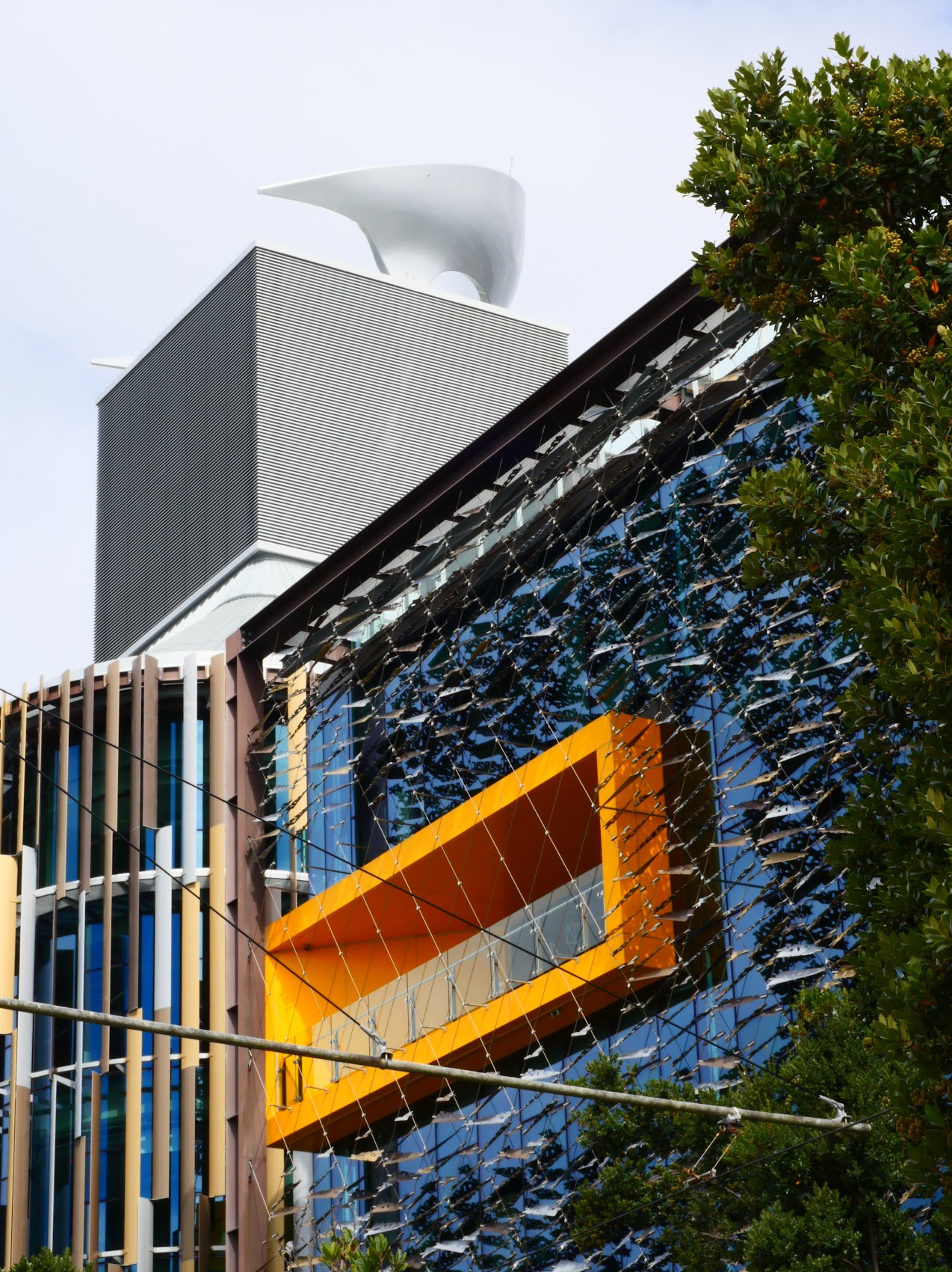 In addition to lots of boats, there were many other attractions like the New Zealand Maritime Museum (which we did not visit), along with parks, shops, and restaurants, as well as a number hotels, apartment buildings, and some very interesting harbor-side office buildings. (My particular favorite was the ASB Bank Building an award-winning sustainable design which features a large expanses of glass shaded by a system of mesh and multi-colored shading devices which look amazingly natural and organic.)