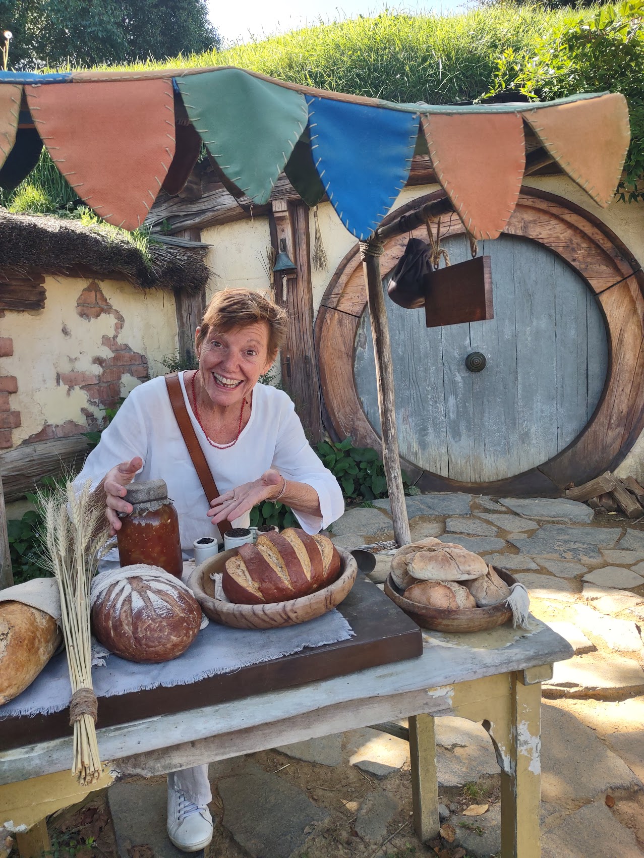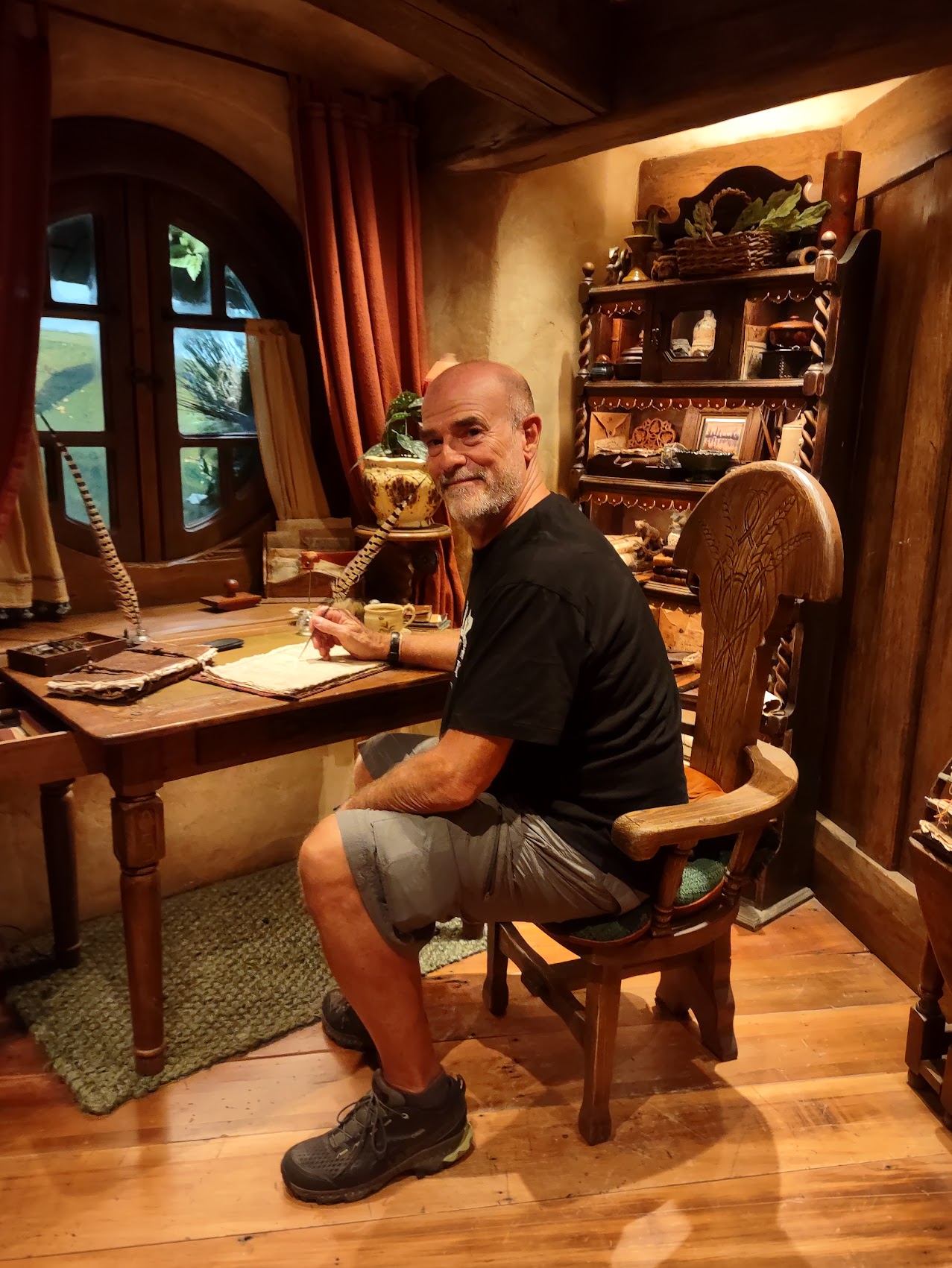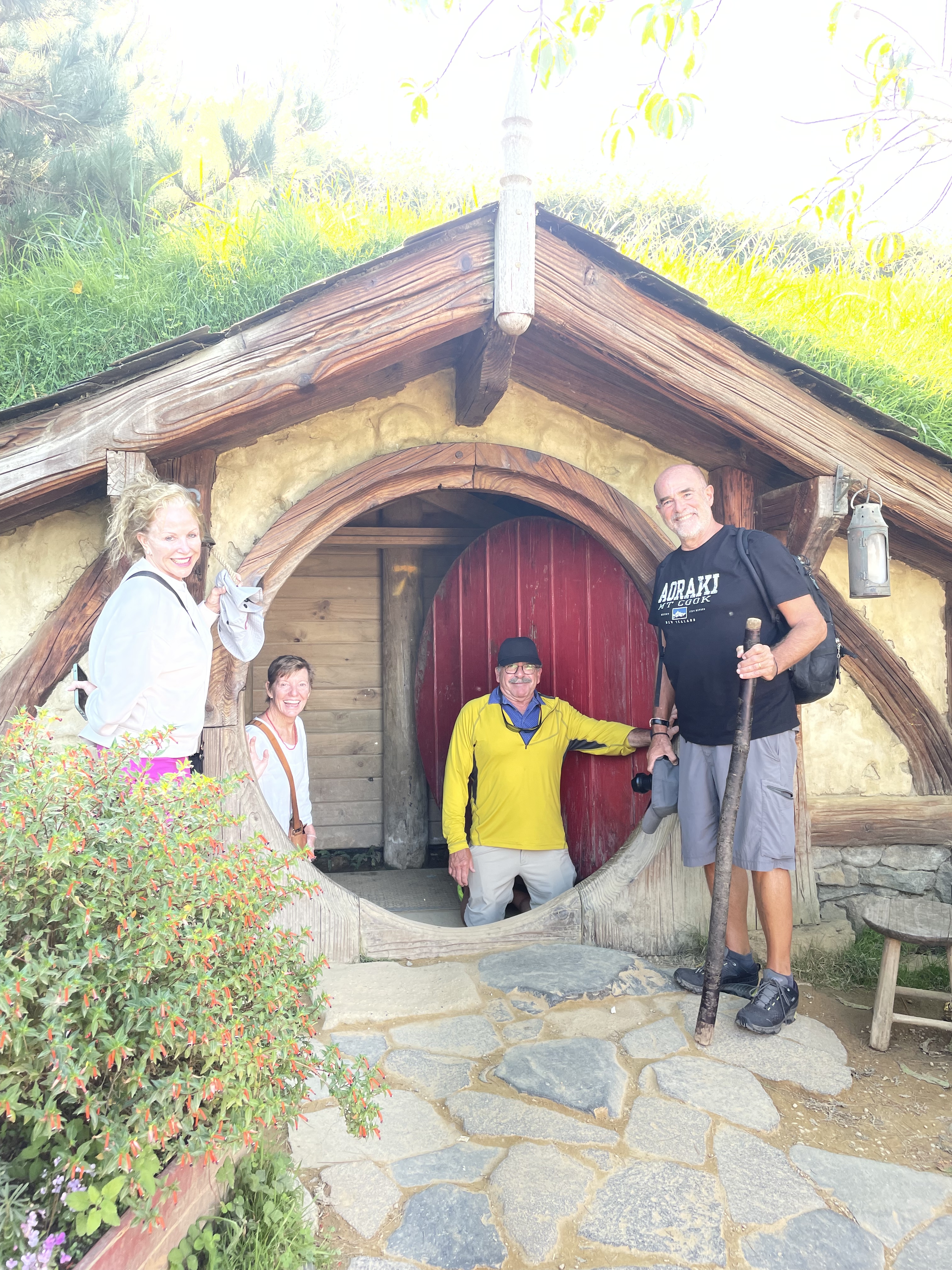 The Hobbiton Movie Set is now owned and operated by a private company owned 50/50 by Sir Peter Jackson (director of the films) and the Alexander family who still operate the sheep farm which surrounds the site. Although attendance dipped during the pandemic, the Hobbiton Move Set now welcomes over 600,000 visitors a year and is one of the most popular tourist attractions in New Zealand. (I should note that while Denny and Wendy, who had never seen any of The Lord of the Rings or Hobbit movies before this trip were on board from the beginning.)