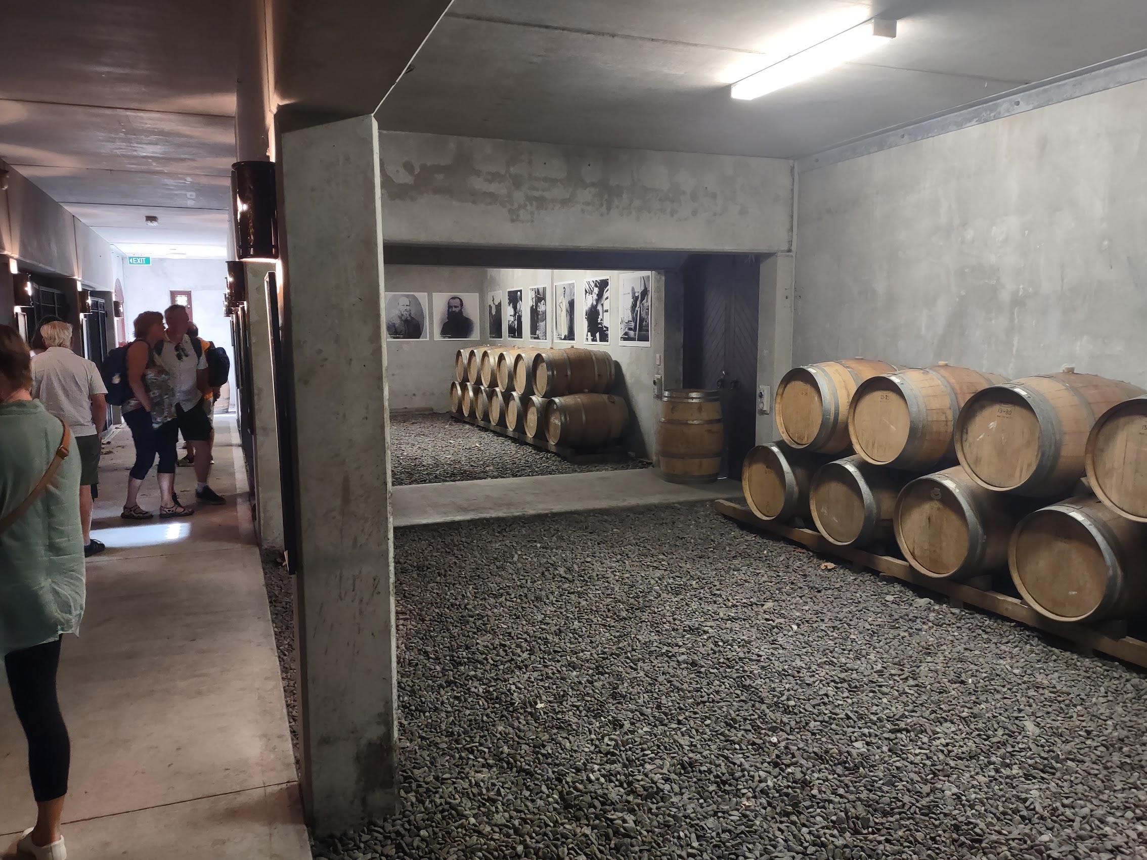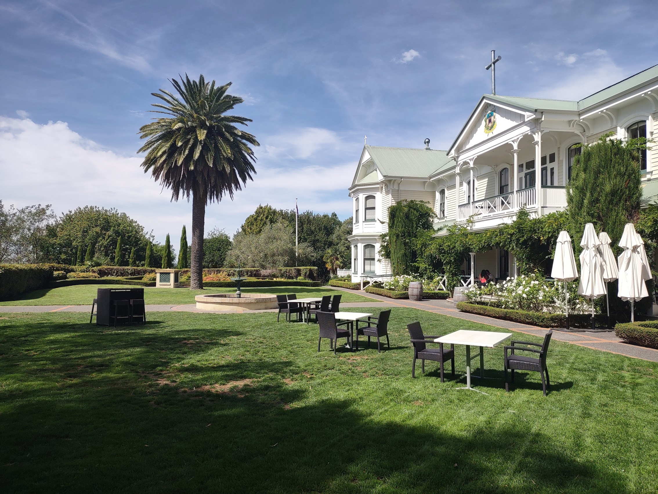 Over lunch we learned a bit more about the winery which was established in 1851 by French Catholic Marist missionaries for producing sacramental wine. The winery was originally located south of Napier but disastrous flooding in 1909 prompted the mission to move its operations north to its current Taradale location where it had acquired 800 acres of land and vineyards were already planted. As part of this relocation, the two-story La Gran Maison (then the order’s enormous seminary building) was sawn into 11 separate pieces and transported 5 kilometres to its current location using logs and traction engines, a feat that took two days.