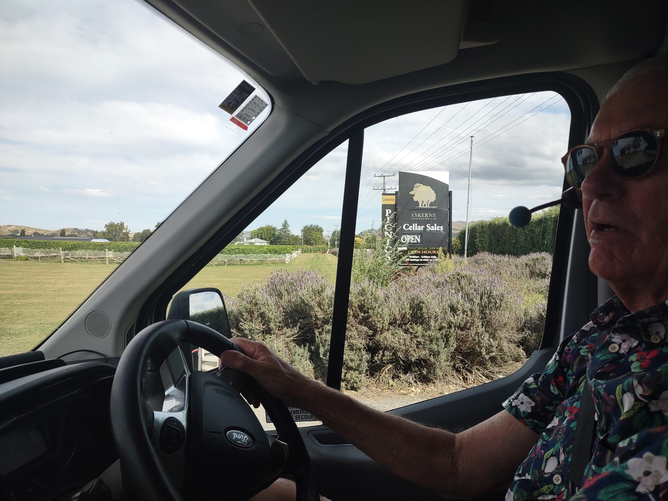 As I rounded the Bluff, I passed the new Port of Napier where there was quite a bit of activity going on, mostly loading timber which was coming in via a rail line and then being loaded onto ships. Near home I came across a billboard advising that Tom Jones (who I didn’t realize is still alive) was coming to Napier on April 6th. (Odd random fact for the day, but according to Colleen of interest to some readers.). Thirty minutes after leaving town I arrived back at our place on Hardinge Road, just in time to get ready for our afternoon wine tasting adventure.