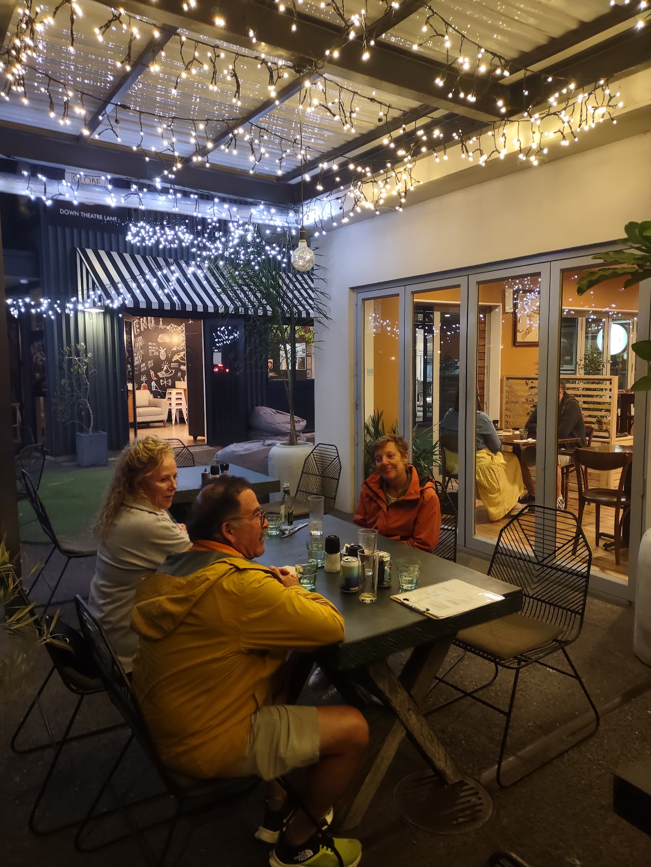 As the sun set and lights began to come on around the harbor, we moved on to a restaurant we had seen earlier on the harbor side of our building called Oyster and Chop. As the name suggests, their specialties were oysters and steaks and we enjoyed a fantastic “last supper” of both along with cocktails and more great New Zealand wine. Knowing that it was our last evening together (at least for a while), we were hesitant to call it a night, but eventually had to as we all had organizing and packing to do.